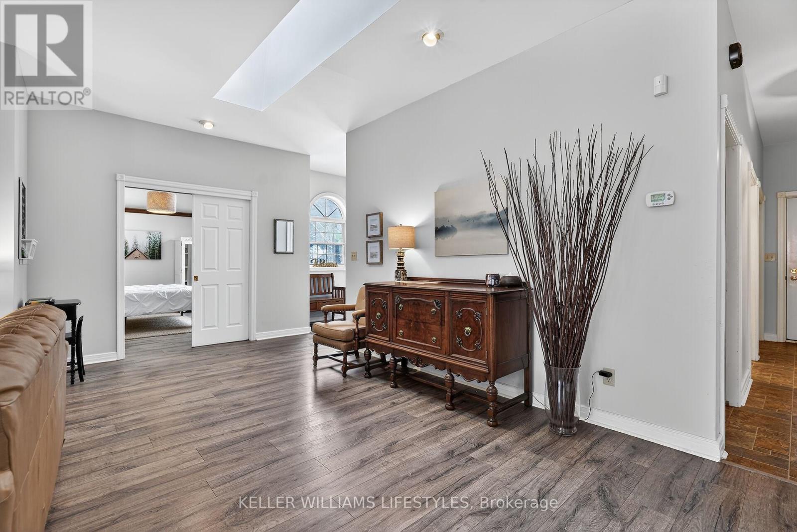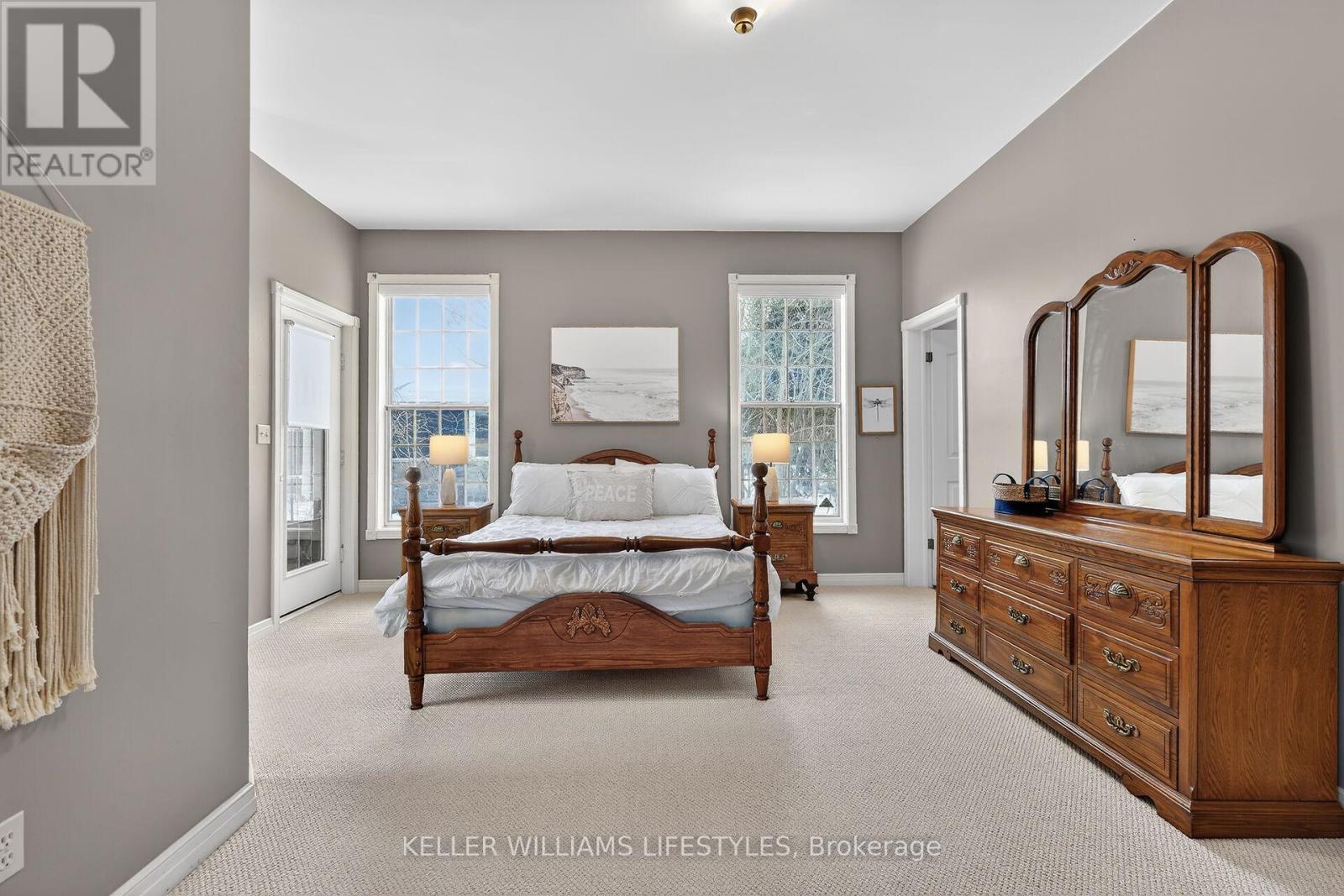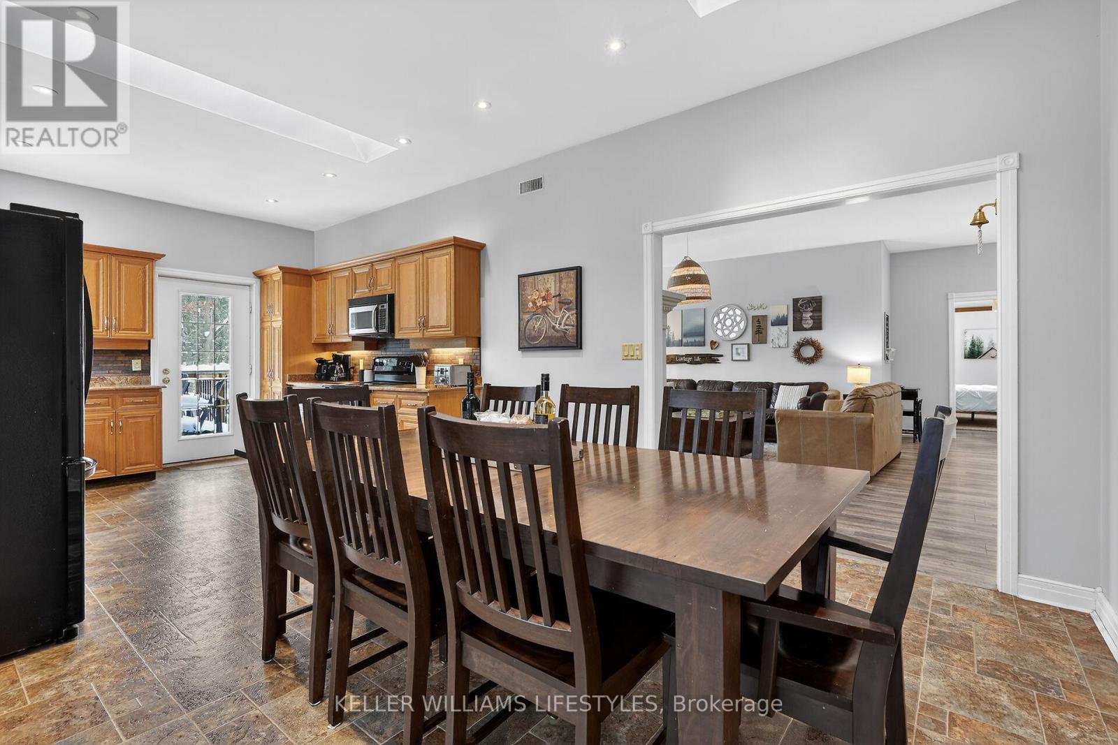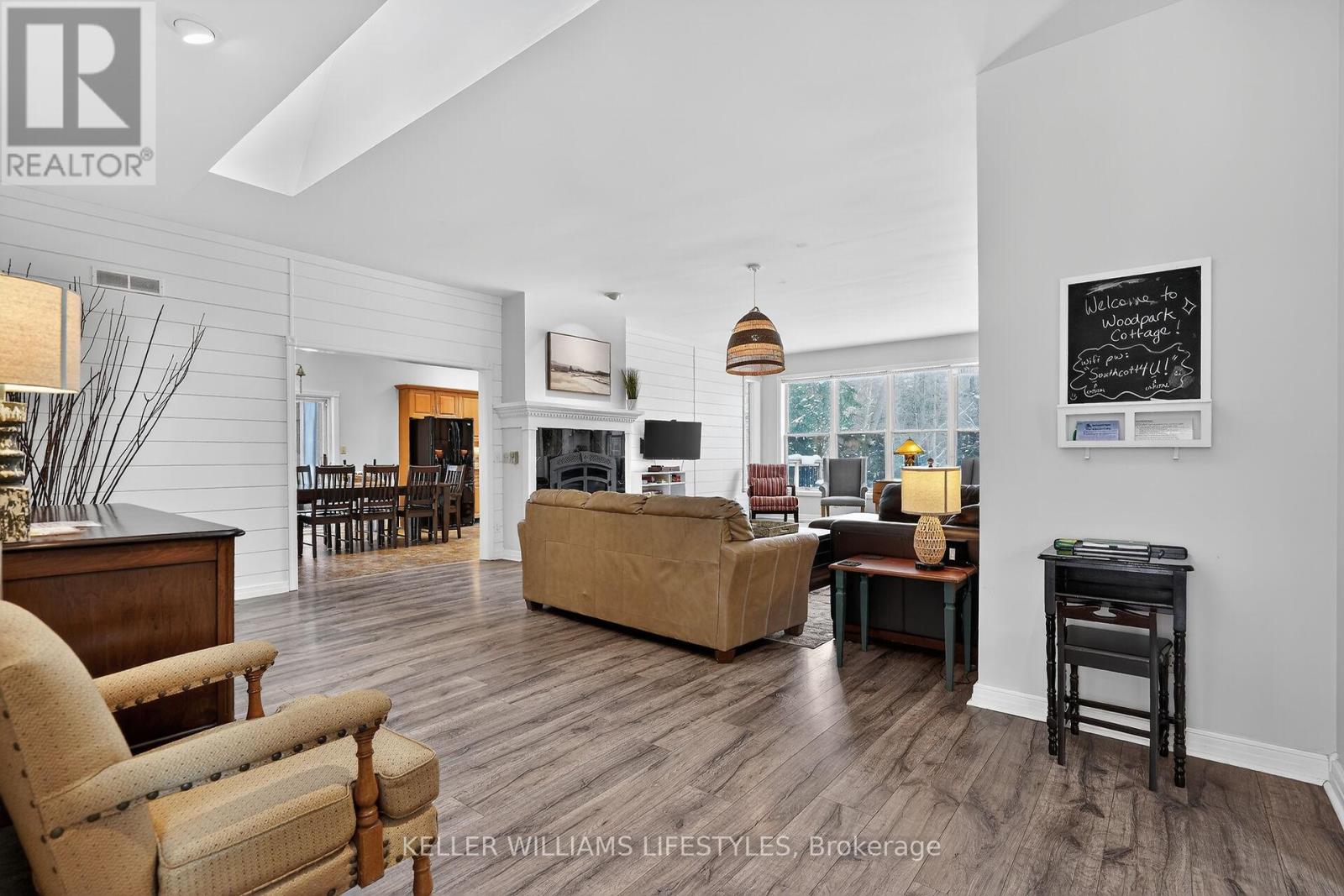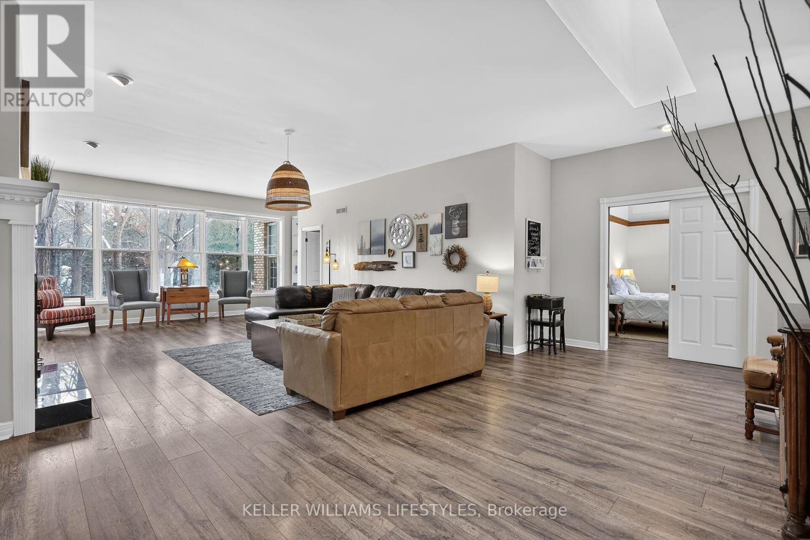 A rare opportunity to own a private riverfront retreat with 7 bedrooms, well suited as a family cottage, a multi-generational escape, or a strong income-producing property. Located on a quiet cul-de-sac in the heart of Southcott Pines, this 4,175 sq ft walk-out bungalow offers exceptional privacy while being just steps from Southcott's private beach & an easy walk to downtown along the scenic river trail. Backing directly onto the Ausable Channel & surrounded by mature trees, this exclusive setting is tranquil & naturally suited to relaxed cottage living. Built by respected builder, Doug Geoffrey, the brick home features bright, open-concept principal rooms with 9'4" ceilings & large windows showcasing a river and forest views. The living room has a cozy fireplace & flows into a generous kitchen & dining area with access to a screened-in porch & sun deck. The main level also includes a spacious Primary Suite with a private entrance, walk-in closet, sitting area, ensuite, & its own screened-in porch overlooking the river. With 2 additional bedrooms, a full bathroom, and laundry for convenience.The mostly above-grade lower level walk-out adds exceptional flexibility, offering a large family room with heated floors & a separate entrance, a full bathroom with heated floors, & 4 large bedrooms. With 7 spacious bedrooms & a prime Southcott location, rental potential is significant. This property generated approx $110,000 in gross rental income in 2025 while only renting it out 38% of the year. Repeat renters are already booked for 2026, providing immediate established revenue, with bookings cancellable if the buyer requires personal use.The oversized, treed lot is larger than most in the subdivision & sits about 700 metres from the lake, combining beach access, riverfront living, & walkable downtown amenities. Offered fully furnished with appliances, kitchenware, website, and client database, this is a turnkey opportunity in one of Southcott's most desirable settings. (id:64974)