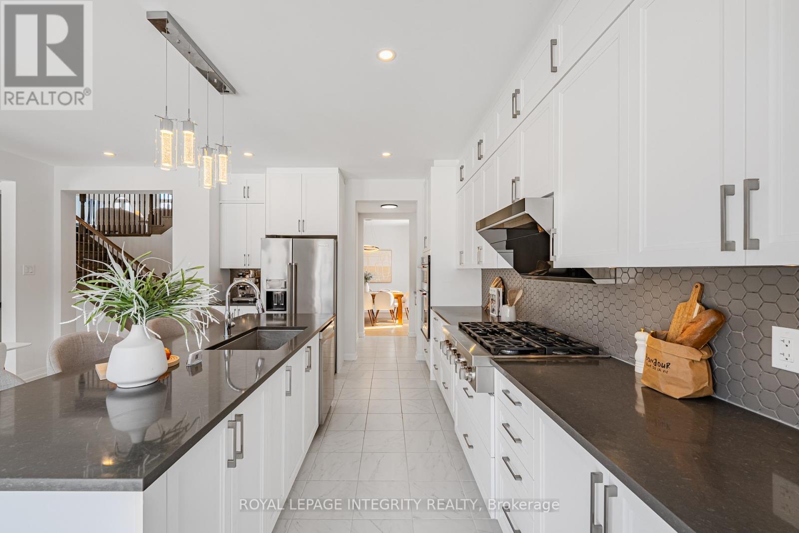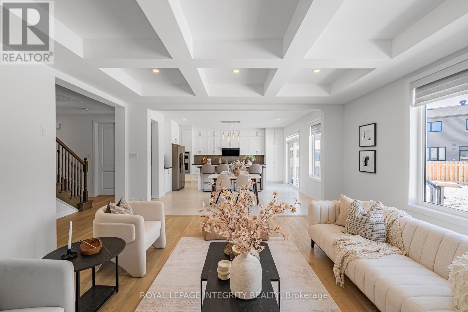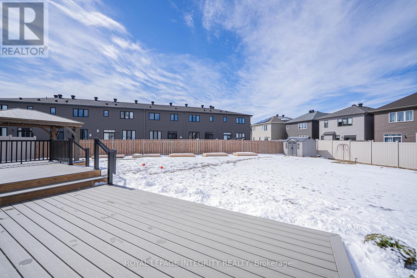 Welcome to this beautifully upgraded home in the highly sought-after Kanata Lakes Arcadia community, offering over 4,000 sq.ft. of living space with a functional and well-designed layout. Featuring 5 bedrooms and 5 bathrooms, this home is ideal for growing families.The main floor features a dedicated den with French doors, a formal dining room connected to the kitchen, and a bright open-concept living area overlooking the backyard. The kitchen is thoughtfully upgraded with high-end appliances and modern finishes, ideal for both everyday living and entertaining.Just a few steps up, the impressive sunken family room boasts a stunning 12-ft ceiling, large windows, and access to a private balcony, creating a bright and inviting space filled with natural light.Upstairs offers 4 spacious bedrooms and 3 full bathrooms, including 2 ensuites and a convenient Jack & Jill layout, along with a second-floor laundry room. The entire home features 9-ft ceilings on the second level and a carpet-free interior throughout.The fully finished basement adds an additional bedroom, bathroom, walk-in closet, and a large recreation area, perfect for extended family or guests.It also features an electric fireplace, oversized windows that bring in abundant natural light, and a separate washer and dryer set, offering excellent flexibility and the potential to function as an independent in-law or secondary living suite. Situated on a rare oversized pie-shaped lot, this home offers a fully fenced backyard with southwest exposure, providing exceptional natural light throughout the day. The outdoor space features a two-tier deck, plus a separate deck with gazebo, creating multiple areas for outdoor entertaining and relaxation.Located in a top school zone, close to parks, shopping, and Kanata Tech Park. (id:64974)