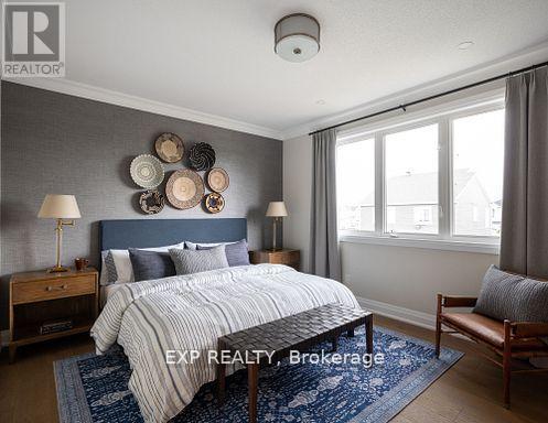 THIS HOME QUALIFIES FOR THE HST NEW HOUSING REBATE! QUICK OCCUPANCY! Welcome to the Harmony Model by Mattamy Homes, a 36' detached home offering 3,568 sq ft of finished living space in the desirable Oxford Village community of Kemptville. Thoughtfully designed with modern finishes & functional living spaces, this home features 3 bedrooms plus a versatile loft. The open-concept main level with 9' ceilings creates a bright welcoming atmosphere. A spacious foyer leads to a flexible front room ideal as a formal dining area, sitting room, or play space. A private den provides the perfect work-from-home office. The expansive great room overlooks the backyard and flows seamlessly into the modern kitchen featuring taller upper cabinetry, quartz countertops, stylish backsplash, cyclone hood fan, 4" pot lights, a large island perfect for entertaining. Hardwood flooring extends through the kitchen, den, great room, adding warmth elegance to the main living areas. A practical mudroom with walk-in closet off the garage keeps daily living organized, while an oak staircase leads to the upper level. Upstairs offers three generous bedrooms plus a loft. The primary suite is a private retreat with a large walk-in closet spa-inspired ensuite featuring double sinks, quartz countertops, a bank of drawers, a frameless glass walk-in shower. Secondary bedrooms provide ample storage, including another walk-in closet, share a full family bath with double sinks & quartz counters. A second-floor laundry room adds everyday convenience. The finished basement extends the living space with a recreation area featuring a TV-ready wall above the fireplace, 4" pot lights, a 3-pc bath rough-in, ideal for a future guest suite, gym, or entertainment space. This Energy Star home with smart thermostat combines thoughtful design with modern upgrades. Images are for illustration purposes only & showcase builder finishes. Home currently under construction. See attachments for upgrades colour selection (id:64974)