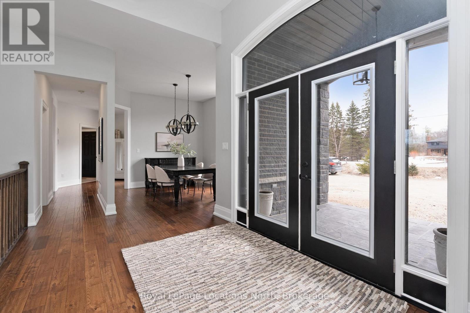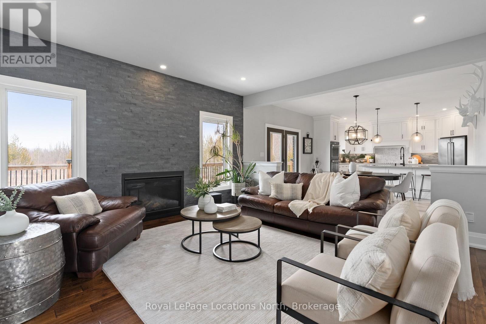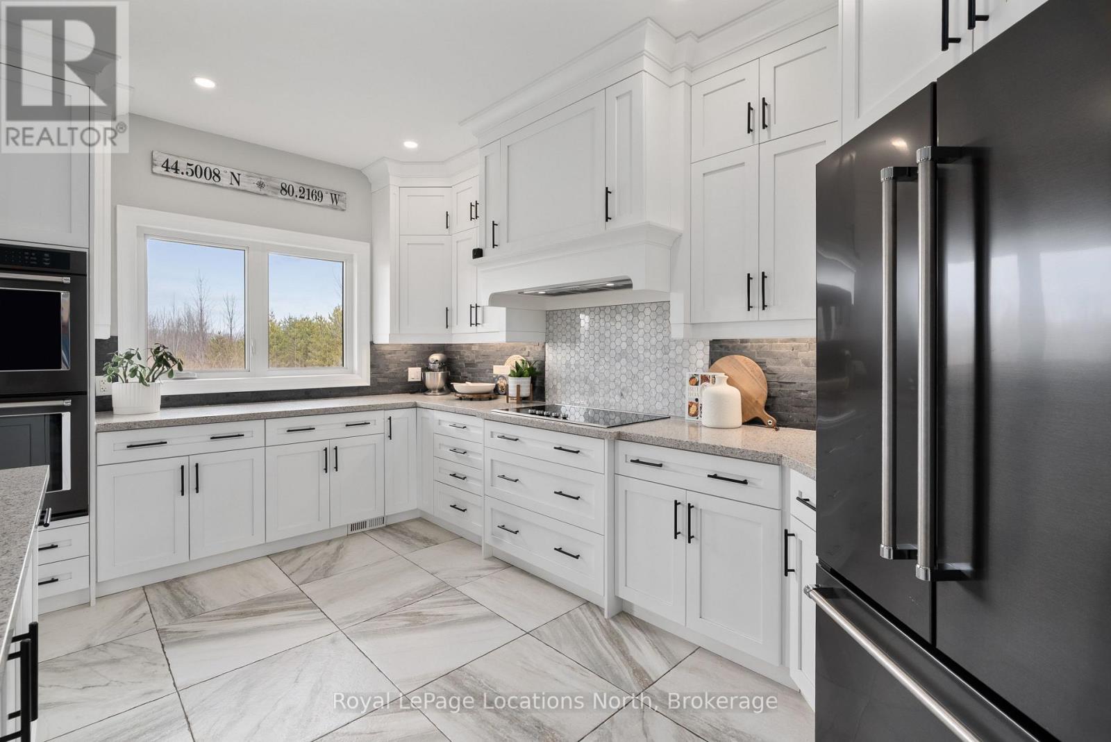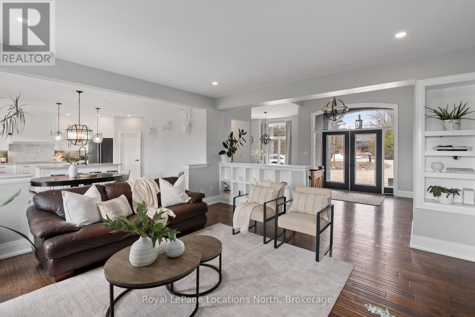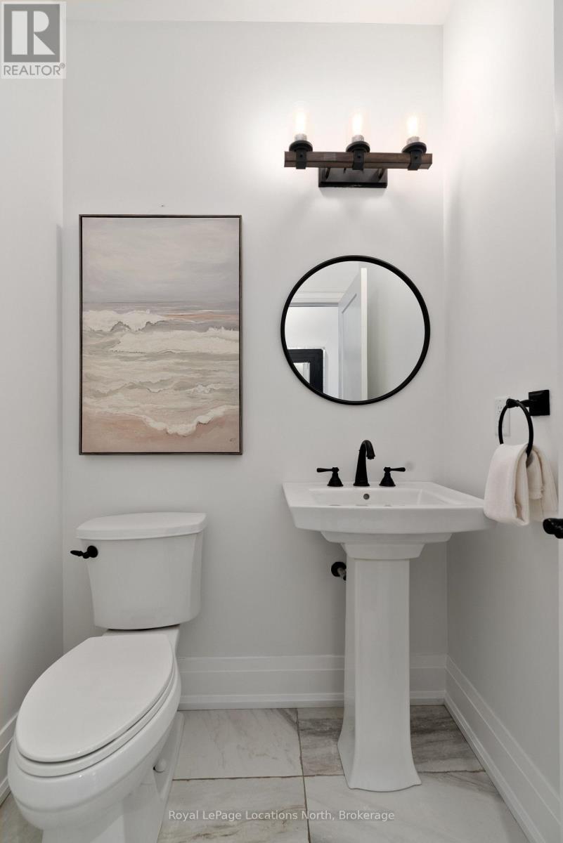 Custom-built all brick and stone bungalow set on an expansive lot in a highly desirable location, offering stunning views toward Osler Bluff and the surrounding escarpment. This thoughtfully designed home features soaring ceilings, hand-scraped oak hardwood flooring, and high-end finishes throughout. The chef-inspired kitchen showcases quartz countertops, custom cabinetry, premium appliances including double wall ovens and an induction cooktop, and a large centre island and breakfast seating-perfect for both everyday living and entertaining, as well as a built-in office nook. The open-concept layout flows seamlessly into the great room and main dining area, while the main-level laundry/mudroom provides convenient inside entry from the oversized insulated two-car garage. The spacious primary suite offers a generous layout, walk-in closet, private outdoor access, and a beautifully finished ensuite. Three additional bedrooms and well-appointed bathrooms continue the theme of quality craftsmanship, complete with designer fixtures and refined finishes. The fully finished lower level with 9-ft ceilings significantly expands the living space, featuring a large recreation room, dedicated gym, and yoga studio or potential in-law suite with a separate entrance-ideal for extended family or flexible lifestyle needs. Enjoy peaceful surroundings with abundant wildlife and long, uninterrupted views of natural greenery, all while being just minutes to Downtown Collingwood, Blue Mountain Village, skiing, golf, and year-round recreation. A rare opportunity to own a beautifully finished bungalow in an exceptional four-season setting surrounded by nature. (id:64974)
