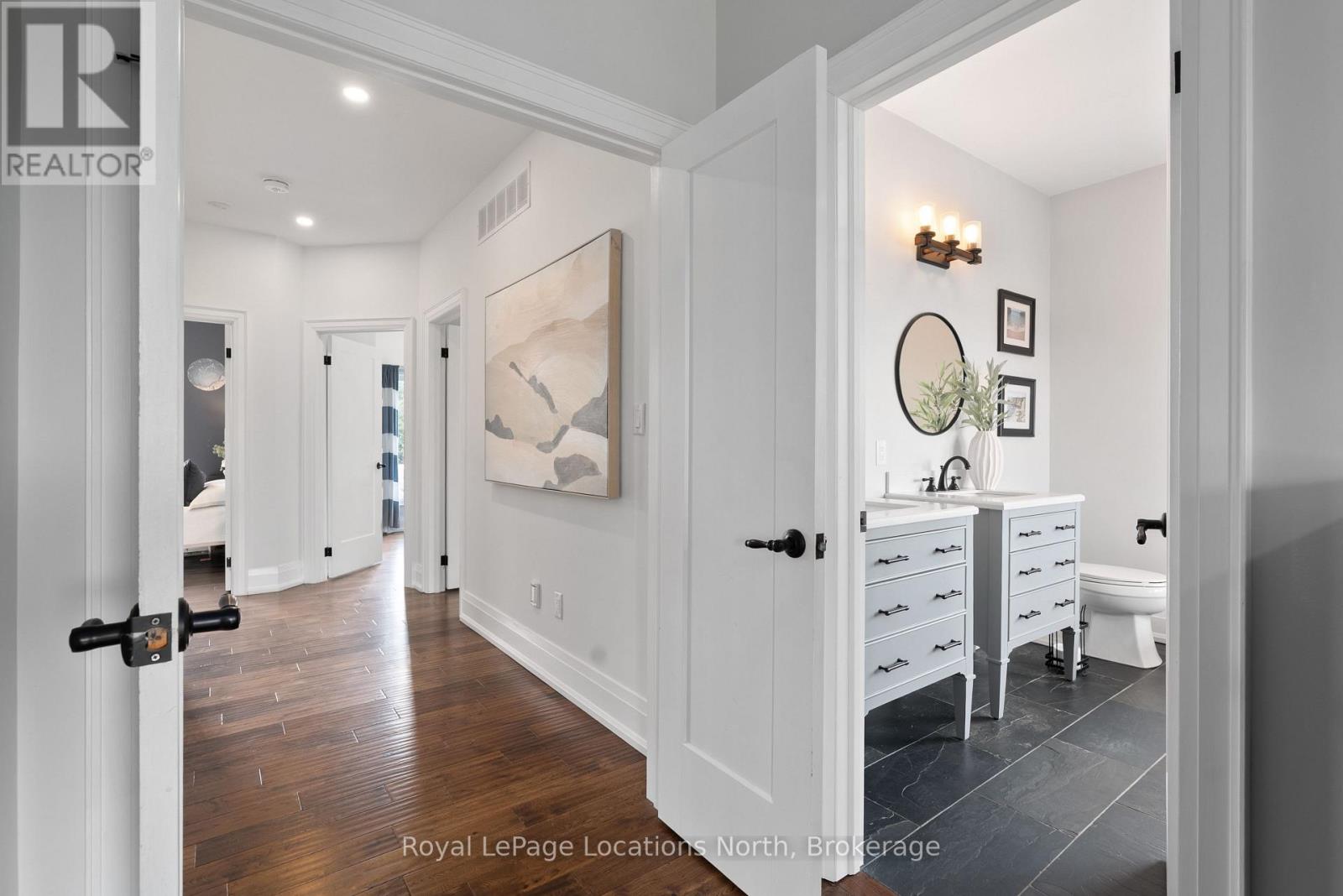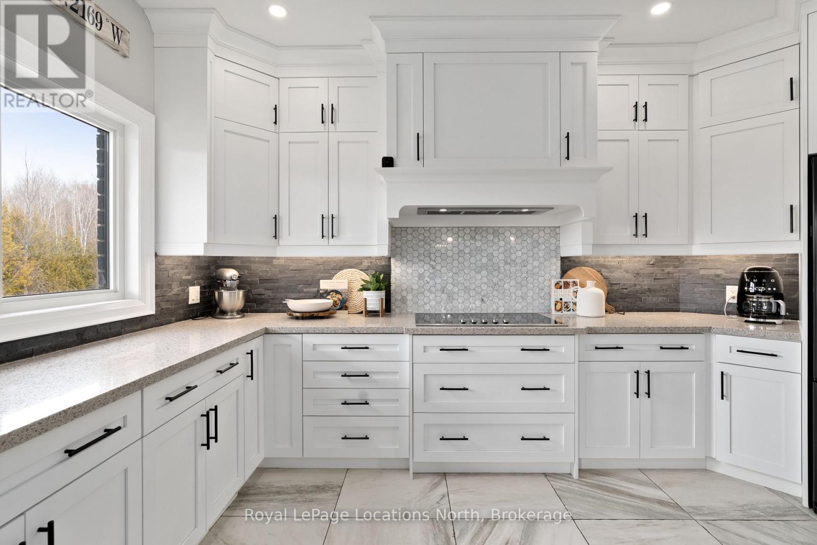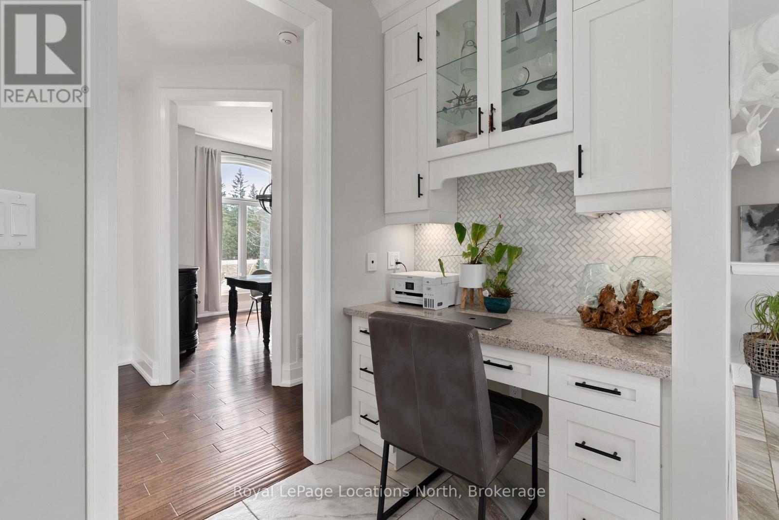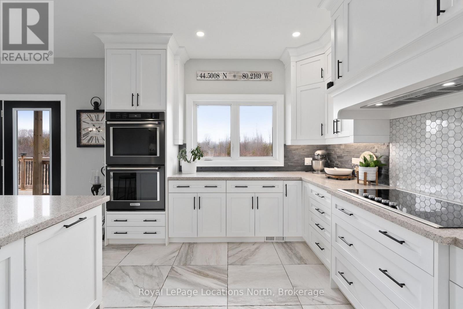 Custom-built all brick and stone bungalow set on an expansive lot in a highly desirable location, offering stunning views toward Osler Bluff and the surrounding escarpment. This thoughtfully designed home features soaring ceilings, hand-scraped oak hardwood flooring, and high-end finishes throughout. The chef-inspired kitchen showcases quartz countertops, custom cabinetry, premium appliances including double wall ovens and an induction cooktop, and a large centre island and breakfast seating-perfect for both everyday living and entertaining, as well as a built-in office nook. The open-concept layout flows seamlessly into the great room and main dining area, while the main-level laundry/mudroom provides convenient inside entry from the oversized insulated two-car garage. The spacious primary suite offers a generous layout, walk-in closet, private outdoor access, and a beautifully finished ensuite. Three additional bedrooms and well-appointed bathrooms continue the theme of quality craftsmanship, complete with designer fixtures and refined finishes. The fully finished lower level with 9-ft ceilings significantly expands the living space, featuring a large recreation room, dedicated gym, and yoga studio or potential in-law suite with a separate entrance-ideal for extended family or flexible lifestyle needs. Enjoy peaceful surroundings with abundant wildlife and long, uninterrupted views of natural greenery, all while being just minutes to Downtown Collingwood, Blue Mountain Village, skiing, golf, and year-round recreation. A rare opportunity to own a beautifully finished bungalow in an exceptional four-season setting surrounded by nature. (id:64974)