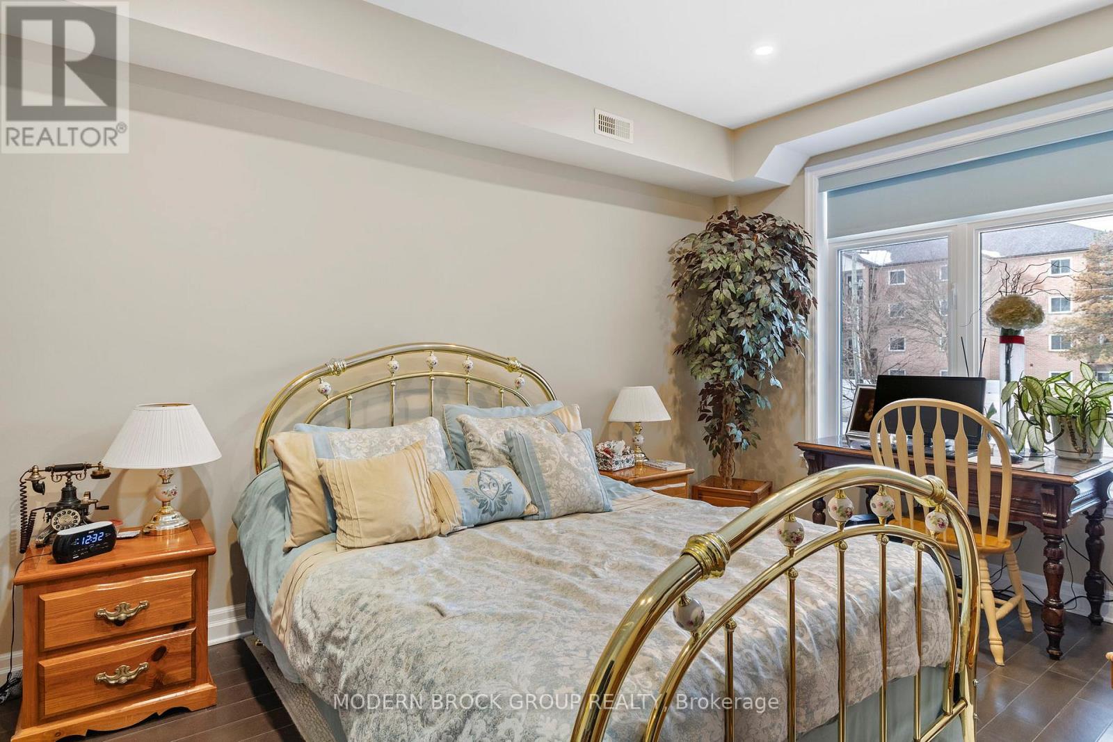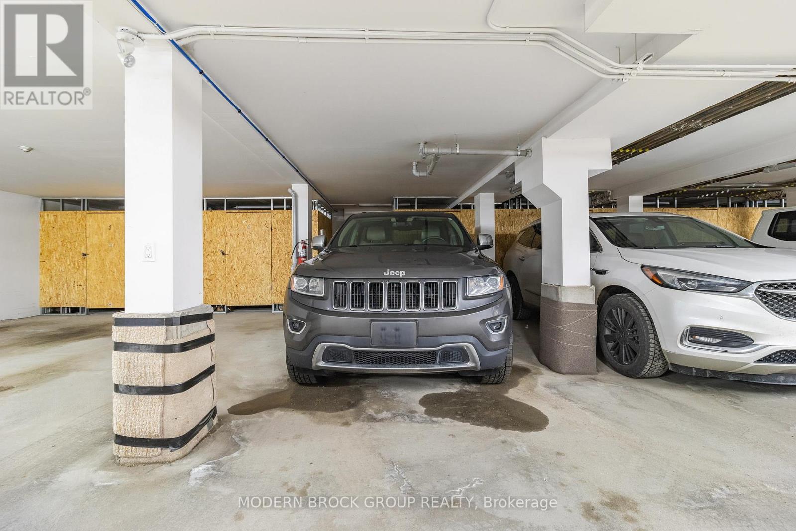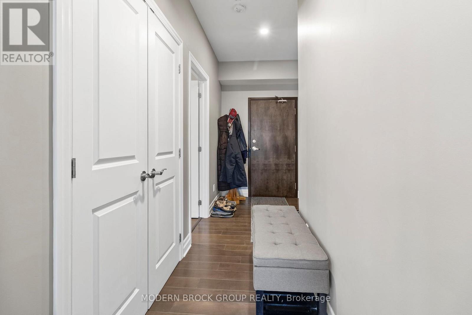 Welcome to a carefree lifestyle in a well managed and stylish luxury building? This bright and spacious open concept, two bedroom, two bathroom condo boasts nine foot ceilings and oversized windows that draw in plenty of natural light even on those dreary winter days. It's conveniently located near shopping, restaurants, recreation and parks in Brockville's North End. You will love the warmth underfoot of the in-floor radiant heat and the convenience of in-suite laundry and secure underground parking. The A/C and air handler were just cleaned and serviced and an upgraded thermostat installed and programmed. There is nothing to do except move in, relax, and enjoy your morning coffee on your private balcony. There is even a secure locker on the garage level to throw your luggage into when you're back from your winter getaway. This suite was recently repainted and new insulated blinds installed. Book your private showing today. (id:64974)
