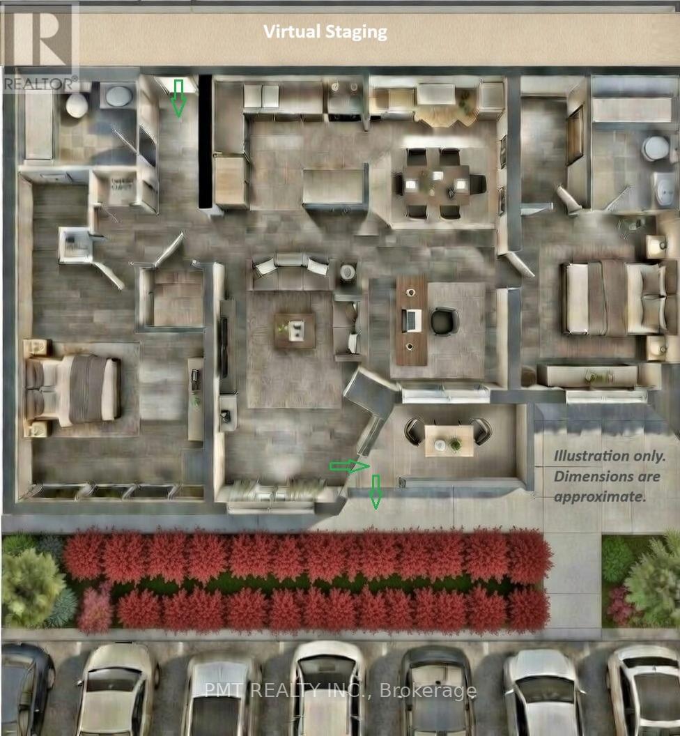 Rare south-facing ground-floor 2+1 bedroom, 2 bathroom suite with direct walk-out to landscaped gardens - enjoy the convenience of ground-level living with no elevators or waiting. Functional layout featuring a versatile den ideal for a home office and two parking spaces, a highly sought-after bonus in this area. Located just steps from Square One, Metro, the Community Centre, transit, and the future Hurontario LRT, with easy access to major highways for convenient commuting. A major advantage of this building is that significant capital upgrades have already been completed, including fan coil replacements, elevator modernization, generator upgrades, and new windows currently being installed, helping reduce the likelihood of future large special assessments. High-speed internet included. Excellent value in the heart of downtown Mississauga. Seller motivated and open to reasonable offers. Flexible closing available. (id:64974)