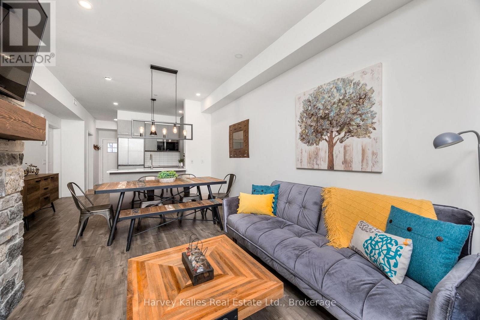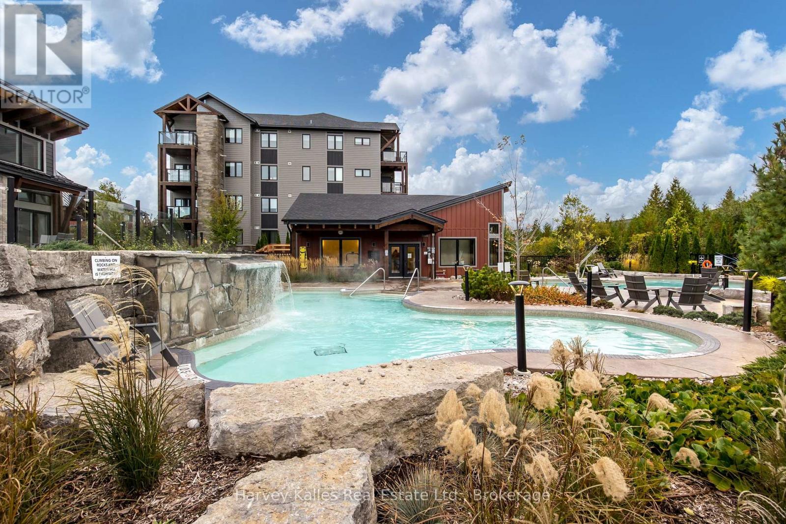 Tastefully Furnished 2-Bedroom, 2-Bathroom Condo for Annual Lease in Prime Location. Discover the perfect blend of comfort, convenience, and resort-style living in this great condo. Nestled in a sought-after community near Blue Mountain, this inviting unit offers everything you need for a relaxed vibrant lifestyle. The interior includes a stylish and spacious layout, thoughtfully designed with tasteful furnishings, and a cozy gas fireplace providing a warm and welcoming atmosphere. The modern kitchen is fully quipped with kitchen-ware, small cooking appliances, built-in sleek stainless steel appliances - perfect for preparing meals with ease. Retreat to the primary bedroom, featuring a comfortable queen bed and a private ensuite bathroom with floating vanity sink and glass shower. The versatile second bedroom is also furnished with a queen bed. This room conveniently connects to a Jack-and-Jill bathroom, which is also accessible from the hallway - a perfect additional bedroom for guests or family. Enjoy direct access to scenic trails leading to Blue Mountain Resort, offering year-round outdoor activities. With access to resort style amenities, relax and unwind with access to two heated outdoor pools - a luxurious hot tub spa pool with a cascading waterfall and a separate heated swimming pool. If you're into fitness or wellness, stay active in the on-site gym, hit the trails surrounding the community or stretch and rejuvenate in the dedicated yoga room. Finish by indulging in the soothing heat of the sauna - perfect for post-trail relaxation. This condo unit is conveniently close to Blue Mountain resort and the charming town of Collingwood where you'll be sure to find an array of shops, restaurants, and entertainment. Situated in a lovely and welcoming community, this condo offers the perfect balance of serenity and accessibility. Whether you're seeking a peaceful retreat or an active lifestyle, this unit offers it all. Make this exceptional condo your new home. (id:64974)