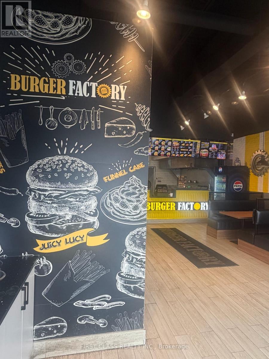 Great opportunity to own a newly built Burger Factory franchise located in a busy, high-traffic plaza anchored by strong national tenants such as Shoppers Drug Mart, Dollarama, Food Basics and many more. This plaza is a popular destination for local residents, generating steady foot traffic throughout the day.The store features modern leasehold improvements, updated equipment, and a professionally designed interior that meets current franchise standards. The business has established sales with excellent potential for further growth through delivery services, extended hours, and local marketing. The location offers strong visibility on Highway 2, easy access, and plenty of on-site parking. Situated in a dense and rapidly growing residential area, the plaza is surrounded by established neighbourhoods and new housing developments. It is also located close to three schools, providing consistent lunchtime and after-school traffic, along with strong evening and weekend business from nearby families.Turn-key opportunity ideal for owner-operators or investors looking to acquire a well-known franchise in a strong retail corridor with long-term growth potential. (id:64974)