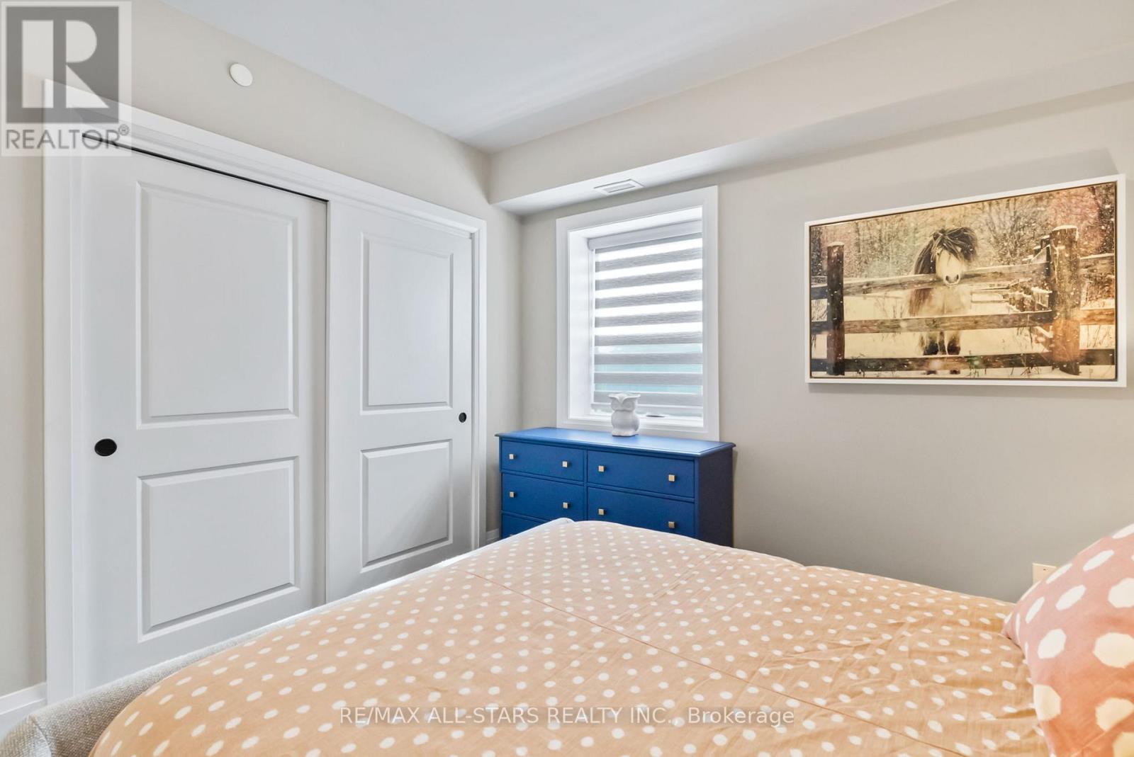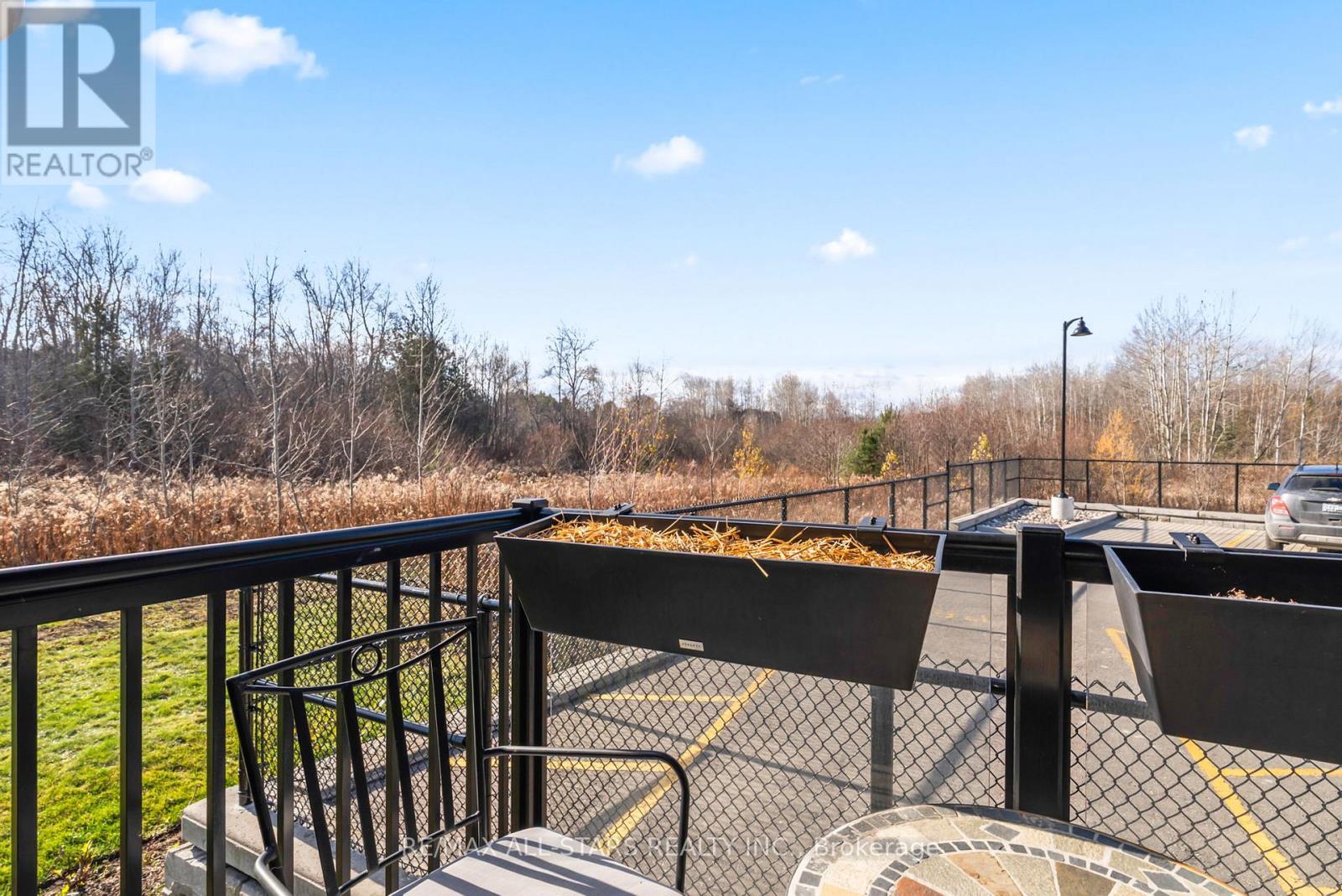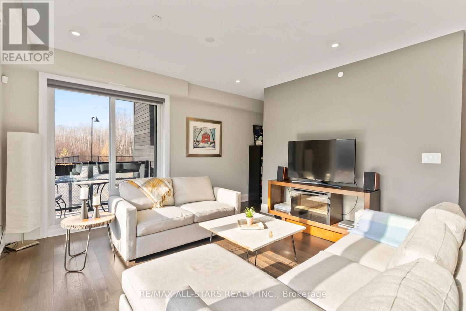 Discover refined living in this beautifully crafted two-level corner condo, offering over 1,207 sq. ft(Per MPAC). of contemporary design in one of Uxbridge's most sought-after boutique residences. The main level welcomes you with an airy, open-concept layout featuring a sleek modern kitchen with a large waterfall-edge island, warm wood cabinetry, stainless steel appliances, and stylish pendant lighting-perfect for effortless entertaining. The spacious living area is framed by expansive windows that showcase serene natural views, filling the space with soft, inviting light. A private balcony extends your living outdoors, creating the perfect spot to unwind in peace and privacy. On the lower level, retreat to two generously sized bedrooms, each enhanced with rich hardwood flooring and oversized windows that bring the tranquility of the outdoors inside. The luxurious 4-piece bathroom offers a spa-inspired experience with stylish heated tile floors and modern finishes, while a chic main-floor powder room adds everyday practicality. Set within an intimate 12-unit building, this residence provides a rare blend of elegance, community, and convenience-complete with a storage locker and dedicated parking. Located just steps from Uxbridge's vibrant downtown, charming local shops, cozy cafés, and scenic trails, this home delivers the perfect balance of upscale modern living and small-town comfort. A truly exceptional opportunity in one of Uxbridge's most desirable locations. (id:64974)