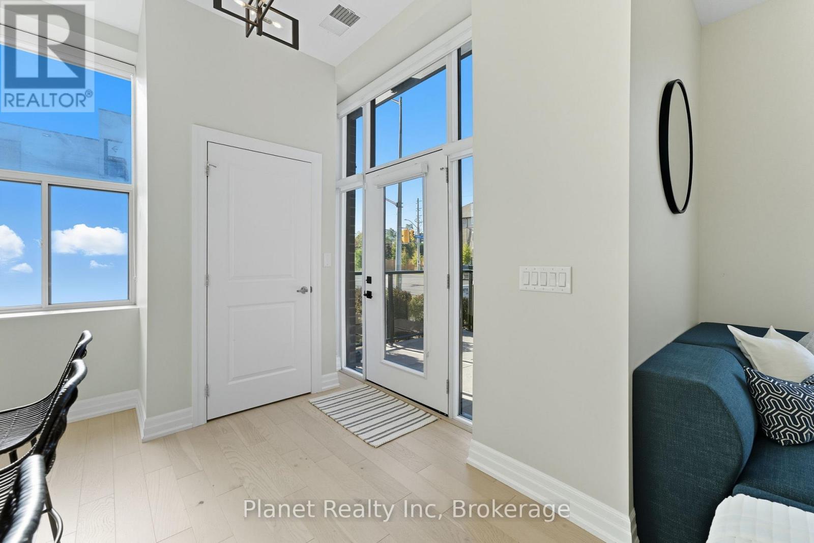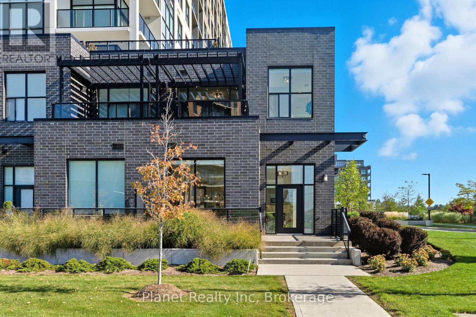 Experience effortless, maintenance-free living in Gordon Square, south Guelph's premier community. This upgraded 2-storey executive townhome offers 3 bedrooms, 2 full bathrooms, 1,800+ sq ft of open-concept living, a contemporary kitchen, abundant storage, underground parking with EV charger, a massive balcony, and a private second-floor terrace off the primary bedroom. Condo fees cover heat, water & A/C, plus full exterior maintenance, snow removal, window washing, landscaping, building insurance; not to mention your exclusive access to resort-style amenities, giving you more time to enjoy life. On-site amenities include a 13th-floor party room & lounge, private guest suite, fully equipped gym, indoor golf simulator, and landscaped outdoor spaces. Perfect for professionals, downsizers, or anyone seeking modern, lock-and-leave living with convenience and style. Located close to shopping, dining, parks, commuter routes, and the University of Guelph, this home offers an unmatched combination of space, lifestyle, and low-maintenance living. (id:64974)