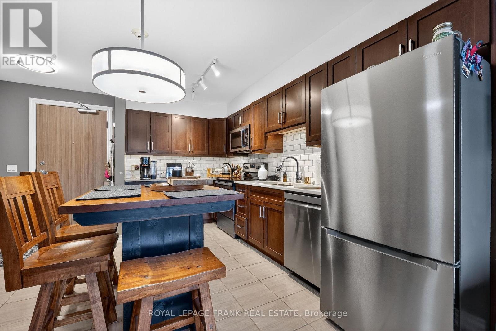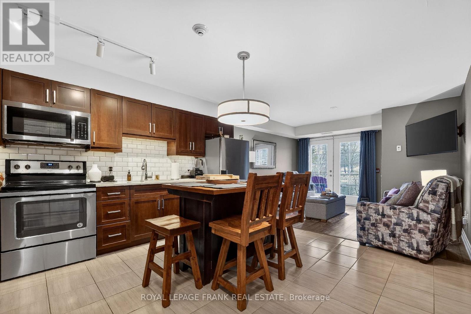 Modern & Stylish Waterfront Condo in the Heart of Lindsay! This ground floor 1 bedroom suite flaunts a beautiful open concept floorplan with a walkout to a peaceful riverside patio. The kitchen features stainless steel appliances, quartz countertops, loads of cupboard space & center island w/seating for 4. Spacious primary bedroom & bathroom. In-suite laundry. Pyjama Factory Condominiums offers it's owners a well equipped gym, party room & a large outdoor BBQ/lounge space overlooking the water. The Victoria Rail Trail is steps away & it's a short walk to parks, restaurants, shopping & all that downtown has to offer. $589 CONDO FEE INCLUDES HEAT, WATER, PARKING, GYM, PARTY ROOM, WATERFRONT BBQ/LOUNGE SPACE, MANAGEMENT & ALL EXTERIOR MAINTANCE! *Pet Friendly* (id:64974)