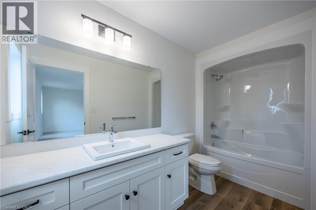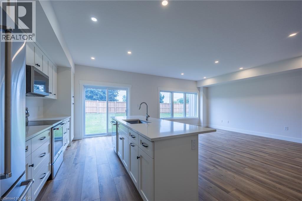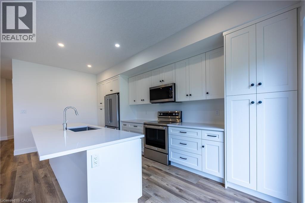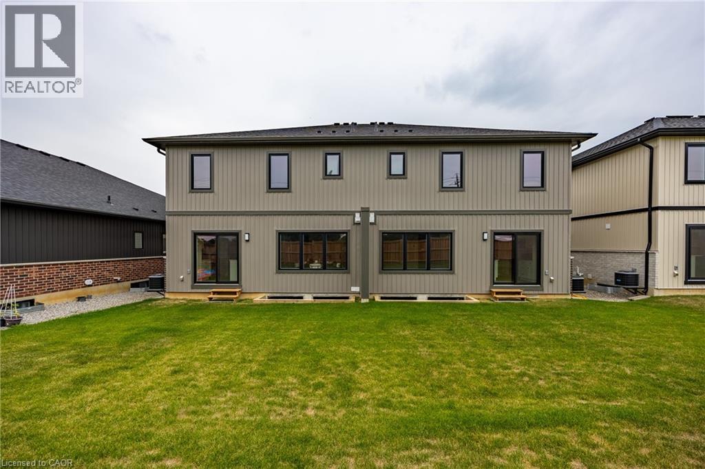 Welcome to 103 Amber Street, Waterford – a newly built semi-detached home that blends modern design with small-town charm. With1787 sq. ft. of thoughtfully designed living space, this 2-storey semi-detached home offers the perfect balance of comfort, style, and functionality, making it ideal for today’s growing families. Step inside from the covered front entrance into a spacious foyer that opens into a bright, open-concept main floor. The kitchen is a true showpiece, featuring custom cabinetry, quartz countertops and a breakfast island, all designed with modern convenience in mind. The dining area and great room flow seamlessly together, creating an inviting space for gatherings and everyday living. Luxury vinyl plank flooring throughout the main level ensures both durability and style. Upstairs, you’ll find three generously sized bedrooms, including a primary suite complete with a 4-piece ensuite and walk-in closet. Practical details such as an upper-level laundry room with sink, 9-ft main floor ceilings, and an attached double-car garage with 8-ft door add everyday convenience. The unfinished basement with large windows and a rough-in bath is ready for your personal touch. Beyond the home, Waterford is a community that truly shines. Known for its friendly atmosphere, and welcoming downtown, local stores and restaurants, and Waterford North Conservation Area with three ponds and trails, it offers the best of small-town living while keeping you close to everything you need. Larger centres like Simcoe, Brantford, and Hamilton are just a short drive away, giving you easy access to shopping, healthcare, and major highways while letting you come home to peace and charm. With modern finishes, energy-efficient systems, and fibre-optic internet already in place, 103 Amber Street offers more than just a house—it offers a lifestyle. (id:64974)