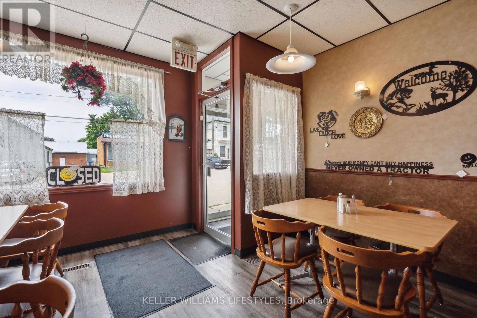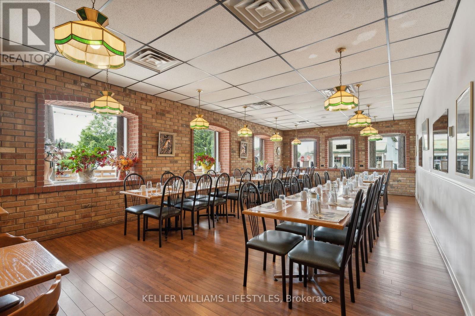 Exceptional Commercial Opportunity in Embro! Seize the chance to own the only restaurant in the village with this prime corner property on Commissioner Street. This well-loved, family-style establishment, seating up to 98 guests, enjoys high visibility and ample parking, making it a favourite for locals and a magnet for passing traffic. Conveniently located near London, Ingersoll, Woodstock, and Stratford, its perfectly positioned to attract a broad customer base. The restaurant comes fully equipped with all the necessary tools and appliances for a thriving business, ensuring a smooth transition for new ownership. It also features a seasonal ice cream shop and a newer outdoor patio! The property also includes a vacant 2-bedroom, 1-bathroom apartment on the upper level, ideal for immediate rental or personal use. Additionally, theres a second framed unit upstairs that can be converted into another apartment or expanded for a larger living space. This is an ideal investment for those looking to run a successful community restaurant while benefiting from residential rental income. The perfect opportunity for an ambitious restauranteur ready to grow a thriving business or an investor seeking a valuable asset, this listing offers a unique opportunity to tap into both commercial and residential markets in a vibrant, small-town setting. (id:64974)