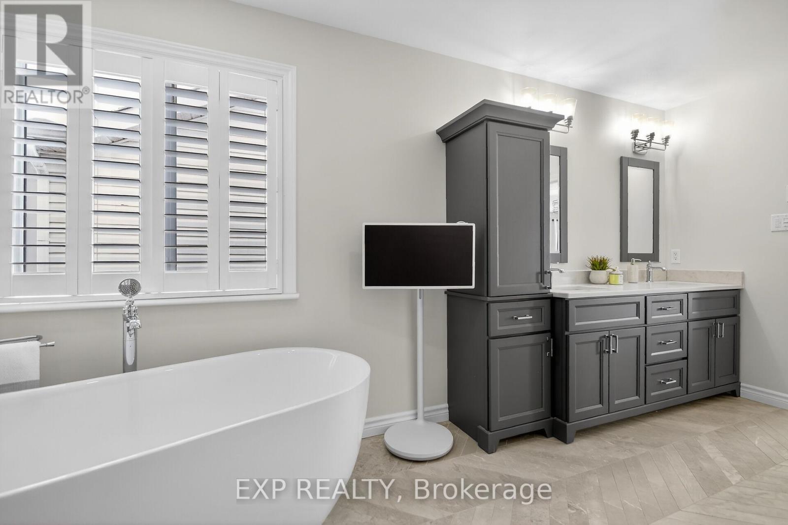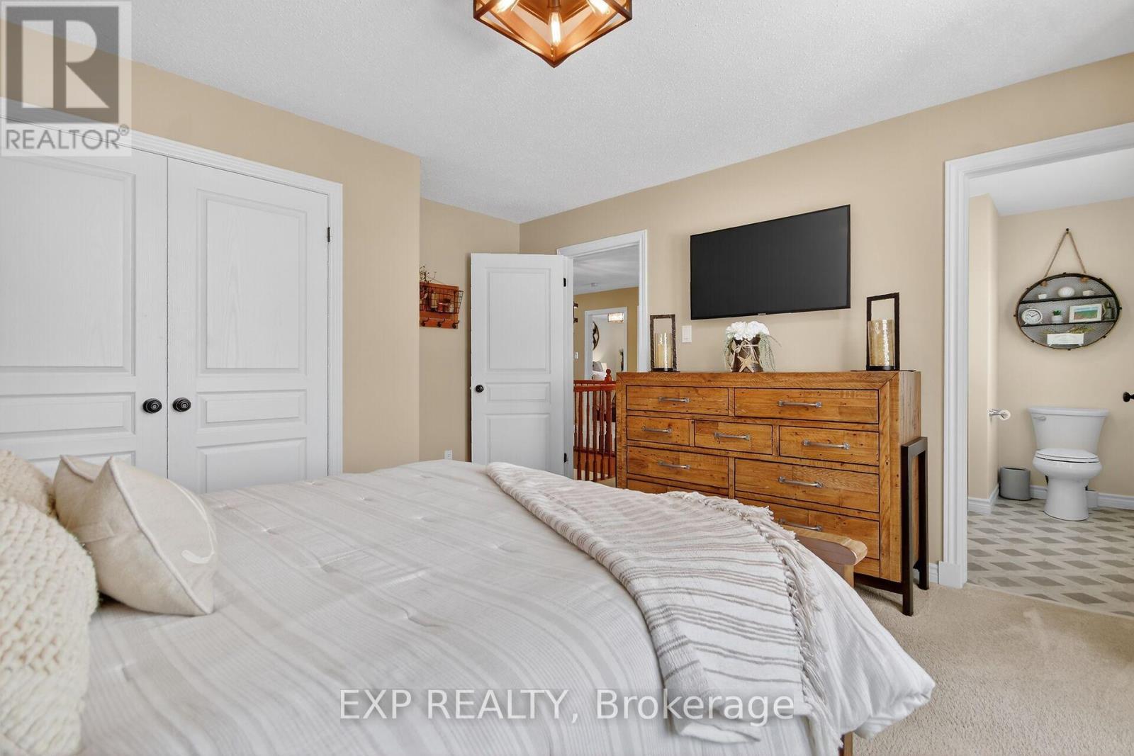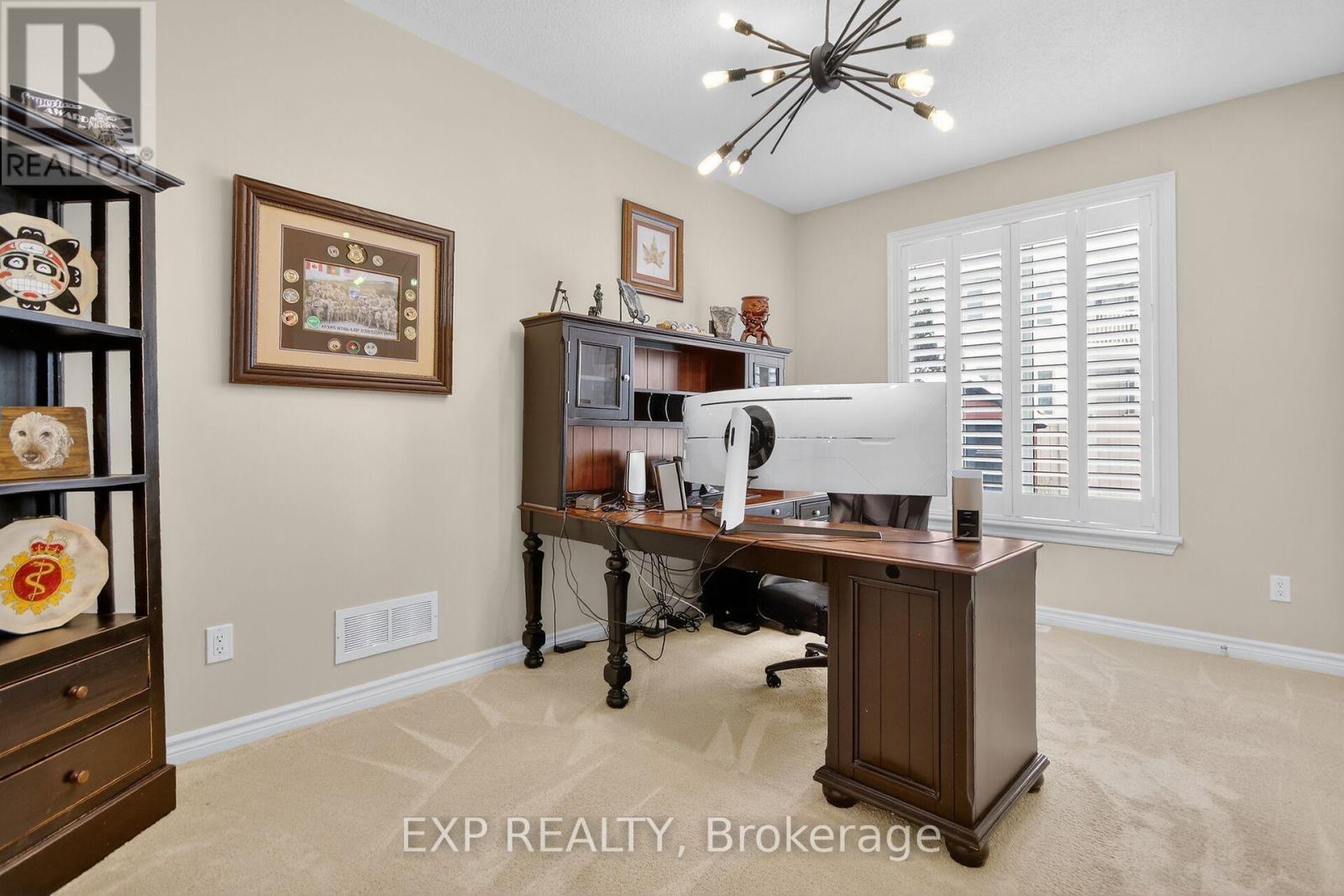 Welcome to this exceptional Ritchcraft Wildwood I model, ideally located on a quiet crescent in the highly sought-after West Ridge subdivision. Set on a premium corner lot with valuable side-yard space, this meticulously maintained home offers an outstanding blend of luxury, functionality, and future potential.The sun-filled main floor features two expansive living areas perfect for everyday living and entertaining, along with a separate formal dining room. A main-floor office offers excellent flexibility and can easily function as a fifth bedroom. The impressive eat-in kitchen showcases stone countertops, high-end appliances, ample cabinetry, and a pantry, while the adjoining family room is anchored by a gas fireplace and dramatic vaulted ceiling. Upstairs are four generously sized bedrooms, including a luxurious primary retreat with a walk-in closet and a spacious five-piece ensuite. Two additional bedrooms share a beautifully updated Jack & Jill bathroom, and all bathrooms in the home recently professionally renovated. A rare triple heated garage with epoxy flooring adds exceptional value. The unfinished basement offers endless customization opportunities, with potential to expand the home to nearly 5,000 sq. ft. Major updates include a new roof (2020), furnace, ERV, and air conditioner, providing peace of mind for years to come. The fully fenced backyard is a private oasis featuring a PVC deck with natural gas BBQ hookup, stamped concrete patio, pergola-covered firepit area, and a barely used top-of-the-line hot tub. Thoughtful landscaping, a functional side yard with sheds, and professional front-yard stonework complete the exterior. Located less than five minutes to Highway 417 and 15-20 minutes to Carling Campus, with parks, schools, and amenities nearby, this remarkable home offers space, quality, and an exceptional lifestyle in one of the area's most coveted communities. (id:64974)