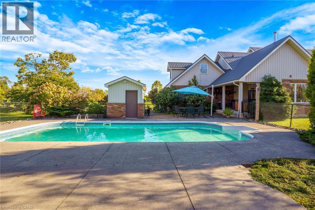 A COUNTRY ESTATE WITH A CRAFT TWIST. This is a rare opportunity where lifestyle and business beautifully intertwine. Set on over 13.7 picturesque acres, this extraordinary property offers both a thriving licensed brewery operation and an immaculate 4+1 bedroom country home, creating a one-of-a-kind package for those seeking to live, work, & dream all in one place. As you arrive, the winding drive opens to sweeping lawns and mature trees framing a stately 3,000+ sq ft home, custom built in 2005. Step inside to find a warm, light-filled interior-where hardwood floors flow through spacious gathering areas, a family-sized kitchen with maple cabinetry, and a cozy living room overlooking the grounds. Generous bedrooms and a versatile loft above the garage offer plenty of space for family or guests. Outside, your backyard retreat awaits-complete with a 16’ x 32’ inground pool with its own pump house & change room, and a charming pergola with a wood-burning stone fireplace, perfect for evening gatherings under the stars. Beyond the home lies a working countryside haven: 2.25 acres of hop yard, 4.5 acres of rented hay field, + multiple outbuildings — including a 40’ x 64’ heated shop, 24’ x 48’ storage barn, & 14’ x 20’ garden shed. The highlight, of course, is the Steel Wheel Brewery, a locally beloved destination with a fully equipped brewhouse (2017), a welcoming taproom, and a Sea-Can kitchen that allows the space to operate as a full bar & restaurant. The brewery building spans 2,688 sqft, powered by 400-amp service and propane heat, and comes complete with stainless-steel tanks & equipment-offering everything you need to continue or expand. Recent upgrades include a new steel roof (2025), propane heat & AC (2024), & updated electrical throughout. Whether you’re an entrepreneur ready to take over a successful craft brewery or a family seeking a self-sustaining property with space to grow, this address captures the heart of rural living & the spirit of entrepreneurship. (id:64974)