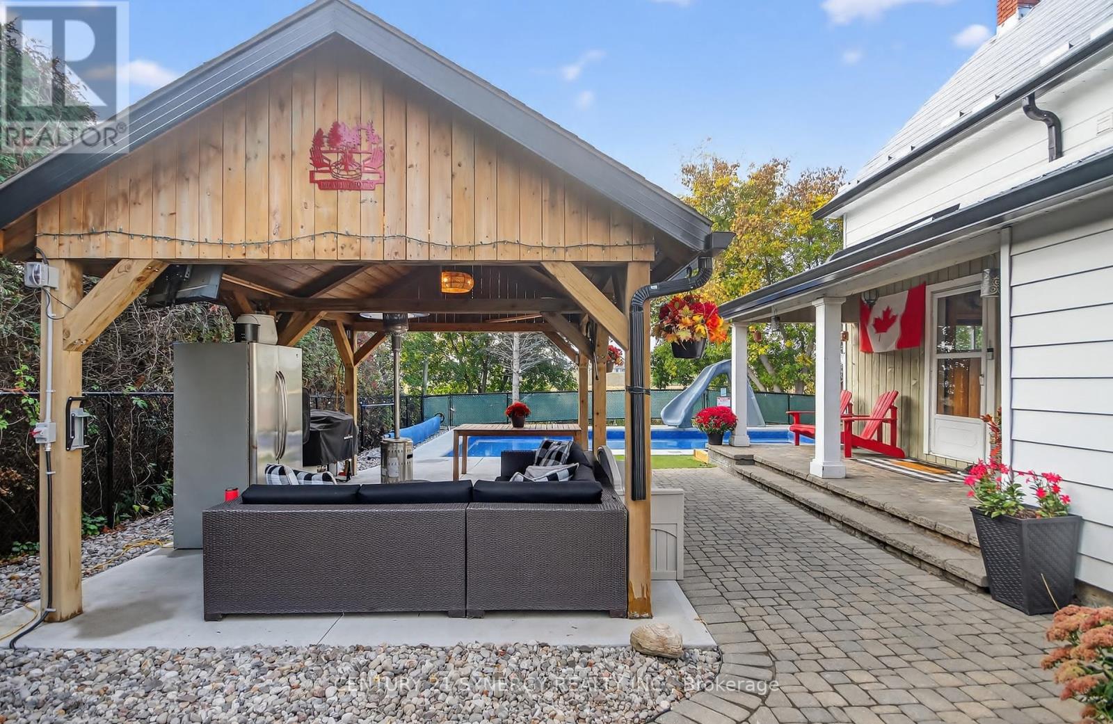 Take a closer look at this beautifully updated and spacious farm house loaded with character and modern amenities. Enjoy a large kitchen with granite counters that overlooks the professionally landscaped back yard! Original refinished pine flooring found in the main part of home that features spacious living and dining rooms. Four generous size bedrooms on the second level that includes second level laundry! The professionally finished back yard features interlock walkway supporting a custom gazebo that overlooks the newly installed salt water pool that is heated and a metal roof highlighted by the permanent lighting! Perfectly situated in the sought after community of Richmond Village you are close to schools parks and all conveniences. Important improvements include: Gazebo (2019), Powder Bath and Vanity (2023), Inground Pool with Pump and Heater (2024), Leaf Filter Eaves Trough with Lifetime Guarantee (2024), Celebrite Permanent Lighting (2024), Professionally Landscaped Interlock and artificial turf (2024), Built in Storage in Living Room (2024). (id:64974)