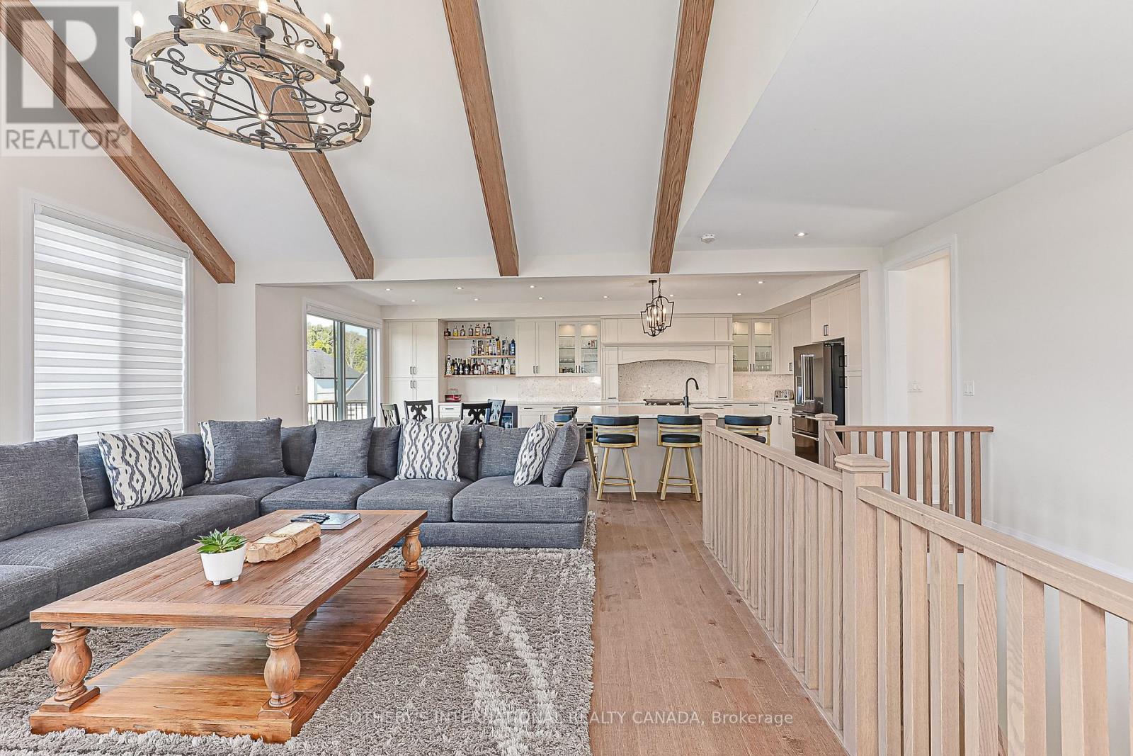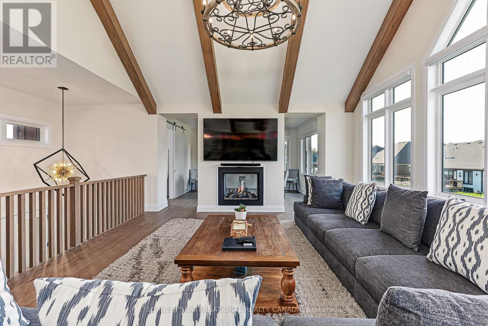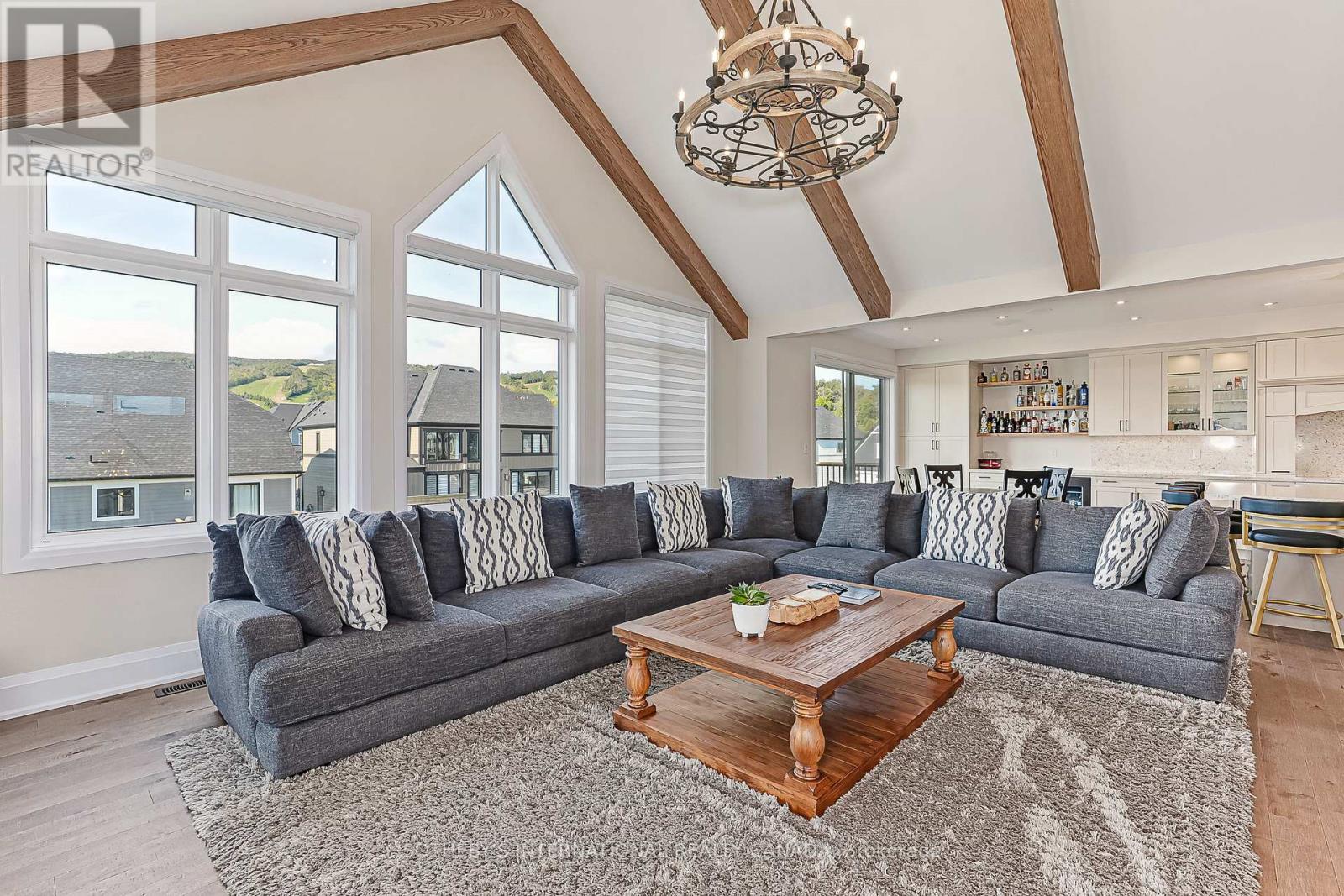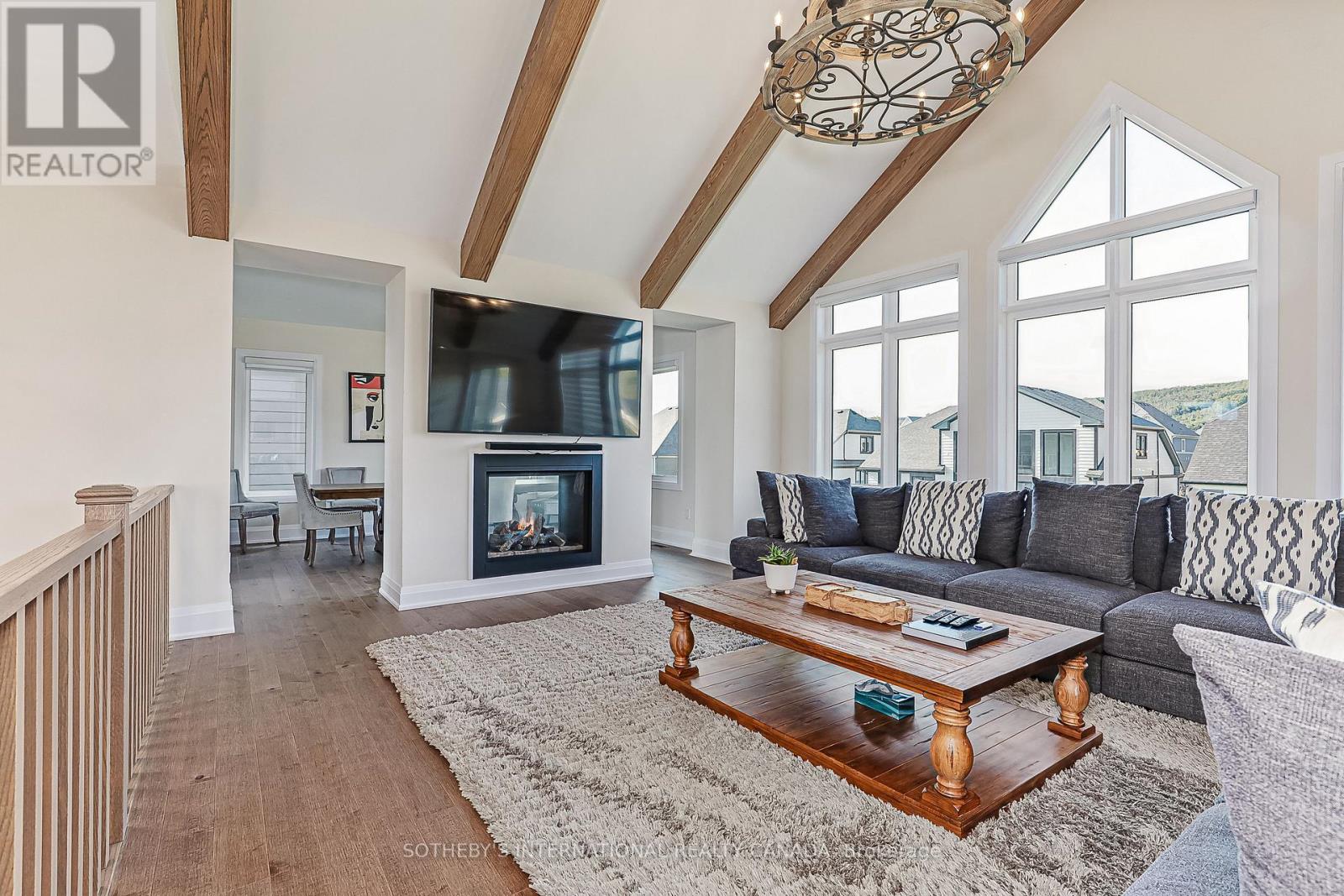 Set in the heart of Ontario's premier four-season playground, this exceptional seven-bedroom residence delivers effortless living & year-round adventure. Just steps from the Village at Blue, Monterra Golf, & the ski hills, this turnkey, move-in-ready home provides instant access to everything the Blue Mountains lifestyle offers, without the need for a single upgrade or renovation. When the snow falls, you're minutes from world-class skiing, snowshoeing, & après-ski at the village. After a day on the slopes, return to a home designed for comfort & connection: soaring ceilings in the great room showcase stunning mountain views, & a dramatic two-sided fireplace warms both the dining area & lounge, a perfect backdrop for winter gatherings. W/seven spacious bedrooms & five beautifully finished bathrooms, there's ample room for family & guests to settle in & unwind. As the seasons change, so does your playground. Georgian Bay's sparkling shoreline invites sailing, swimming, paddling, & kayaking all summer long. Fall brings colourful hiking & cycling trails right to your doorstep. Inside, the chef's kitchen flows effortlessly into bright, open living spaces, creating the ideal setting for everything from lively entertaining to quiet mornings w/ coffee & mountain views. The lower-level recreation room offers a cozy retreat for movie nights, games, or well-earned relaxation after a day outdoors. A two-car garage ensures convenience through every season, while the complimentary shuttle service provides easy access to the Village, the ski hills, & select private amenities, including the exclusive Blue Mountain Beach. Minutes from Thornbury's acclaimed restaurants, boutiques, & marina & just two hours from Toronto, this home embodies the best of four-season living. Here, the mountains meet the bay, adventure meets comfort, & every day feels like a holiday. Move in, unpack, & start living the lifestyle immediately. This is not just a home. It's a ready-made, year-round retreat. (id:64974)
