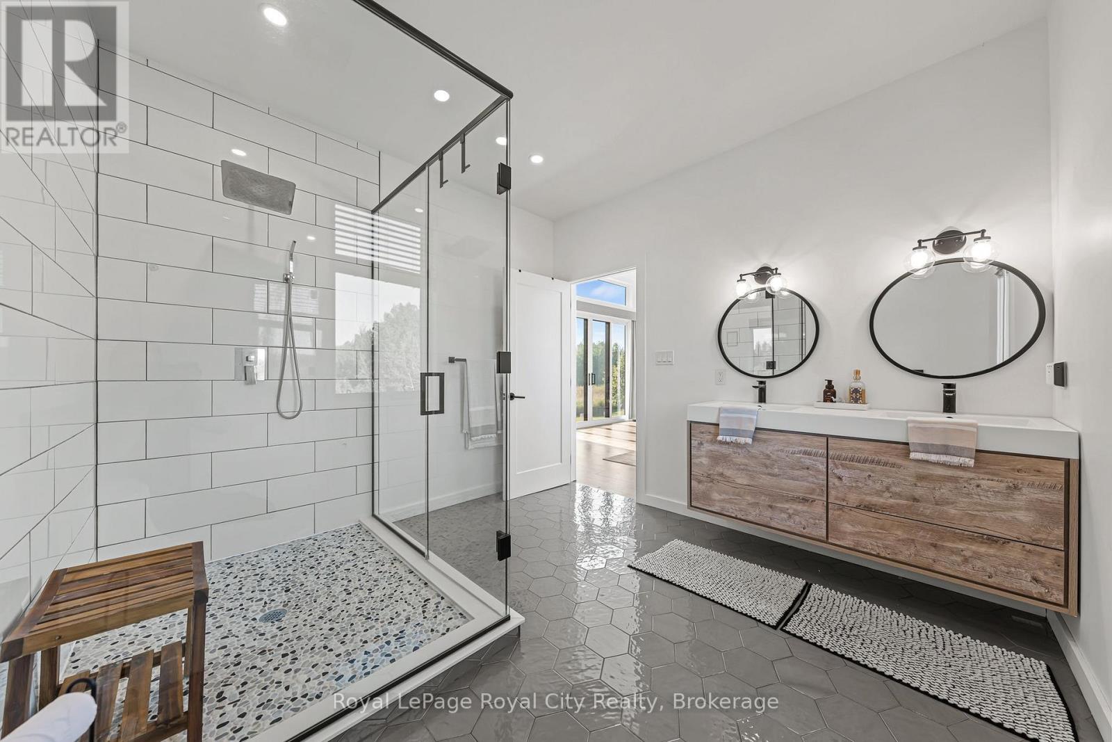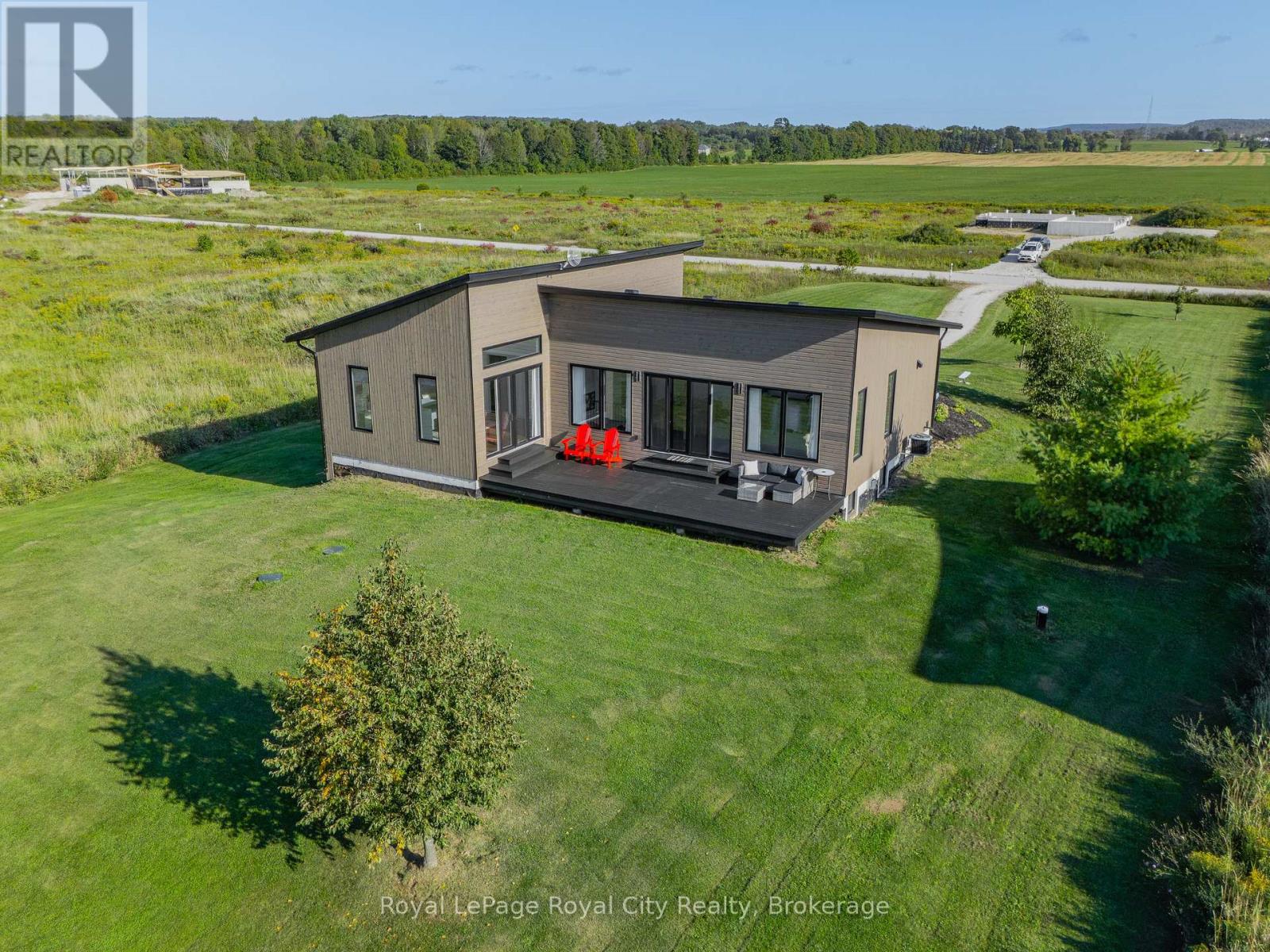 Refined European Design. Breathtaking Natural Beauty. Nestled within the prestigious Rockcliffe Estates, this one acre retreat overlooks the sparkling shores of southern Georgian Bay and is framed by the rugged beauty of the Niagara Escarpment. Your journey home winds through rolling farmland, forests, and orchards before arriving at this private sanctuary, where elevated country living meets modern luxury. Inside, soaring floor to ceiling windows flood the open concept living space with natural light, while expansive sliding glass doors create a seamless connection between indoors and out. The chef's kitchen is a true showpiece, featuring a striking waterfall island and premium built-in appliances-perfect for both everyday living and effortless entertaining. The primary suite is light-filled and tranquil, highlighted by vaulted ceilings, direct access to the deck, a spa-inspired ensuite, and a fully outfitted walk-in closet. A second spacious bedroom and a stylish four-piece bathroom complete the main level. The sleek floating staircase leads to the lower level, where an expansive family room invites cozy movie nights or game day gatherings, warmed by a modern propane "wood" stove. An oversized third bedroom offers exceptional flexibility as a guest suite, home office, gym, or creative studio. This level also features a well equipped laundry room with Bosch washer and dryer, a utility sink, and ample storage. The oversized single garage (20' x 17') provides generous space for a vehicle, tools, and all your recreational gear. Outdoor enthusiasts will feel right at home, with endless opportunities for skiing, snowmobiling, hiking, cycling, water sports, beaches, and ATV trails just beyond your doorstep. Ideally located only 20 minutes to Owen Sound, 40 minutes to The Blue Mountains, and under 2.5 hours from Toronto, this exceptional property offers the very best of the Georgian Bay lifestyle-where rural charm, refined design, and urban accessibility come together. (id:64974)