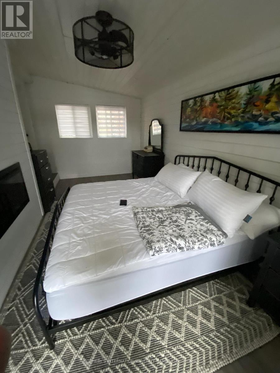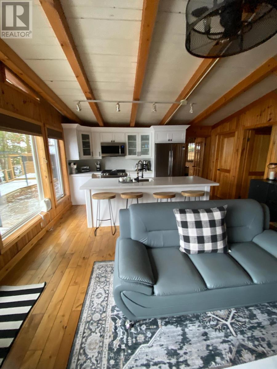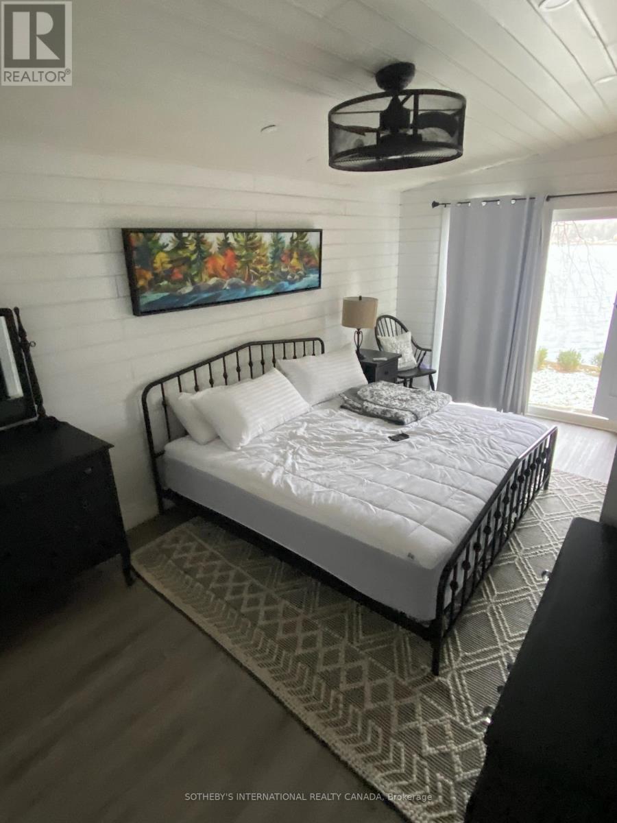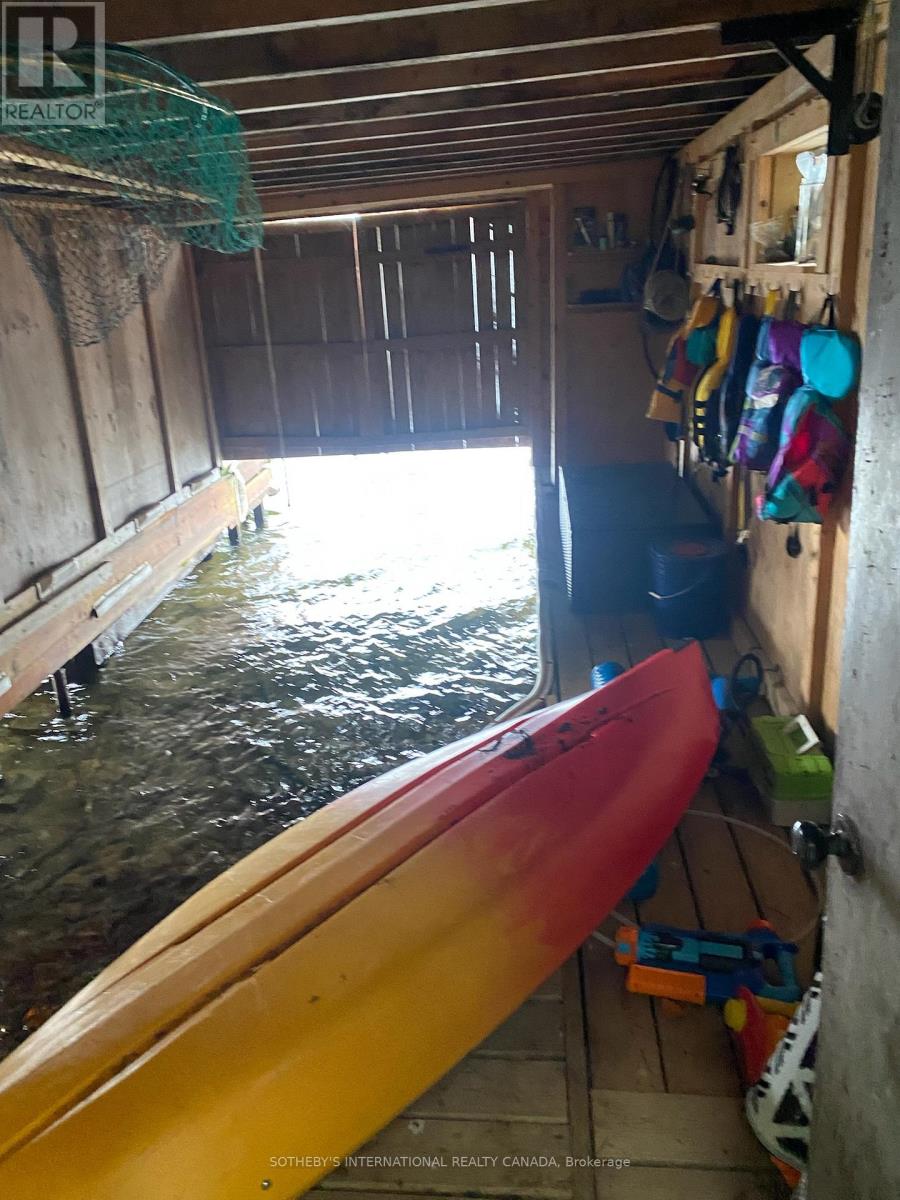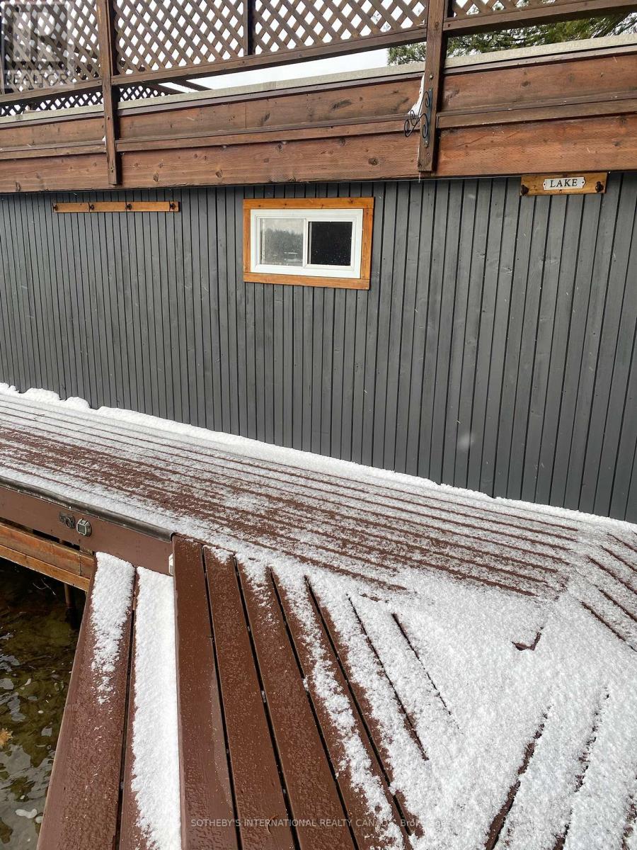 Moore Lake - Renovated Lakefront Retreat with Sunset Views. Exquisite west-facing lakefront property on beautiful Moore Lake, just two hours from the GTA. This private, maturely treed lot offers 154 feet of shoreline and spectacular sunset views, with year-round access at the end of a quiet cul-de-sac.Extensively renovated, the charming 1.5-storey cottage has been transformed into a refined four-season retreat, blending modern comforts with rustic character. Inside, soaring cathedral pine ceilings, custom built-ins, and a sun-filled open-concept layout create a warm and welcoming atmosphere. The sunroom flows seamlessly to the expansive lake-facing deck, offering the perfect space for entertaining or relaxing.The fully updated kitchen and bathrooms, stylish lighting, and high-quality finishes throughout make this home move-in ready. The lower level offers flexible space with a walkout-ideal for a third bedroom, studio, or workshop.Step outside to enjoy curated outdoor living at its best: a new outdoor kitchen, professionally landscaped stone pathways, a lakeside firepit, and 470 sq. ft. of decking plus an extensive dock system ideal for swimming and boating. A detached double garage, adorable bunkie, and charming children's playhouse complete the package. Whether you're seeking a peaceful family getaway or an entertainer's dream, this turnkey property delivers timeless lakefront living with all the modern upgrades. (id:64974)