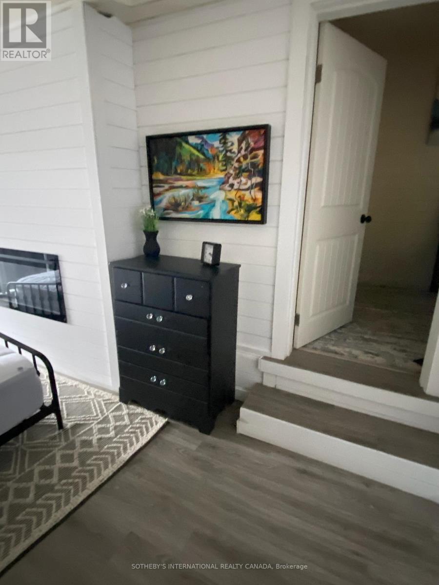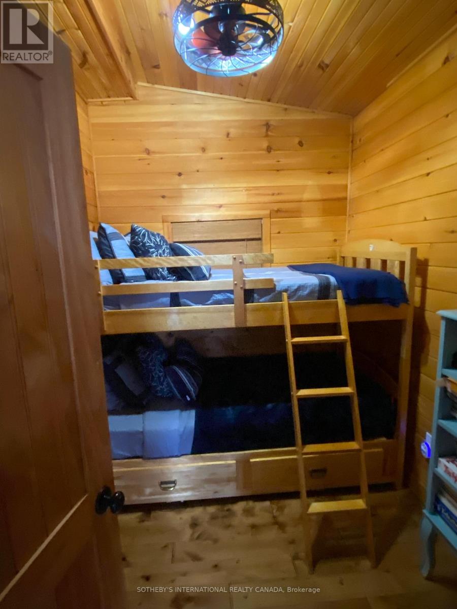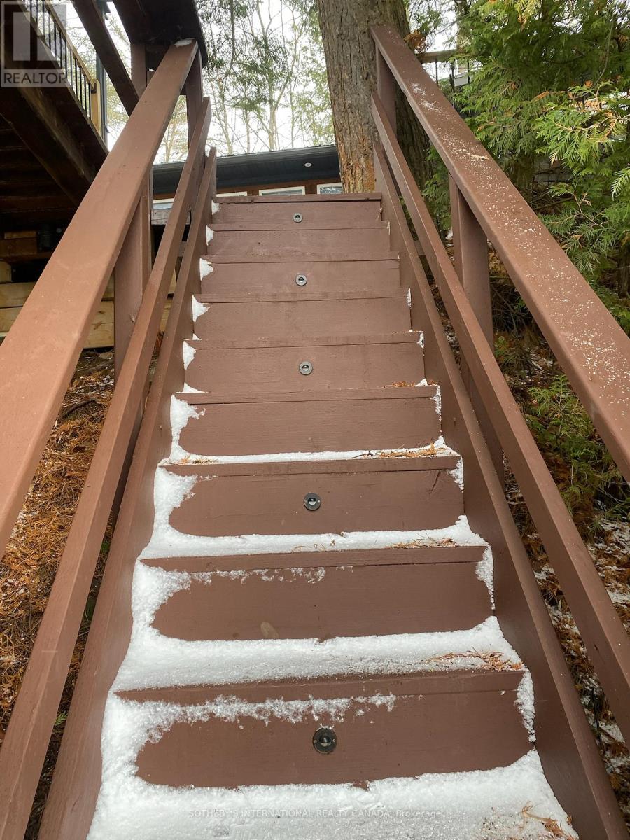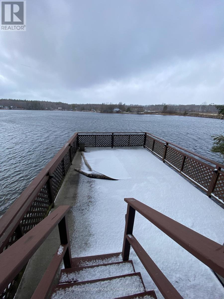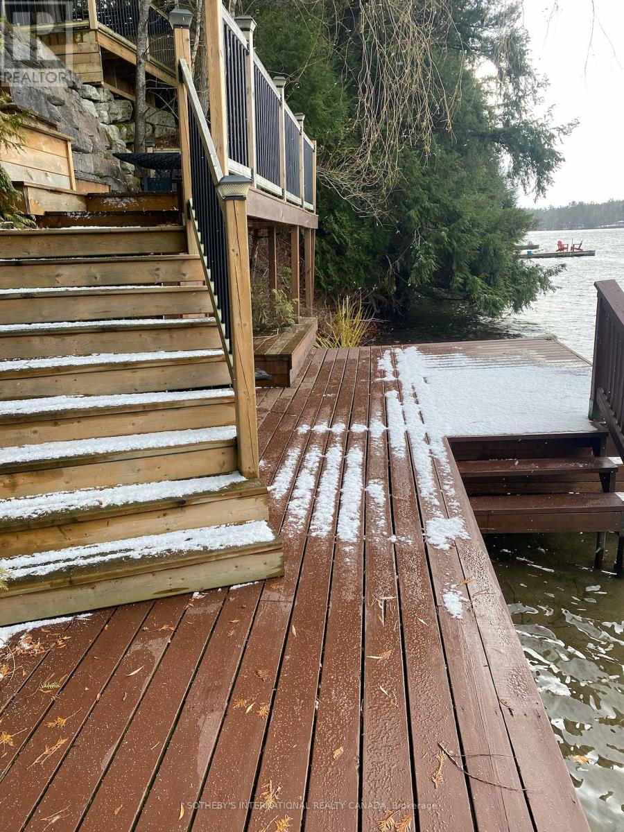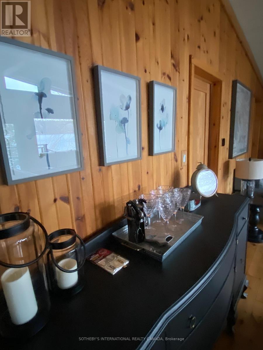 Moore Lake - Renovated Lakefront Retreat with Sunset Views. Exquisite west-facing lakefront property on beautiful Moore Lake, just two hours from the GTA. This private, maturely treed lot offers 154 feet of shoreline and spectacular sunset views, with year-round access at the end of a quiet cul-de-sac.Extensively renovated, the charming 1.5-storey cottage has been transformed into a refined four-season retreat, blending modern comforts with rustic character. Inside, soaring cathedral pine ceilings, custom built-ins, and a sun-filled open-concept layout create a warm and welcoming atmosphere. The sunroom flows seamlessly to the expansive lake-facing deck, offering the perfect space for entertaining or relaxing.The fully updated kitchen and bathrooms, stylish lighting, and high-quality finishes throughout make this home move-in ready. The lower level offers flexible space with a walkout-ideal for a third bedroom, studio, or workshop.Step outside to enjoy curated outdoor living at its best: a new outdoor kitchen, professionally landscaped stone pathways, a lakeside firepit, and 470 sq. ft. of decking plus an extensive dock system ideal for swimming and boating. A detached double garage, adorable bunkie, and charming children's playhouse complete the package. Whether you're seeking a peaceful family getaway or an entertainer's dream, this turnkey property delivers timeless lakefront living with all the modern upgrades. (id:64974)