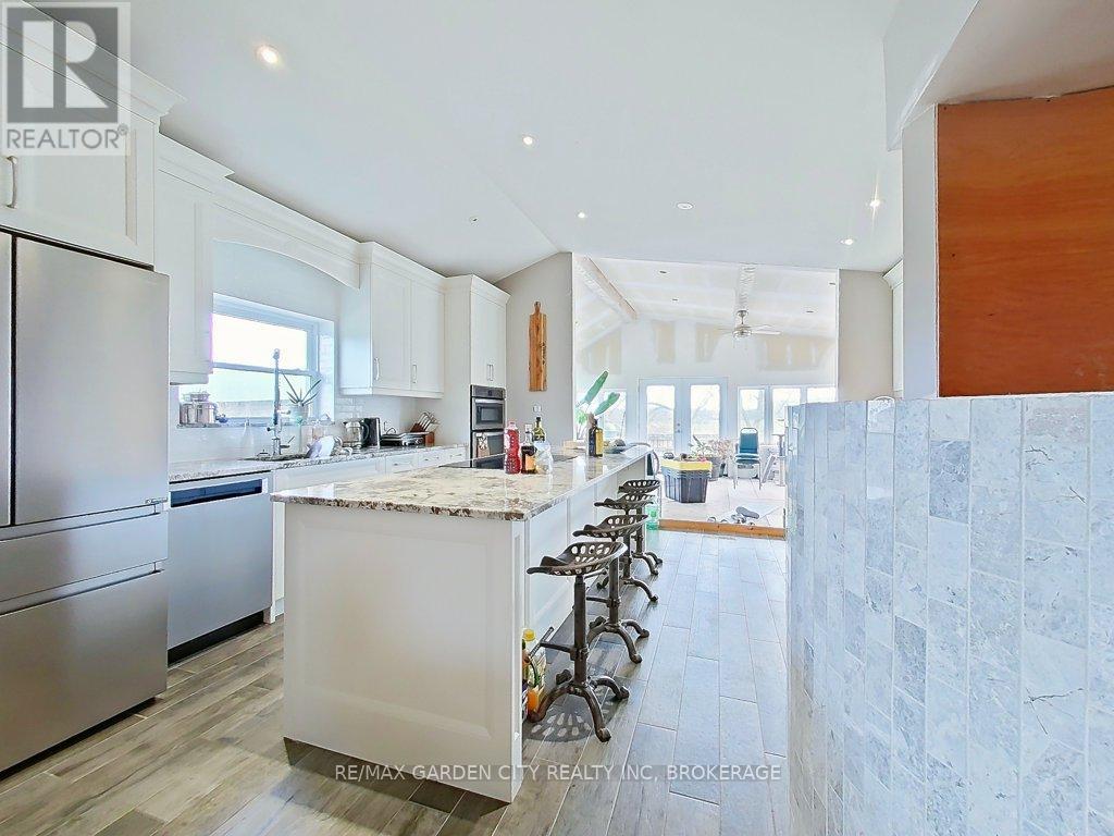 Over 23 Acres of private country living, yet only minutes to all amenities and the QEW. Picturesque property with rolling fields, tree lines and pond. Suitable for many agricultural uses. Older 2 storey board and batten barn with hand-hewn beams in need of some TLC for those wedding venues. Circular drive with a solid open concept bungalow built in the 60's. Attached double car garage addition with full walkout basement, rec room, 2pc bath, wine cellar, mudroom with sink and counter. Two bedrooms on the main floor, the master with 4pc ensuite privileges. Open concept living and dining area with maple hardwood flooring, Freshly renovated kitchen with granite counters and island, built ins, vaulted ceiling with pot lights, open to a massive family room, bright windows throughout, patio doors to a private backyard patio overlooking your pond and property. This one of a kind property could be an unbelievable homestead with some imagination and TLC. (id:64974)