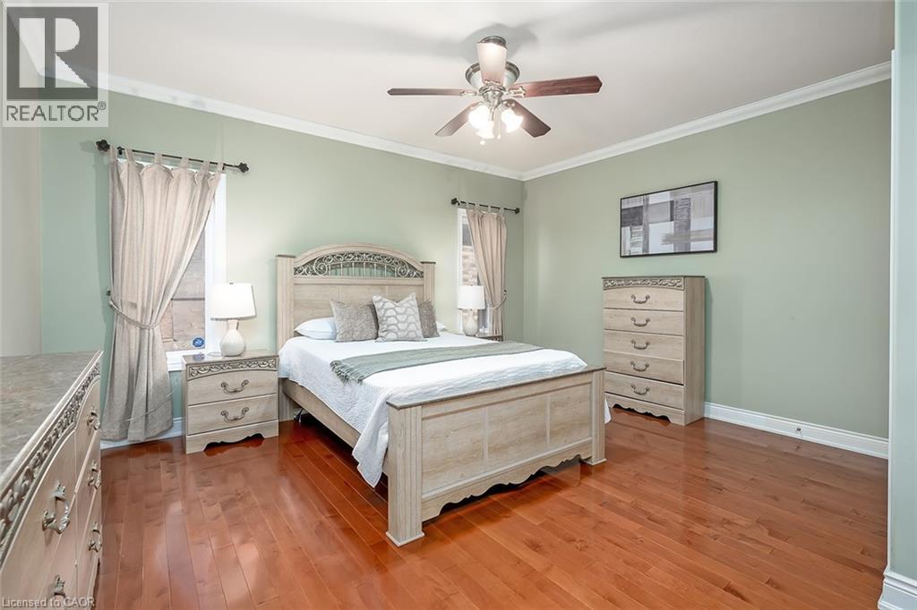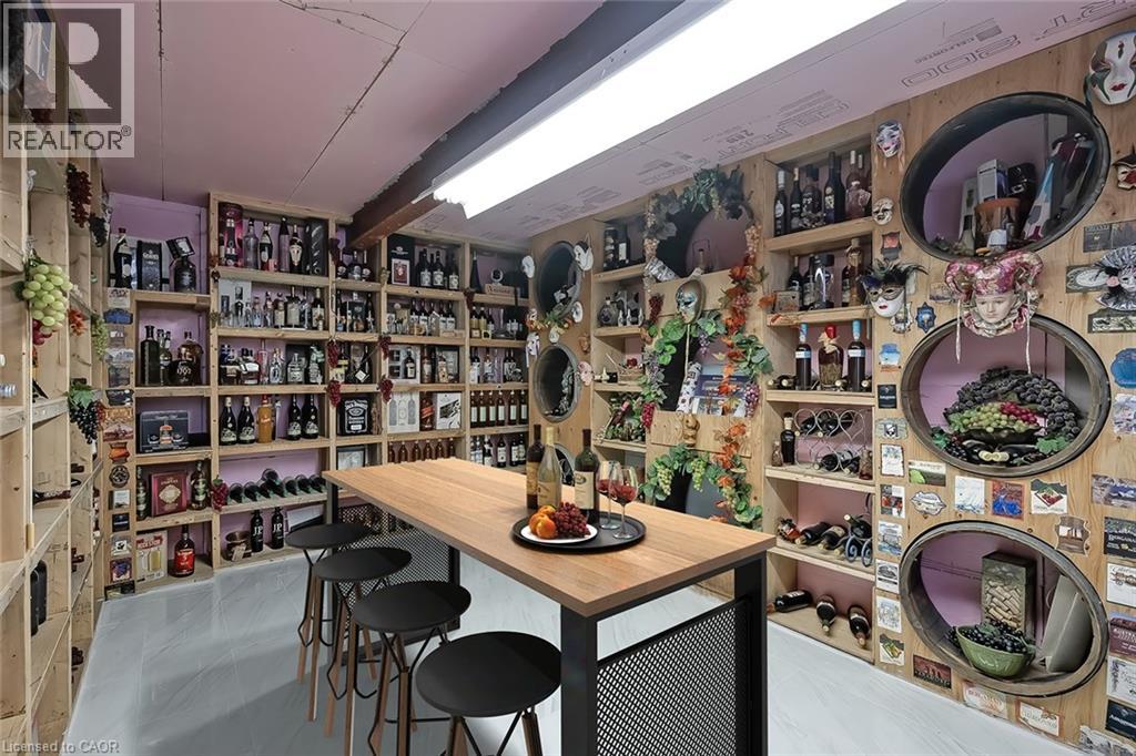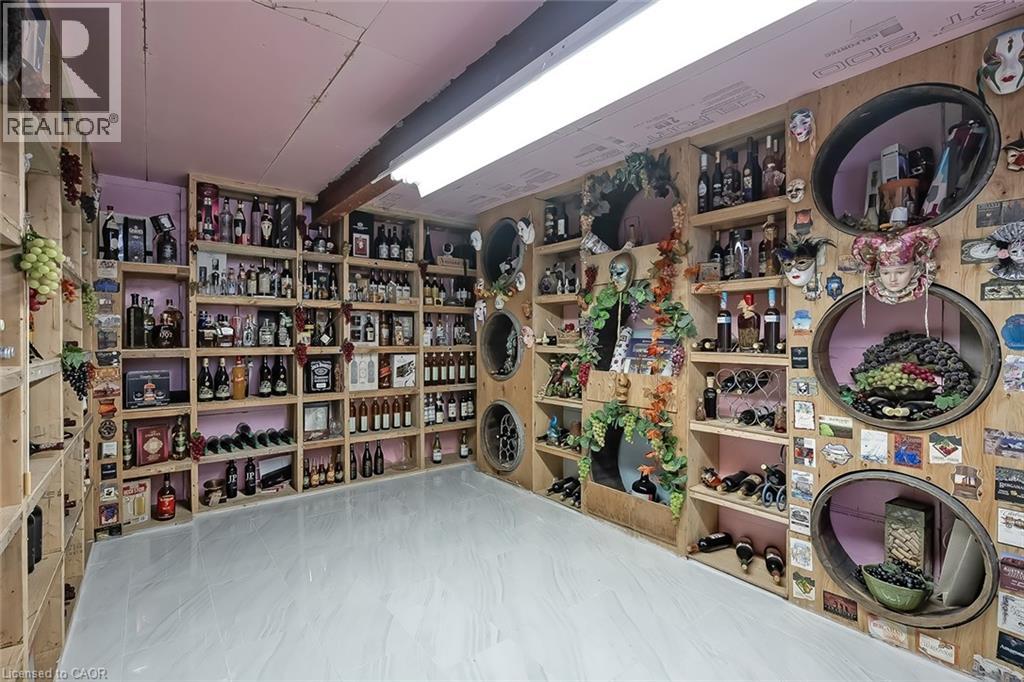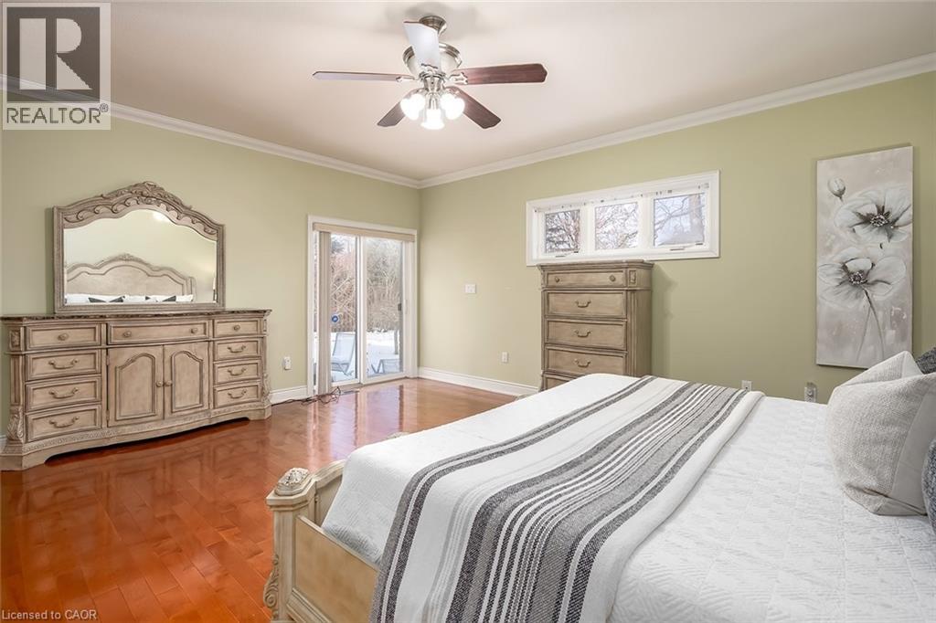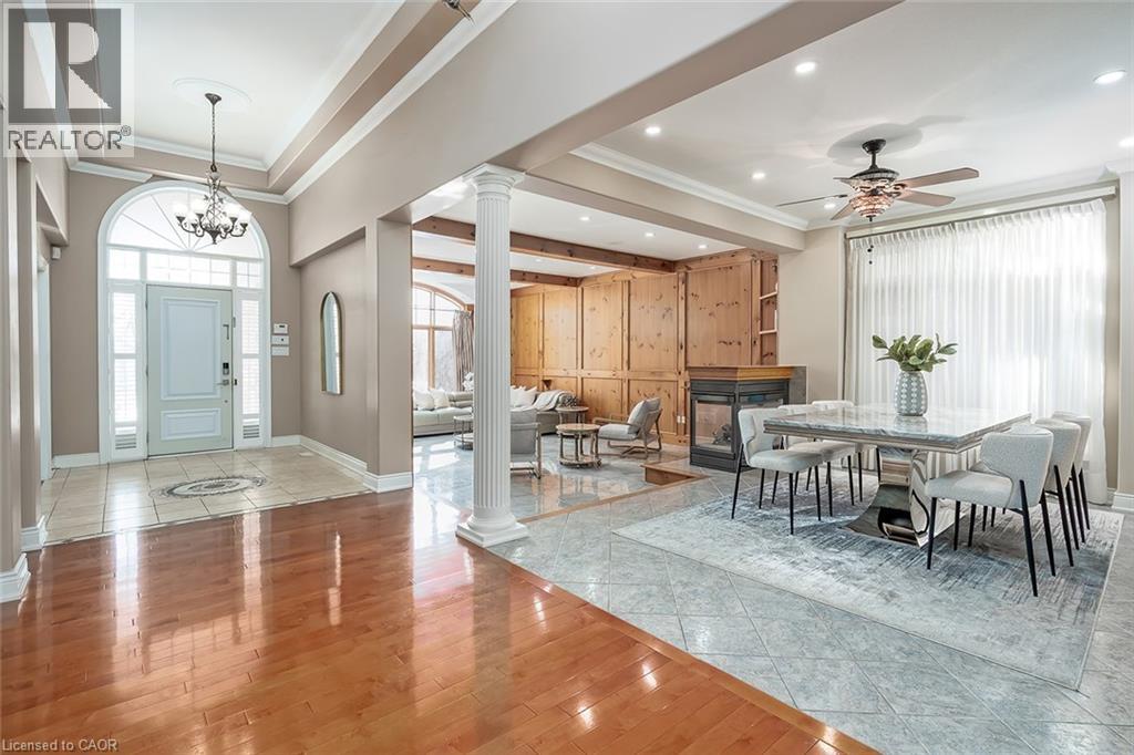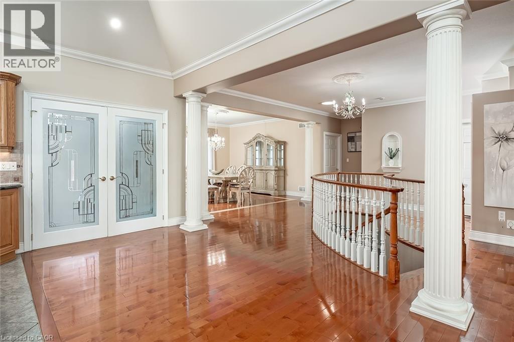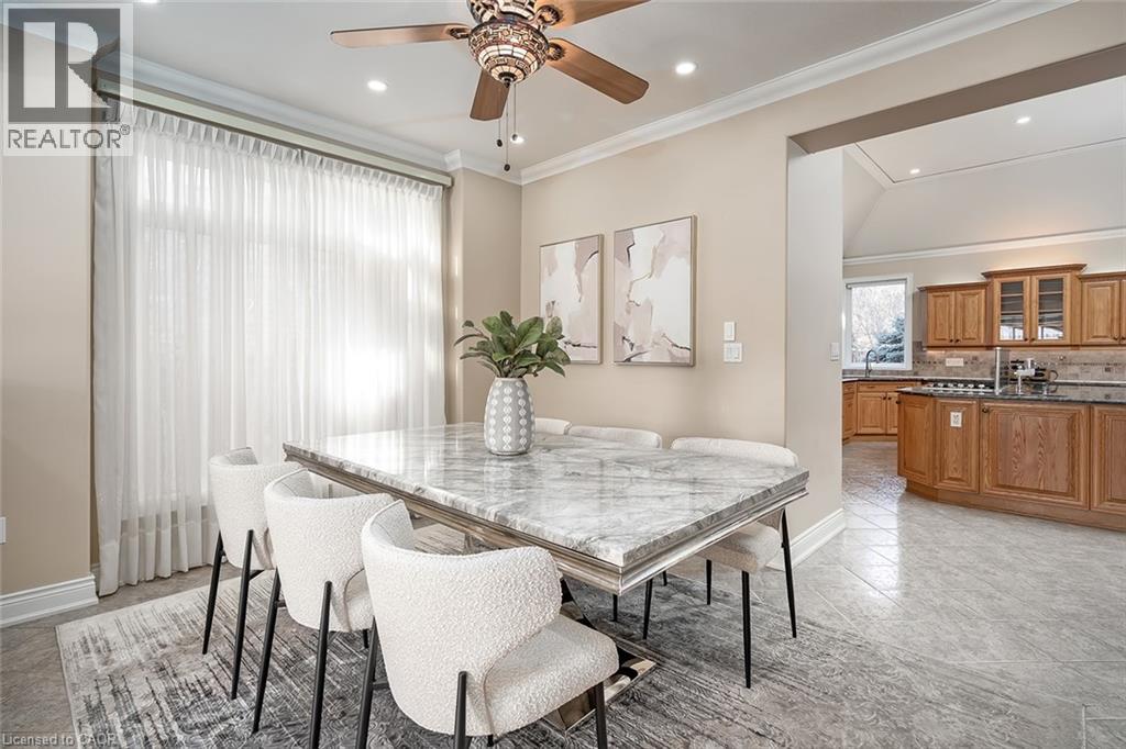 Set on an impressive 75.93 x 177.82 ft lot overlooking breathtaking views of Shorthills Provincial Park, this exceptional 2+2 bedroom, 3 bathroom residence offers over 5900 sq ft of beautifully finished living space designed for both everyday comfort and upscale entertaining. This beautiful bungalow’s exterior is complemented by an interlock driveway with parking for six plus a double car garage. Inside, a grand front foyer with soaring 14-foot ceilings, sets the tone. Elegant formal and casual spaces flow seamlessly, including a sunken living room with wood paneled wall and beams, a three-sided gas fireplace, a refined dining room with hardwood inlay, and a chef-inspired kitchen with vaulted ceilings, premium built-in appliances, expansive island, walk-in pantry and breakfast area. A sun-filled sunroom with skylights and French doors opens to the private backyard patio. The main-level primary retreat features hardwood floors, patio walkout, walk-in closet and a spa-like six-piece ensuite. A second bedroom and bathroom are perfect for guests. The finished lower level is ideal for entertaining or multi-generational living, offering a large recreation room with fireplace, wet bar, wine cellar, office, two additional bedrooms, bathroom, sitting/media room, and a walk-up to the garage. Large yard with plenty of green space, this home is minutes to wineries, trails, schools, amenities, and highway access—luxury living surrounded by nature, yet close to it all. (id:64974)