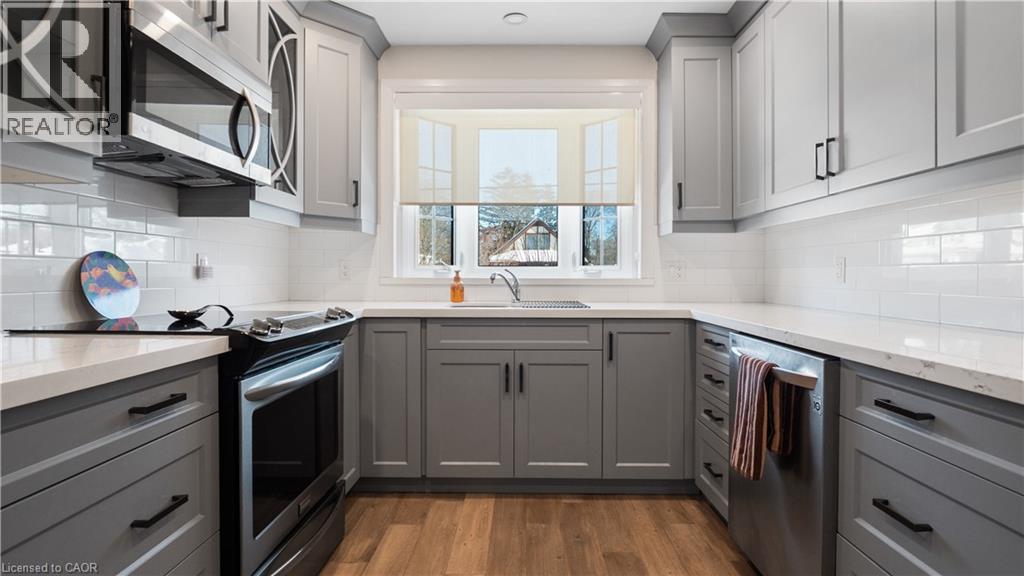 Welcome to 1032 Cedarwood Place, a fully renovated, move-in-ready bungalow on a quiet street in Burlington’s highly desirable Aldershot neighbourhood—an area known for its family-friendly feel, and proximity to amenities. Sitting on a rare 50’ x 222’ lot with mature trees, this property offers space, privacy, and flexibility. Renovated from top to bottom, this 2+1 bedroom, 2-bath, 4-garage home allows buyers to move in with confidence. The main level features a sleek custom kitchen with high-end appliances, engineered hardwood flooring throughout, and a spacious primary bedroom with a modern ensuite and custom shower. A second bedroom on the main floor provides room for growing families, guests, or a dedicated home office. The fully finished lower level adds real value in today’s market, offering a self-contained 1-bedroom in-law suite complete with kitchenette, full bathroom, and laundry—ideal for extended family, multi-generational living, or offsetting ownership costs with rental income. Outside, the thoughtfully landscaped backyard creates a peaceful setting for entertaining or relaxing, with an awning system that connects to an impressive double, double detached garage. With parking for up to four vehicles and an expansive lot depth, this property delivers functionality rarely available in this location. Whether you’re a buyer looking for a turnkey primary residence, a downsizer who still wants space and comfort, or someone seeking a home with built-in income potential, 1032 Cedarwood Place offers smart value, flexibility, and long-term confidence in one of Burlington’s most established communities. (id:64974)