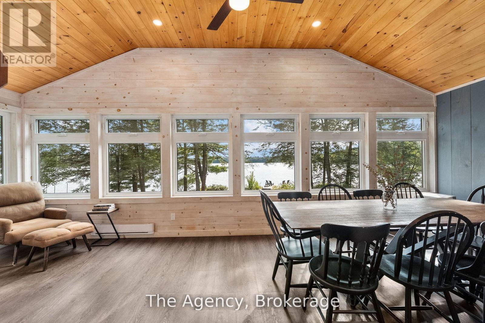 Welcome to your peaceful lakeside retreat, a place where serenity, comfort, and connection come together. This beautifully maintained, four-bedroom, two-bathroom year-round cottage offers an inviting blend of rustic charm and modern ease, perfectly designed for family living or as a highly desirable short-term rental investment. Step inside to a sun-filled dining area overlooking the water, the perfect setting for gathering with loved ones. The open-concept kitchen and living space features an oversized island ideal for entertaining, stainless steel appliances, and a warm, welcoming atmosphere that flows seamlessly to the outdoors. The property's waterfront is truly exceptional. Stretch out on the long dock to soak in all-day sun, sway in a hammock under the trees with a good book, or take to the water with every toy imaginable at your fingertips. Evenings bring unforgettable moments around the firepit, where family and friends can gather beneath the stars. With a walkout lower level offering a separate entrance, two additional bedrooms, and a full bath, there's room for everyone to relax in comfort. Completely furnished and thoughtfully updated, this turn-key retreat is ready to enjoy immediately. Located on pristine Leech Lake, known for its clean, spring-fed waters and quiet natural beauty, this property offers both shallow and deep-water entry along a Muskoka granite shoreline. Just minutes from the charming town of Bracebridge, you'll have the best of both worlds: peaceful seclusion with easy access to amenities. Whether you're searching for a family cottage to create lifelong memories or a proven investment property, this retreat truly has something for everyone. (id:64974)