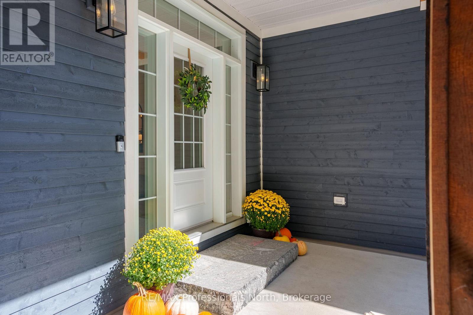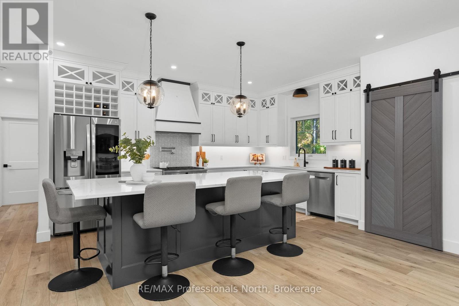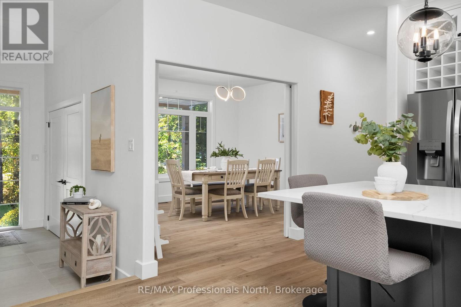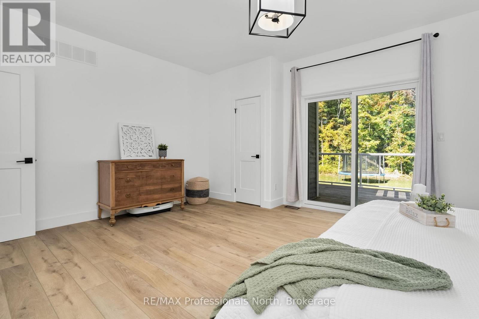 Welcome to Muskoka living at its best. Tucked into a quiet, no-through street within an exclusive enclave, this custom-built bungalow (just 3 years old) offers 2,200 sq. ft. of thoughtfully designed, one-level living on a private one-acre lot surrounded by mature trees.From the moment you walk in, the home feels bright, open, and connected to its surroundings. Large windows bring in natural light throughout the day while framing peaceful views of the forest beyond. With 9-ft ceilings and a well-planned layout, the space feels both expansive and comfortable. At the centre of the home is a beautifully crafted kitchen by Kas Kitchens, complete with quality finishes, a generous pantry, and an easy flow into the dining area and out to the deck, ideal for both everyday living and entertaining.The layout offers a great balance of privacy and function. The primary suite is set to one side of the home and features his-and-hers closets, while two additional bedrooms on the opposite side are perfect for family or guests. Built with efficiency and comfort in mind, the home includes a forced-air propane system, ICF foundation, spray-foam insulation, and an on-demand boiler. Radiant in-floor heating adds an extra level of comfort in the foyer, both tiled bathrooms, and the insulated three-car garage - making it a practical space year-round. The full, unfinished basement mirrors the main floor in size, with 9-ft ceilings and a cold cellar, offering excellent potential to expand. Set in a peaceful, nature-filled neighbourhood that still offers easy access to the highway, this location strikes a rare balance. Orillia is just 23 minutes away, Barrie 43 minutes, with Bracebridge and Gravenhurst also within easy reach.Whether you're looking for a full-time home or a Muskoka retreat, this property offers space, privacy, and a lifestyle that's hard to match. (id:64974)