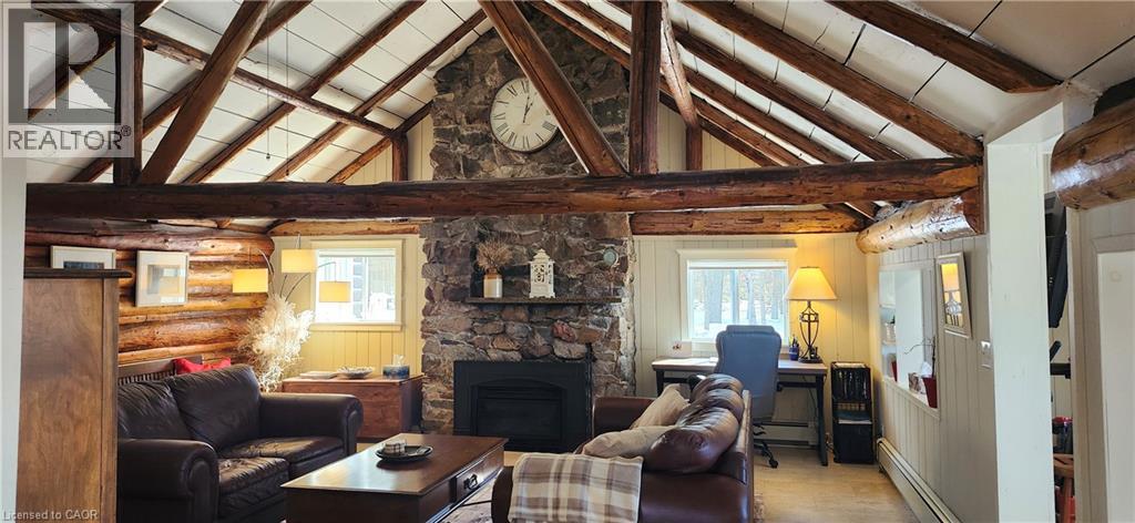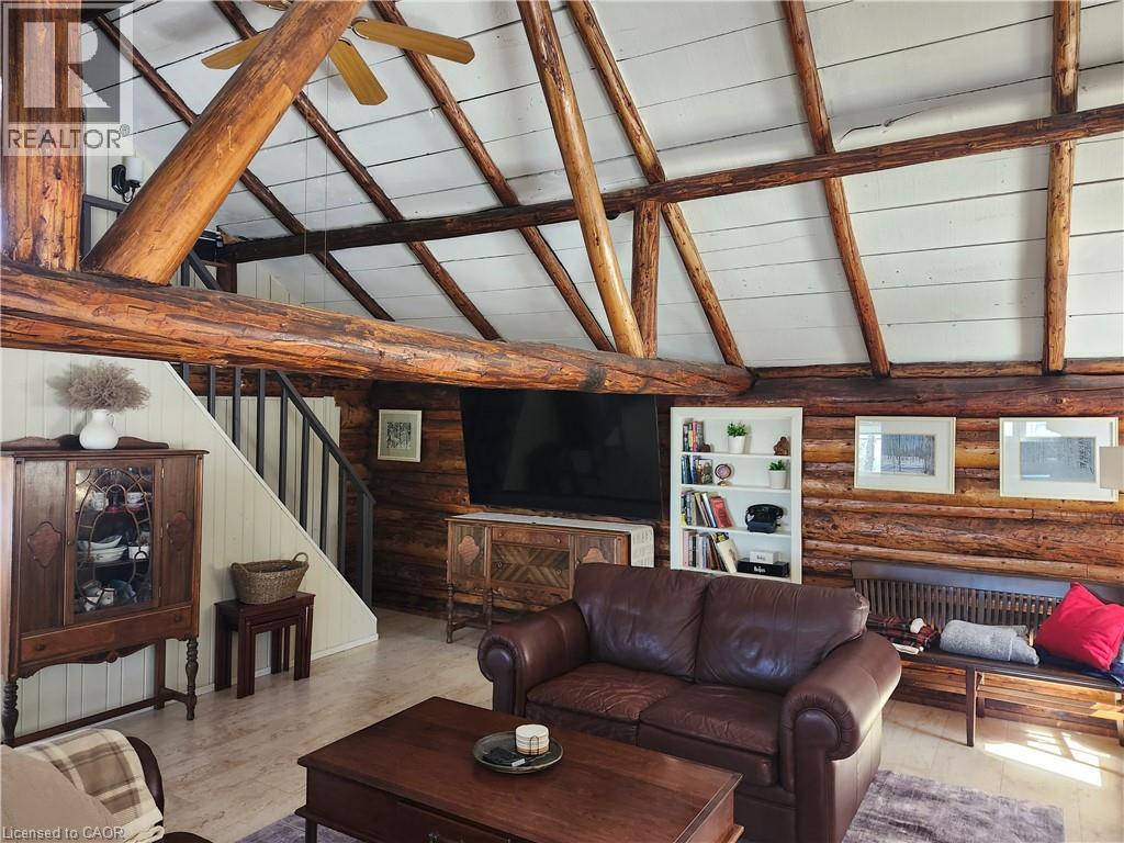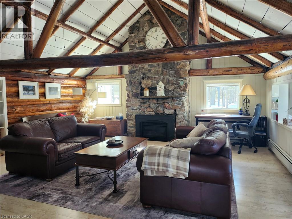 Welcome to 10366 Batchawana Bay! This extremely well cared for All season Log cabin has been updated and renovated (07') to make your new property a place of warm inviting comfort. This property sits across from the quiet warm shallow waters of Batchawana Bay. With direct unobstructed views and easy access to over 7Kms of one of Canada's top 10 beaches you can enjoy spectacular sunsets and beautiful moon rises all from your front porch. The beach is hard packed Sand and easy to walk along. The log cabin itself has a magnificent floor to ceiling Stone Fireplace with Propane gas Insert. A large primary bedroom and large ensuite ensure owner creature comforts are cared for including Radiant In-floor heating. Radiant in-floor heating is also in Bedroom #2 and the entire basement. A 200Amp service is there to ensure you wont be caught short on any hobbies or projects. Towards the back of the property is a massive garage with 2 10' automatic doors. The concrete base is 8 thick to allow for a potential car hoist if required. The outbuilding (10x14) next to the home can be an office/indoor hot tub or an additional bedroom complete with its own propane heater. A survey is available and the entire property has been staked. The metal roof will give you peace of mind during the winter season. A screened in porch (10x14) is set up just outside the primary bedroom. This home is very well situated only 30-40 minutes from city shopping, dining, and a modern hospital. The High-speed internet access ensures real world connectivity making this an ideal home across from Lake Superior... The word's largest freshwater Lake. (id:64974)