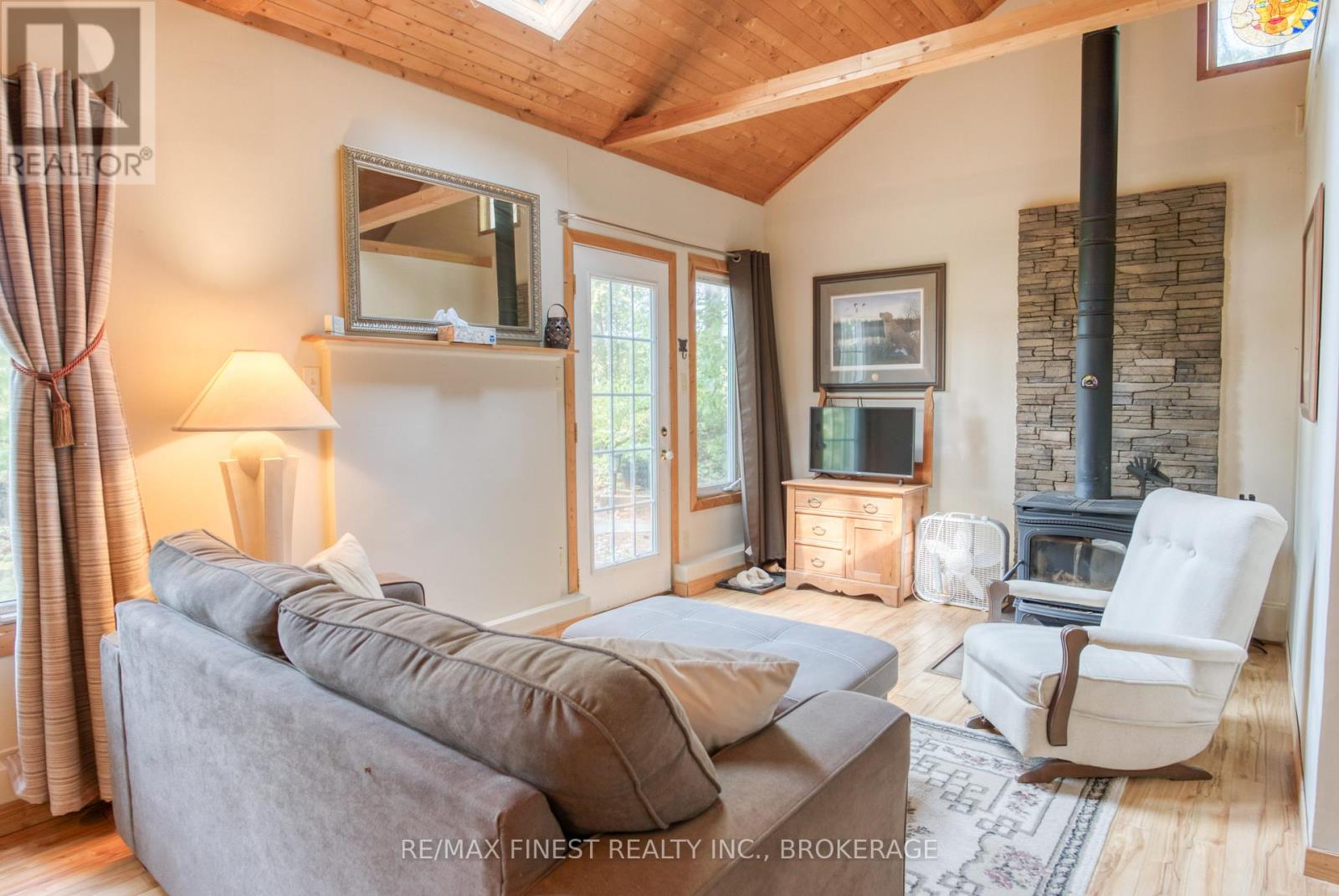 Set on peaceful Twin Lake along the historic K & P trail, this charming off-grid cottage promises tranquility and a true escape to nature just one hour from Kingston. The cottage features two bedrooms, a vaulted ceiling with a skylight that makes the open living area feel bright and spacious. The cottage has a propane fridge, propane fueled style woodstove, cooking stove, and hot water tank. The gray water leads to a French well under the driveway and the toilet is composting. Enjoy eco-friendly living with all the essentials, as the sale includes most furnishings and kitchen appliances for a turnkey move-in. There is even a newer 9 x 11 shed for bikes and water toys. Step outside to the hillside gazebo perfect for morning coffee or evening cocktails while the private dock invites you to fish, swim, or launch your kayak into waters renowned for excellent bass fishing. A paddle boat and small fishing boat are included. Alternately, the property's serene setting is ideal for outdoor trail enthusiasts, with direct access to hiking, cycling, and wildlife watching along the K & P trail. Here, you can embrace the simple pleasures of lakeside living, where days are shaped by the rhythms of nature and every sunset is an invitation to unwind. Whether you're seeking a quiet weekend retreat or a base for adventure, this ready-to-enjoy cottage offers comfort, character, and lasting memories by the water. Power equipment included in the price. Call, text, or email for additional details. (id:64974)