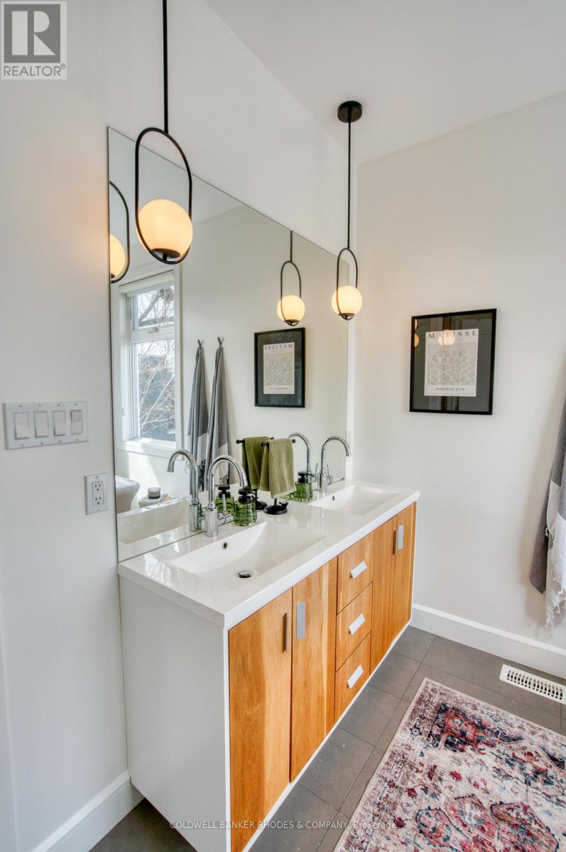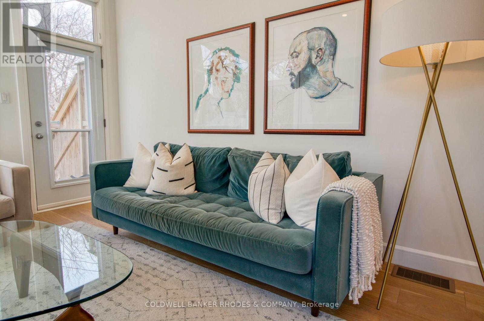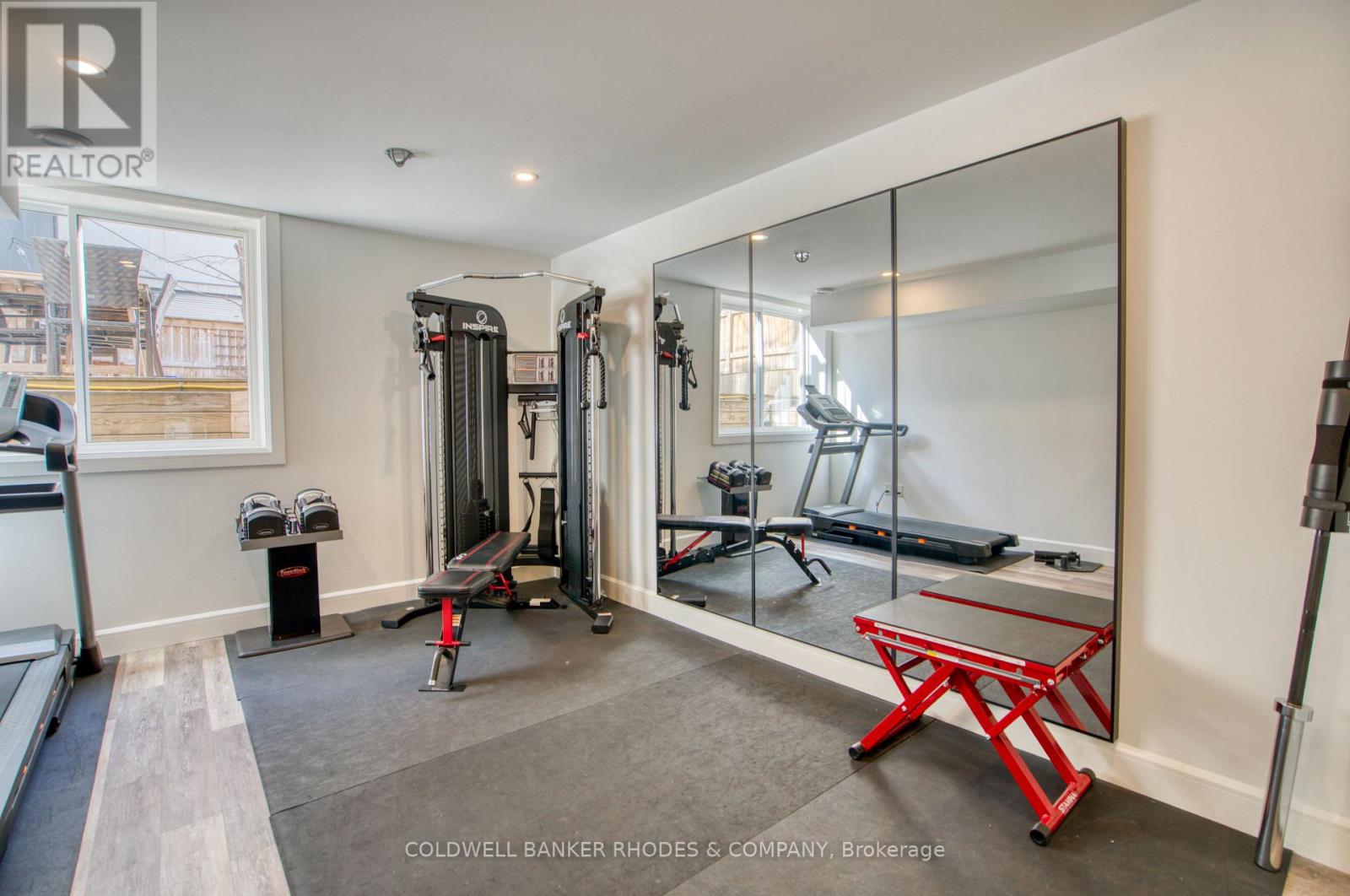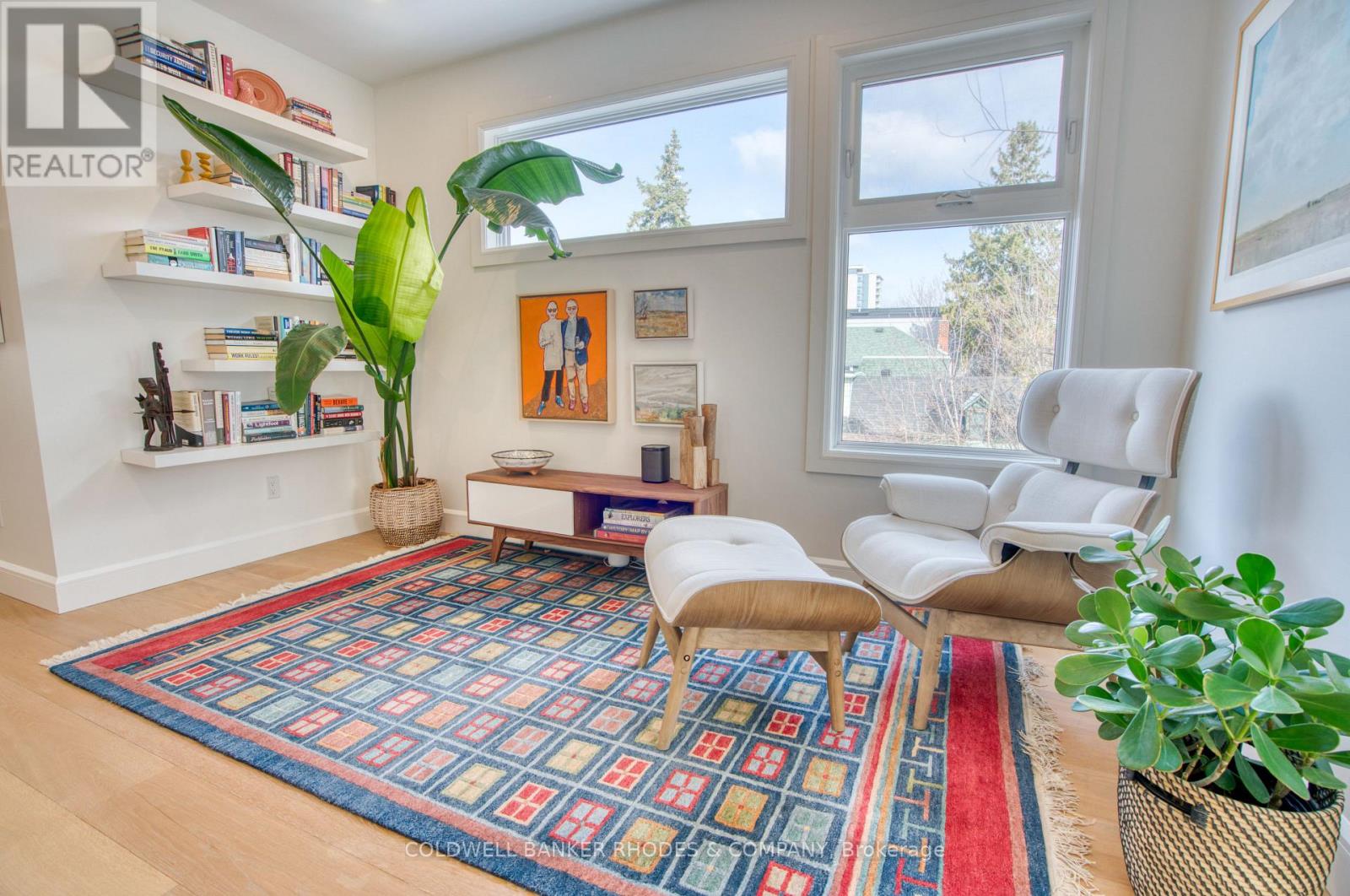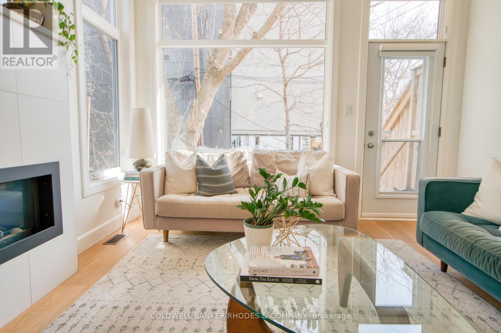 Discover this spacious 1,800+ sq. ft. semi-detached home, ideally situated in the vibrant Hintonburg neighborhood. This beautifully designed residence boasts a chef-inspired kitchen with a breakfast bar, gas stove, and stainless steel appliances, seamlessly connecting to the dining area with a custom built-in banquette. The inviting living room features a gas fireplace and direct access to the fully fenced rear deck and patio, complete with a convenient gas BBQ hookup-perfect for outdoor entertaining. The home exudes brightness and airiness, enhanced by nearly 10-foot ceilings, abundant windows, and light oak plank flooring that create a welcoming atmosphere throughout. Ascend the striking open-riser staircase to the second floor, where you'll find a versatile open den, two spacious bedrooms, laundry, and a full 4-piece bathroom. The entire third floor is dedicated to a luxurious primary suite featuring high ceilings, an oversized walk-in closet and an indulgent 5-piece ensuite, complete with a walk-in shower, deep soaker tub, double sinks, and elegant ceramic tile finishes. Step out onto your private third-floor deck for picturesque treetop views of the city. The finished basement provides additional living space with a bright exercise room highlighted by a large window and built-in storage-perfect for a home gym, theater, or family room. Hintonburg is a remarkable neighborhood where everything you need is within reach. Enjoy a diverse selection of restaurants, bustling coffee culture, fresh produce from Parkdale Market, and easy access to downtown, the Ottawa River, and Kichi Zibi Mikan. Experience the best of urban living in this highly sought-after Ottawa community! (id:64974)