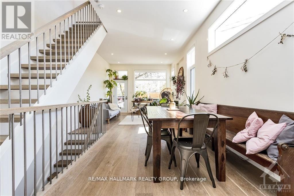 Short term executive rental. Experience elevated urban living in this stunning three-storey semi-detached home, ideally located in the heart of Hintonburg- one of the city's most vibrant, walkable neighbourhoods known for its cafés, boutiques, and dining scene. This show-stopping residence offers a thoughtfully designed open-concept main floor, perfect for both entertaining and everyday comfort. The chef-inspired kitchen anchors the space, flowing seamlessly into the dining area and an inviting sitting area with direct access to the backyard. A convenient powder room completes this level. Engineered white oak hardwood floors and expansive windows fill the home with natural light, creating a warm yet refined atmosphere throughout the top three levels. The second floor features a versatile loft ideal for a workspace or reading nook, along with in-suite laundry, a full bathroom, and two generously sized bedrooms positioned on opposite ends for privacy. Occupying the entire third floor, the luxurious primary suite is a true private retreat. Enjoy a king-sized bedroom, spa-like ensuite with a stand-alone soaker tub and separate shower, a large walk-in closet, and exclusive access to a private rooftop terrace-perfect for morning coffee or evening relaxation. The fully finished basement adds valuable living space, complete with a third full bathroom and ample storage. With its spacious layout and multiple flexible areas, this home is exceptionally well-suited for working from home or extended stays. Outside, the fully fenced backyard provides a private setting for dining al fresco and summer entertaining. A rare offering that combines modern luxury, exceptional space, and an unbeatable location-this Hintonburg home delivers a premium short-term rental experience. (id:64974)