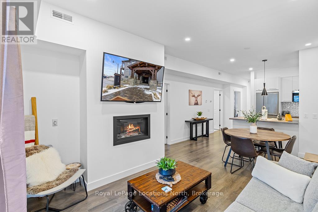 Welcome to Mountain House, where comfort meets convenience in this beautifully furnished 2-bedroom, 2-bathroom ground floor condo located in the Encore Building. Available for a SPRING or SUMMER SEASONAL LEASE. This fully equipped suite offers a modern kitchen with appliances and everything you need for your stay, along with luxurious bedding & towels. You'll appreciate the convenience of in-suite laundry. Relax by the cozy gas fireplace or step outside to your private patio, complete with a gas BBQ. This stylish unit includes designated parking for one vehicle, plus visitor parking is available. Just a short drive to Blue Mountain Village and minutes from downtown Collingwood, the location is ideal for both adventure and relaxation. Residents have access to the jewel of Mountain House Zephyr Springs, a private spa-inspired amenity area featuring year around outdoor pools and a tranquil space to unwind right outside your door. This is four-season living at its finest. Length of Term is negotiable (must be over 30 days) Utilities extra (id:64974)