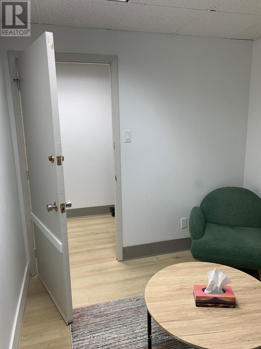 Located one block from Talbot Street in downtown St. Thomas, this 250 square foot space is well appointed. Ideal for the single entrepreneur. The unit has 2 8 foot x 10 foot office and a waiting area. The building has been totally updated with newer HVAC units, lighting, men's and women's handicapped bathrooms. Please note $650.00 per month includes all common area fees, heating, hydro and air conditioning. HST is in addition to the monthly rent. (id:64974)