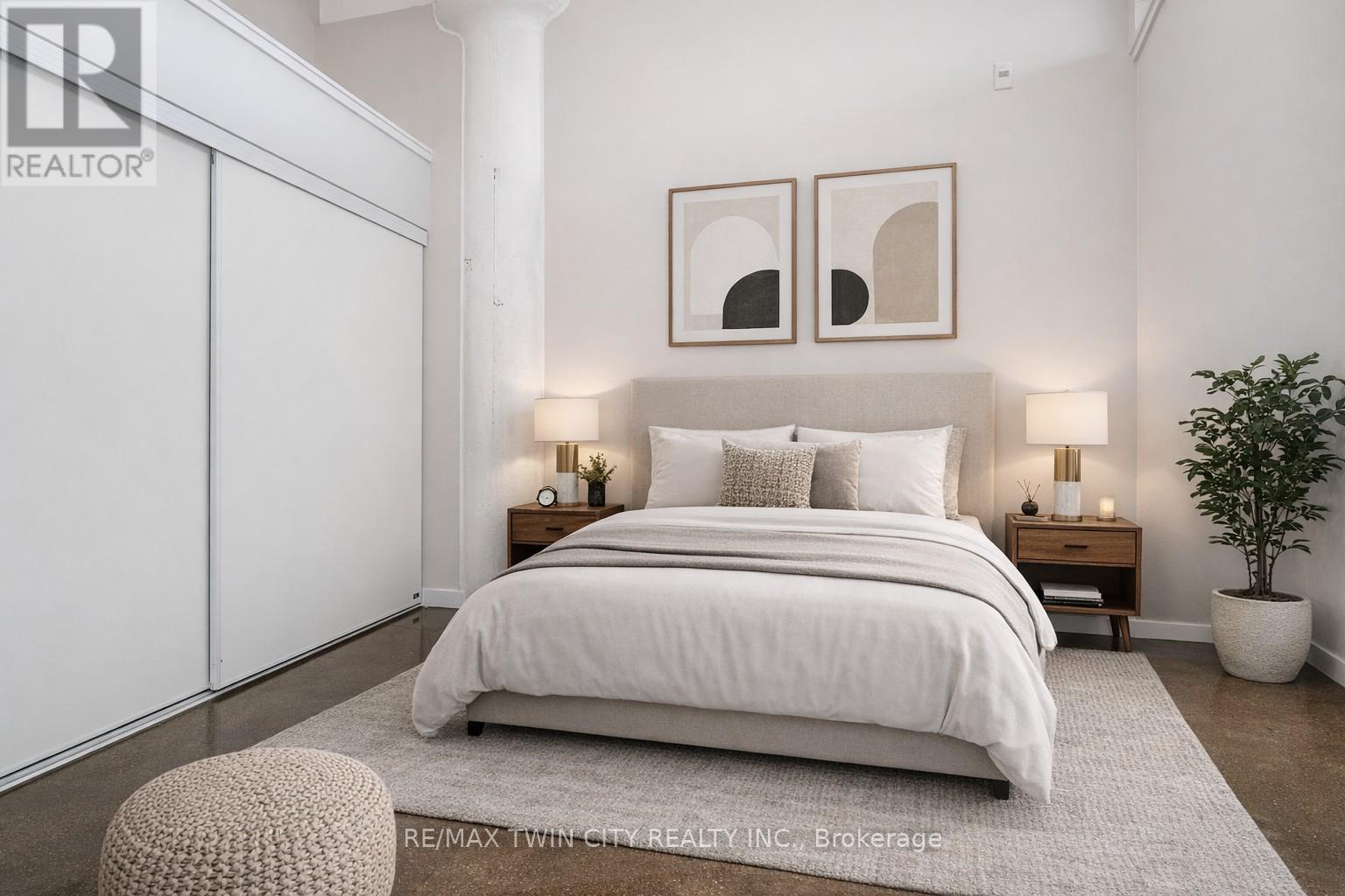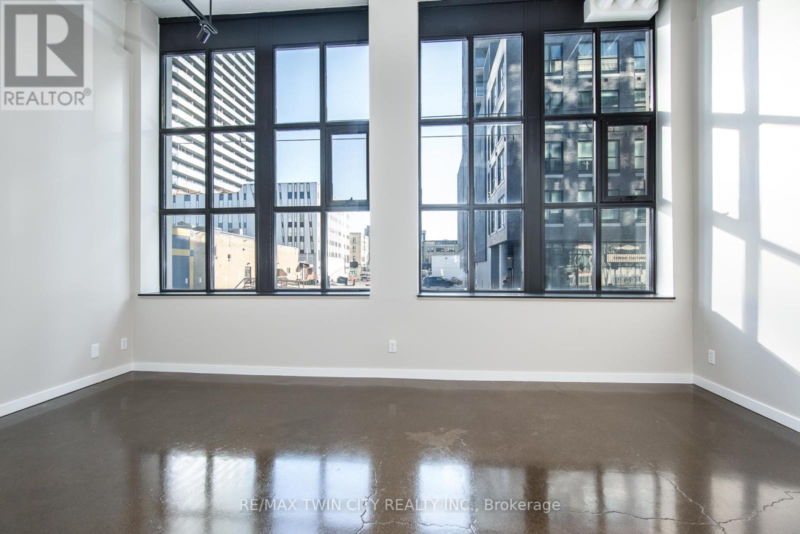 Seize this rare opportunity to own a stunning, move-in ready unit in the highly coveted Kaufman Lofts, ideally positioned in the vibrant core of downtown Kitchener. Located directly across from Google and just steps to the LRT, Communitech, the School of Art, and the Tannery, this unbeatable address places shopping, dining, universities, and quick expressway access right at your doorstep. This bright and spacious one-bedroom loft showcases authentic industrial character paired with contemporary comfort. Soaring 13-foot ceilings, oversized windows that flood the space with natural light, polished concrete floors, exposed duct-work, and original architectural details create a true warehouse-inspired aesthetic that simply cannot be replicated. The open-concept layout features a sleek, modern kitchen complete with brand-new appliances (fridge, stove, dishwasher, and microwave), while the washer/dryer combo has been updated in recent years. The generous bedroom offers a large closet with a convenient storage nook above. A brand-new, stylish 4-piece bathroom adds a fresh, contemporary touch and enhanced functionality. In addition to the in-suite laundry, the unit comes with one owned parking space, and a storage locker. With quick possession available, this truly move-in ready home offers exceptional value for buyers seeking character, convenience, and lifestyle in one of the city's most iconic buildings. Residents also enjoy premium amenities, including a rooftop terrace with BBQ area, party room, and bike storage. Don't miss your chance to own a piece of Kitchener's iconic loft living at an exceptional value. Schedule your private showing today and experience this remarkable home for yourself. (id:64974)
