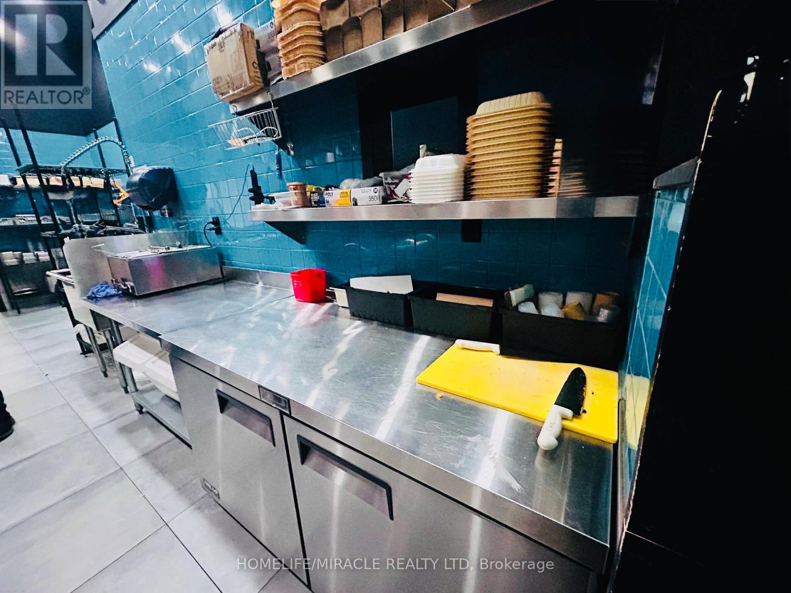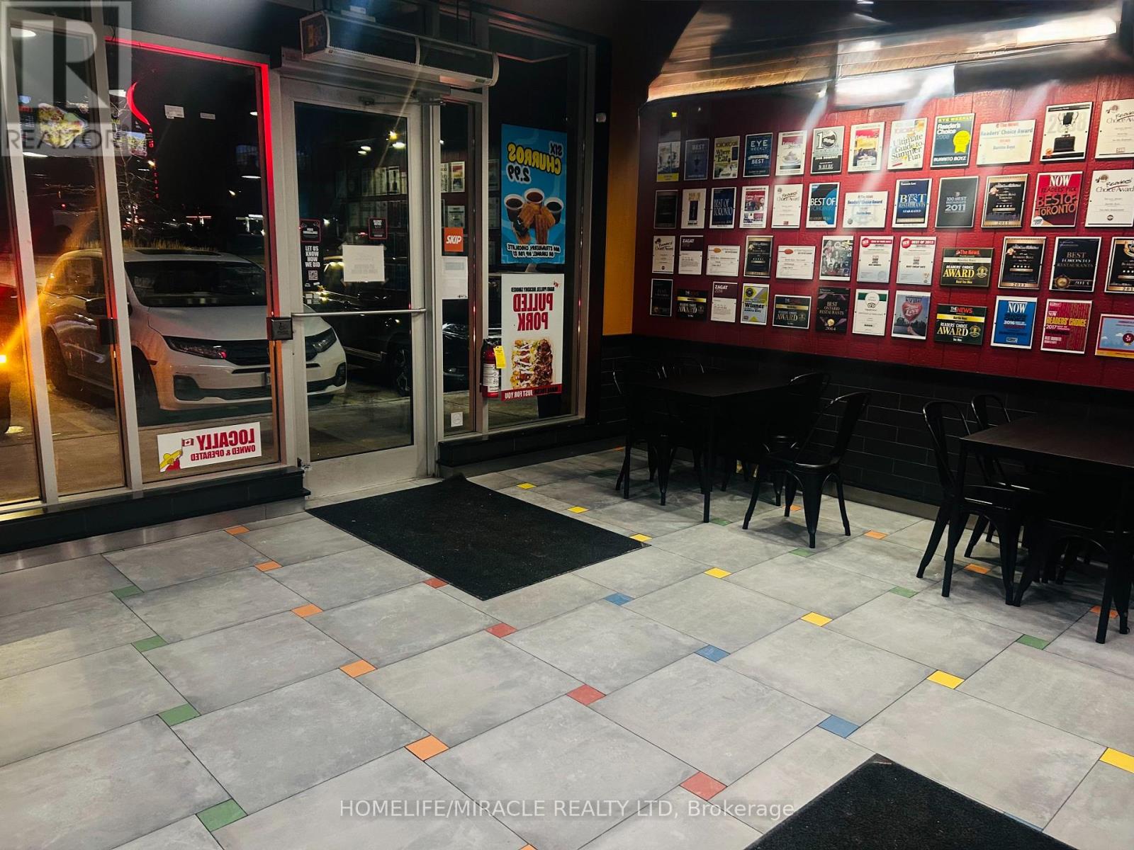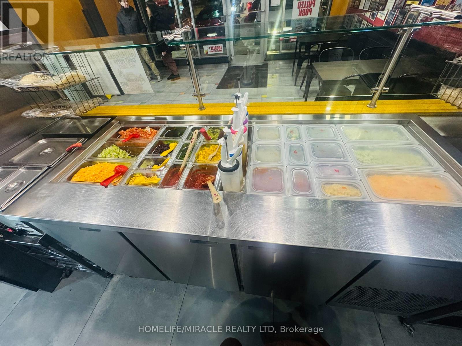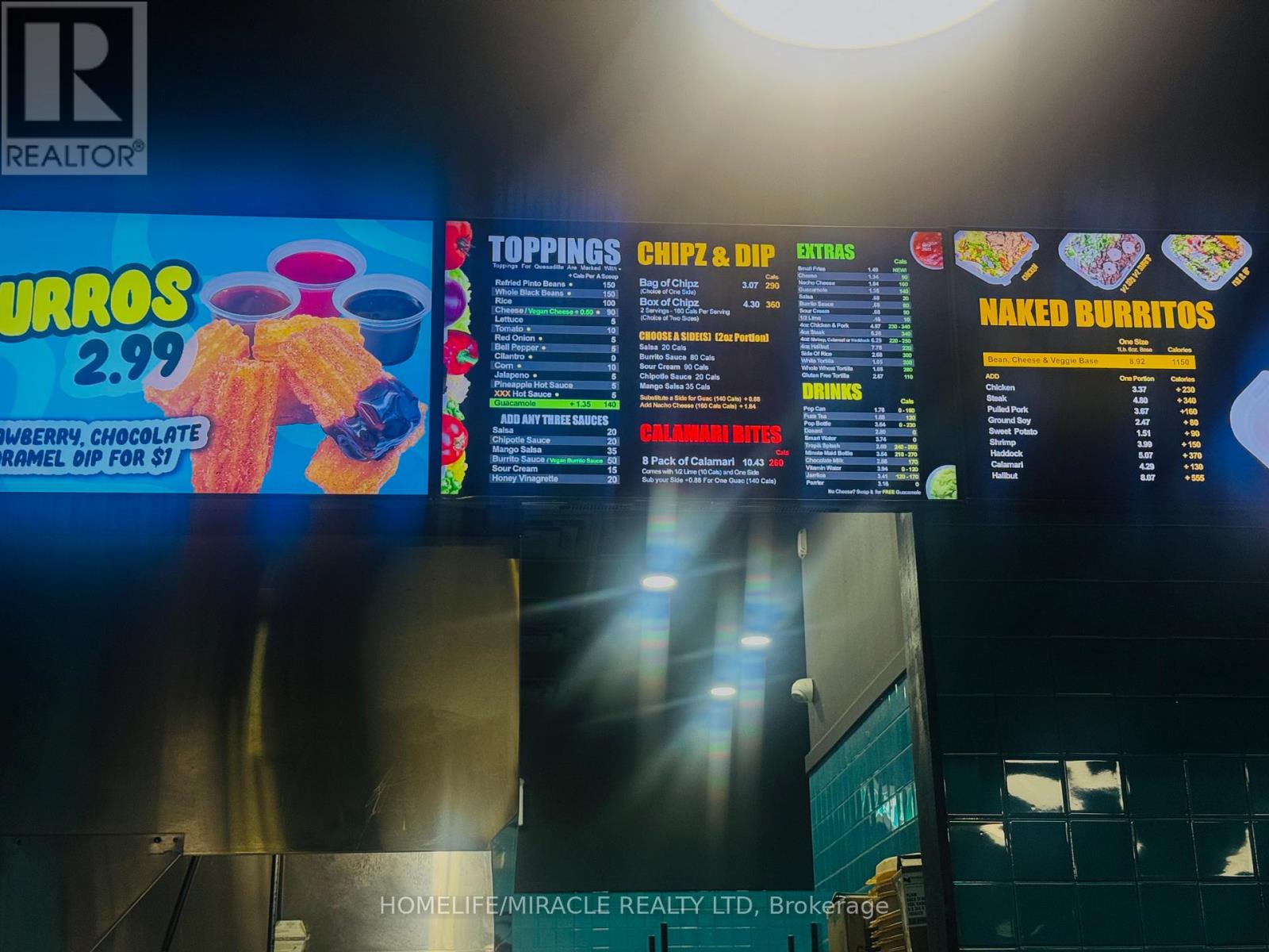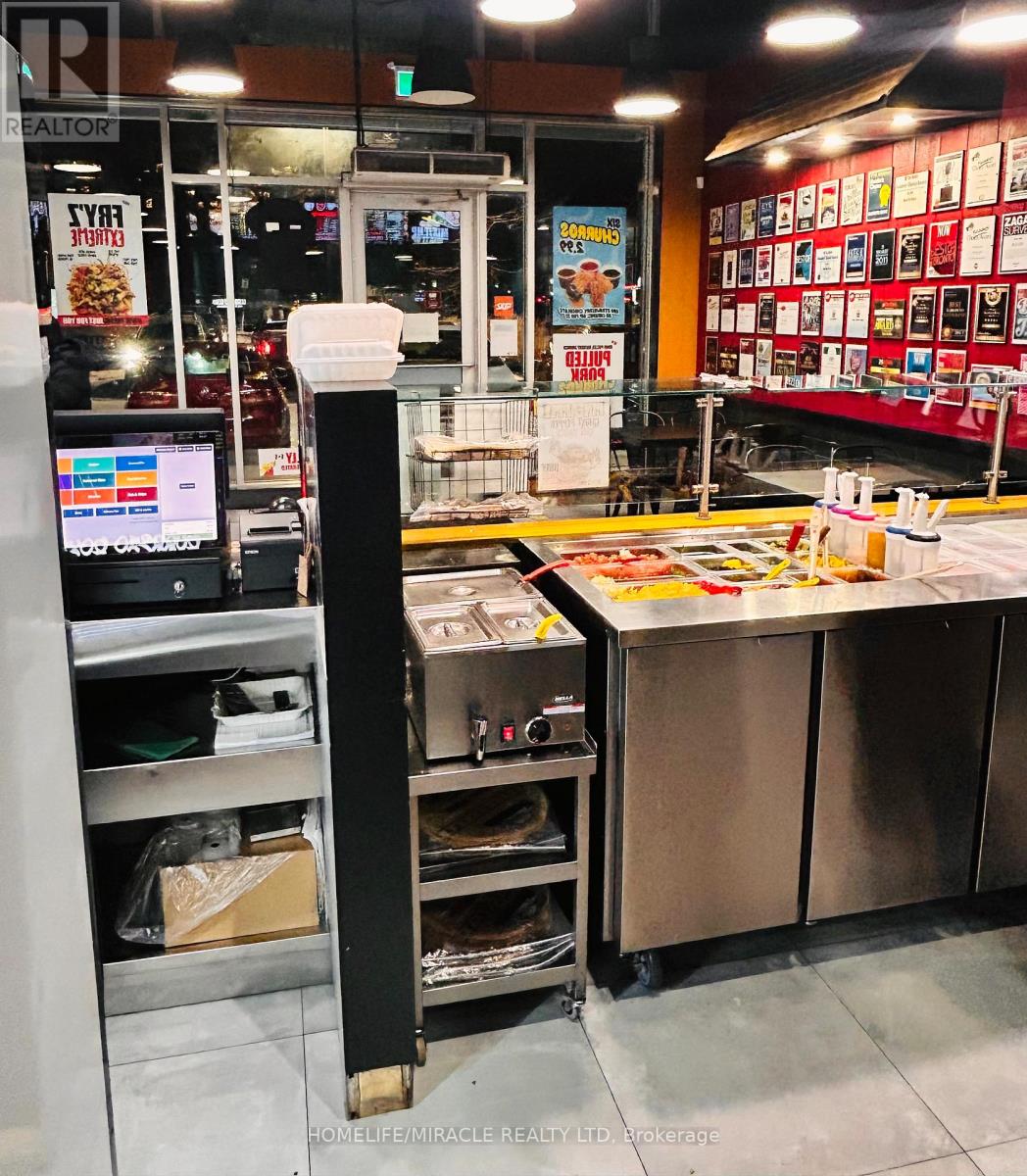 Discover an exceptional opportunity to own a high-traffic Burrito Boyz franchise in one of Ajax's most active commercial pockets. Perfectly placed at Rossland Rd E & Salem Rd N, this location is surrounded by nonstop activity from nearby childcare centres, corporate offices, Amazon Fulfillment Centre staff, the Ajax Fire Department, schools, and dense residential communities. The beautifully updated 1,279 sq. ft. unit offers strong curb appeal, excellent visibility, and consistent daily foot traffic-ideal for a thriving quick-service restaurant. With affordable rent ($3,943.58 + $2,250.48 TMI, including pylon signage and water), this setup delivers strong value in a premium corridor. A steady flow of loyal customers, strong online presence, and established delivery partnerships make operations smooth and profitable from day one. Surrounded by major brands and a growing population, this location is perfectly positioned for continued growth-plus additional upside from catering, local marketing, and community outreach. A modern, well-run franchise in a booming area... buyers looking for a ready-to-operate, income-producing business will love this one. (id:64974)