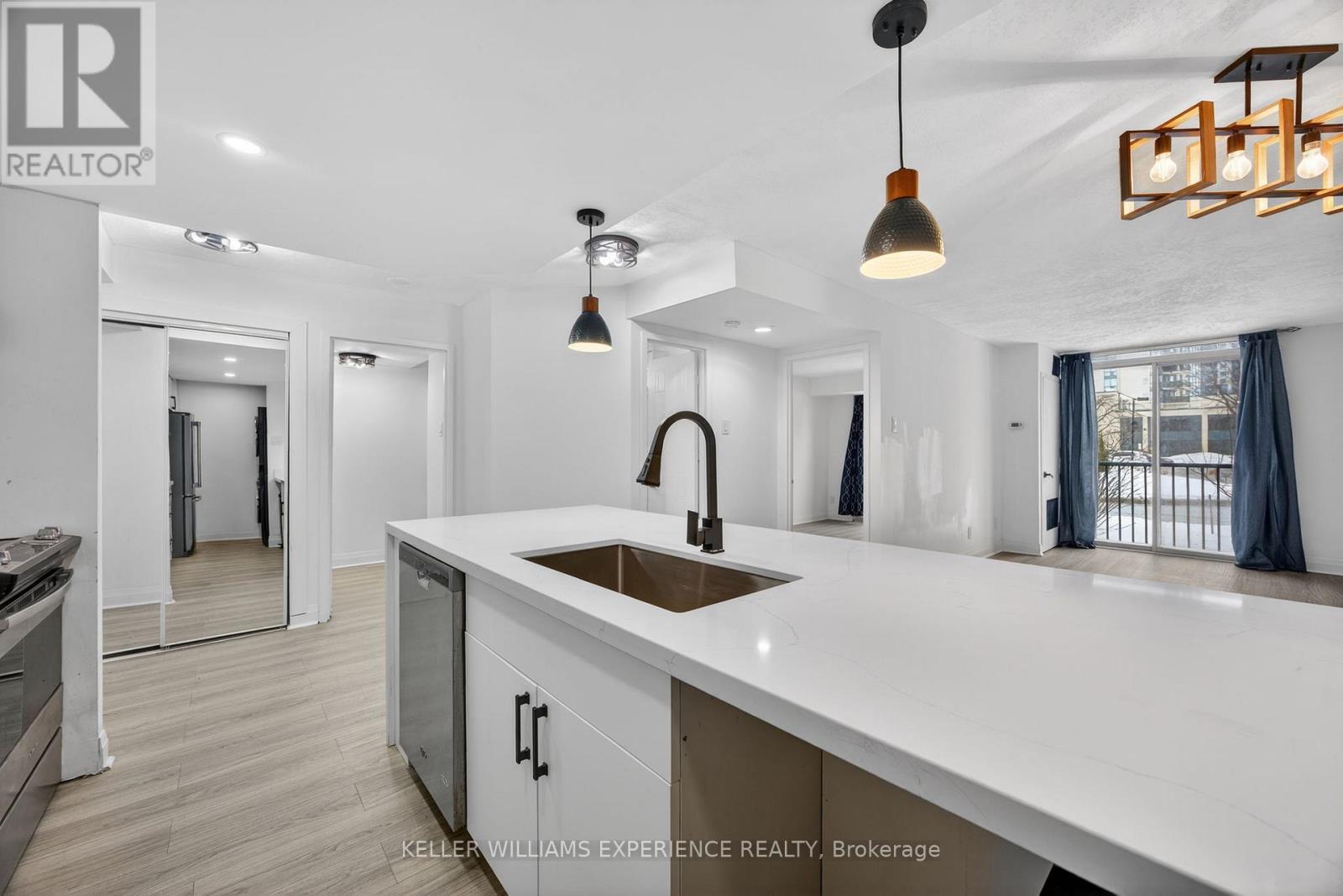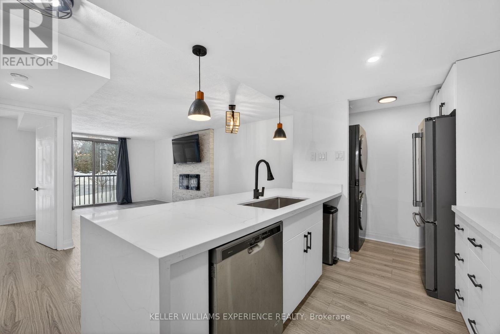 Welcome to Suite 104 at 75 Ellen Street in Barrie's sought-after Marina Bay Condominiums. This bright, newly updated 900+ sq ft ground-floor unit offers 2 bedrooms and 2 bathrooms with a spacious open-concept layout ideal for entertaining. The condo has been fully remodelled, featuring a brand-new kitchen, newer appliances, and in-suite laundry.The generous primary bedroom includes a large walk-in closet and a private 5-piece ensuite, offering both comfort and functionality.Enjoy Barrie's vibrant waterfront lifestyle just steps from your door - lakeside trails, parks, restaurants, and downtown festivals. Conveniently located within walking distance to the Allandale GO Station and offering quick access to Highway 400 for commuters.Additional highlights include underground parking, a pet-friendly building, and exceptional amenities such as an indoor pool, sauna, hot tub, fitness centre, party room, and games room.Whether you're looking to downsize, invest, or purchase your first home, this move-in-ready ground-floor suite with covered parking and unbeatable waterfront access is an opportunity not to be missed. (id:64974)