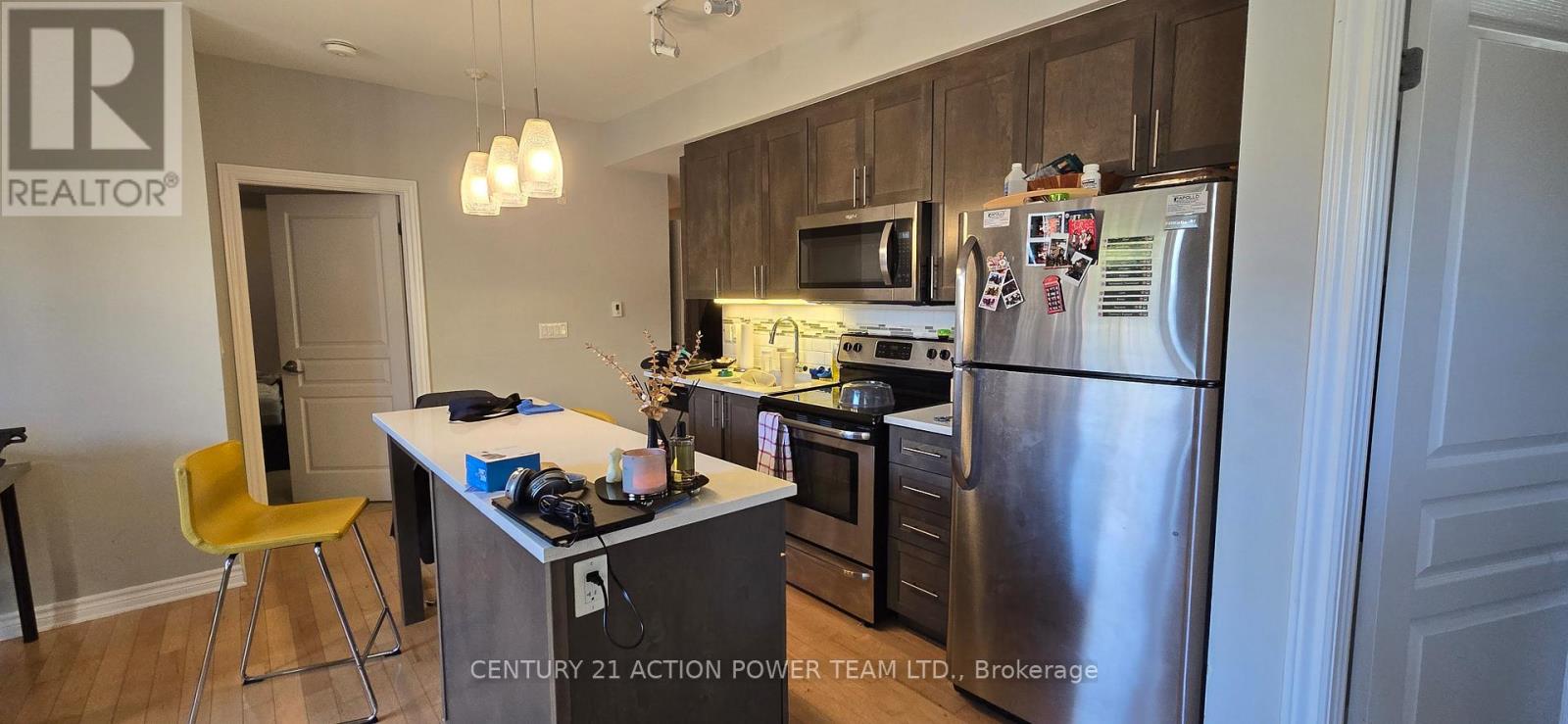Prime location !!! This modern two bedroom two bathroom corner unit in the Brownstones at Cyrville is just over 800 square feet, has updated finishes including quartz countertop, hardwood floors , eat on kitchen island, stainless steel appliances ample storage, in unit laundry, three-piece ensuite bathroom in the primary, living room and office/dining area which opens to private closed in balcony. Building has a separate locker, elevator and bike room. Pet friendly, clean and well managed. Conveniently located close to everything, steps from the o-train, minutes to downtown , close to coffee shops, St Laurent Shopping Center, Gloucester Center, movie theater, Costco, a wide variety of restaurants and parks. Green Space just out front of the building. Move in and enjoy or invest and profit. (id:64974)