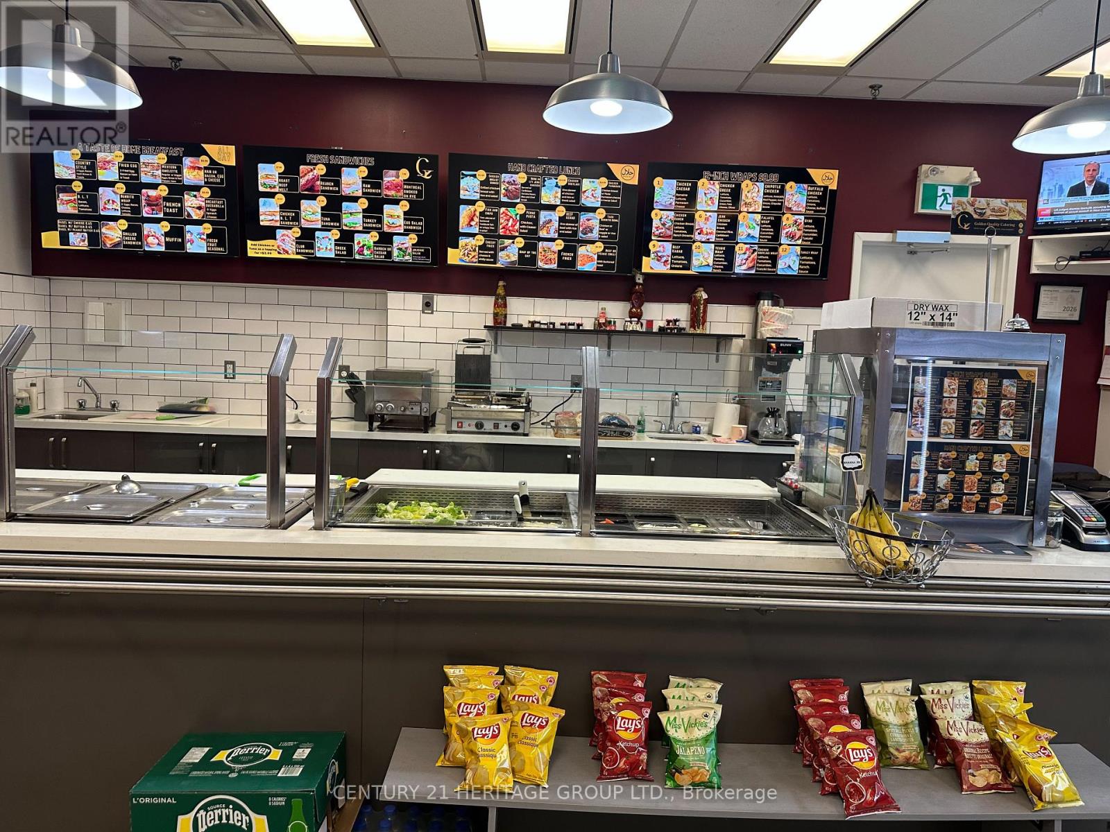 Turn-key business in a prime location in the City of Markham, situated within a rapidly developing commercial office district. This well-established cafeteria and restaurant is located inside a prominent office building and features a full commercial kitchen built in 2018. Equipment is in excellent condition and includes an exhaust system and walk-in cooler. The business offers a unique menu and services most office buildings in the surrounding area. Currently operating 5 days per week during office hours, with additional potential for after-hours service. Provides both take-out and full dine-in cafeteria and restaurant options. Low rent secured until 2028, with an option to renew for an additional 5 years. Convenient access to major highways, including Hwy 7 and Hwy 404. (id:64974)