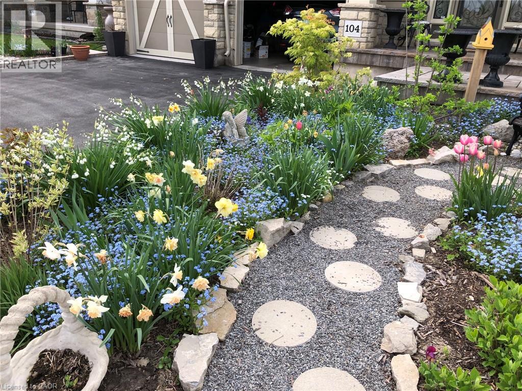 Experience refined modern living at 104 Anastasia Boulevard in Smithville. Constructed in 2017 and thoughtfully enhanced with over $120,000 in premium upgrades since its acquisition in December of that year, this exceptional bungalow offers a seamless blend of contemporary design and everyday functionality. The expansive 1,727 sqft. main level is distinguished by 9-foot ceilings, creating a bright and welcoming atmosphere throughout. At its heart lies an open-concept living space anchored by a chef-inspired kitchen, complete with Cambria quartz countertops, floor-to-ceiling cabinetry with elegant decorative detailing, a central island, pantry, and soft-close drawers and cupboards. Sophisticated ceramic plank flooring extends across the entire main floor, ensuring a carpet-free interior, while both main-floor bathrooms-including the luxurious five-piece ensuite off the primary bedroom-feature matching Cambria quartz finishes. The professionally finished lower level offers approximately 613 sqft of finished space including a generously sized bedroom with large egress windows that invite abundant natural light, along with a stylish three-piece bathroom-ideal for guests, extended family, or a private home office. An additional 1,100 sqft. of unfinished space presents a rare opportunity to create a custom living area, fitness studio, or additional storage tailored to your needs. Outdoors, the property is equally impressive. The front and rear perennial gardens have garnered notable attention, having been featured in multiple publications and nominated for an award in September 2025. Inside, the seller has added thoughtful touches, including the conversion of the entry closet into an inviting reading nook or sitting area, complemented by a beautiful bay window that frames picturesque views of the meticulously landscaped front garden. (id:64974)