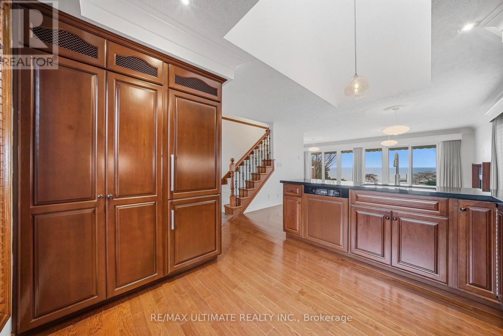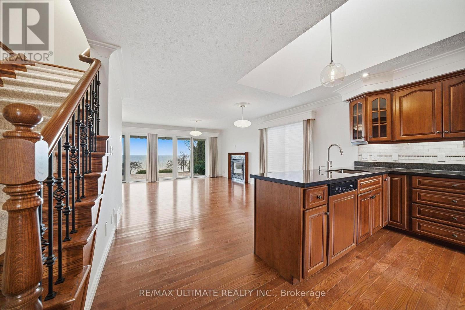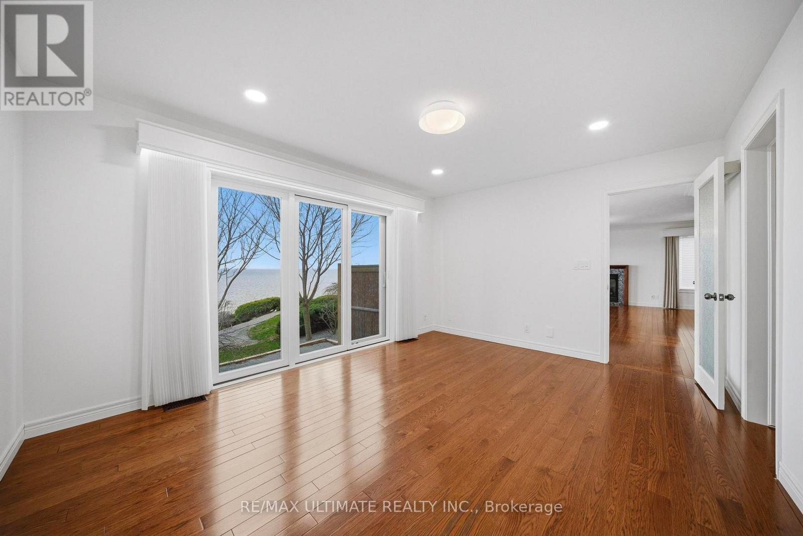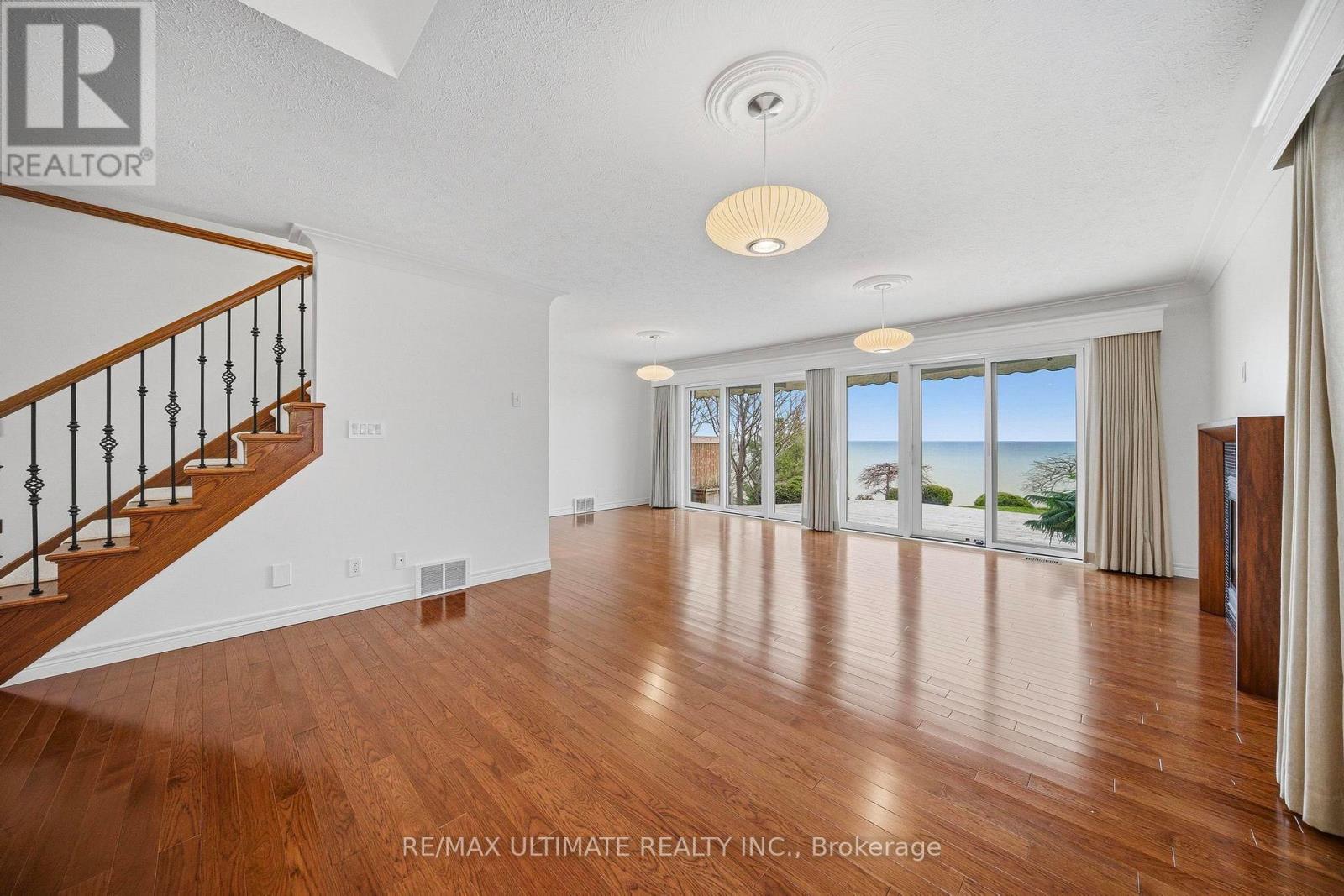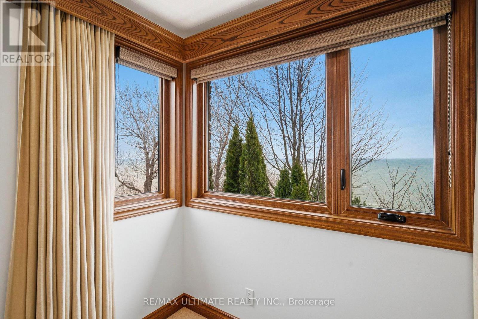 Welcome to this exceptional waterfront home in Port Dover, offering nearly 2,500 square feet of meticulously finished living space, all-day sun, and lake views from nearly every room. Situated on one of the most desirable waterfront lots on a quiet cul-de-sac, just a short walk to the beach, marina, and downtown, this custom-built three-bedroom, four-bathroom home features all bedrooms above grade, including a main-floor bedroom suite with lake views, an ensuite bath, and a walk-in closet. The main living areas are oriented toward the lake, with Pella sliding glass doors spanning the rear wall and opening to a private outdoor deck with a retractable awning, creating seamless indoor and outdoor living. The deck and lawn area sit on a rare flat portion of the backyard, created by the armour stone retaining wall. The kitchen features granite counters and built-in Miele appliances that blend seamlessly with the cherry wood cabinetry, accented by a vaulted ceiling. Hickory hardwood flooring runs throughout, complemented by a natural gas fireplace and a main-floor powder room. Upstairs, two bedrooms feature picture-perfect lake views from corner windows, along with custom wool carpeting for added comfort. A four-piece bathroom with in-floor heating and a skylight completes the upper level. The professionally finished basement features engineered hardwood flooring throughout, a laundry room with a Miele washer and dryer and built-in cabinetry, a three-piece bathroom, and a large recreation area. Spray foam insulation enhances overall comfort and efficiency. The two-car garage includes a Tesla charger, with a double-wide driveway providing parking for four cars. The landscaped grounds include cherry trees, Japanese maples, and mature cedars for privacy, along with armour stone and shoreline protection. Additional upgrades include a 200A electrical panel, Rinnai tankless water heater, sump pump, second-floor windows, Pella glass doors, and a metal roof with warranty. (id:64974)
