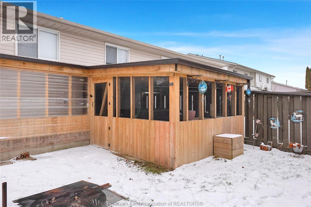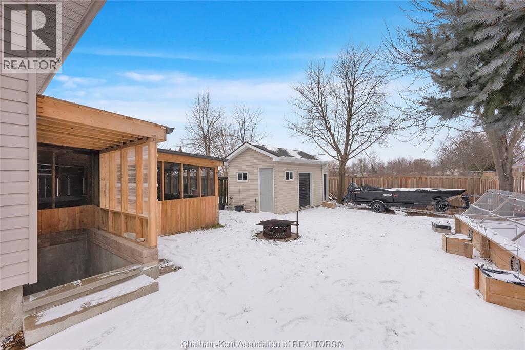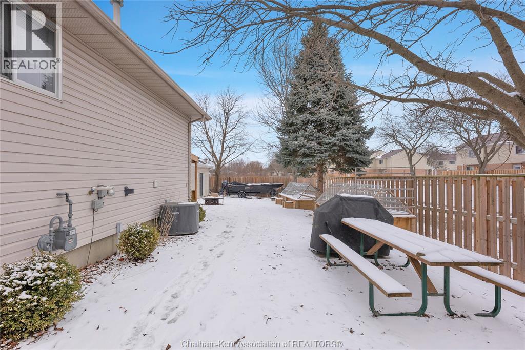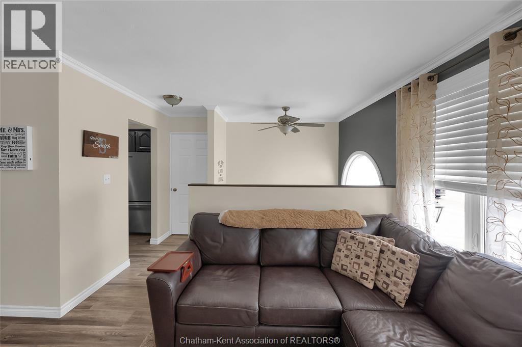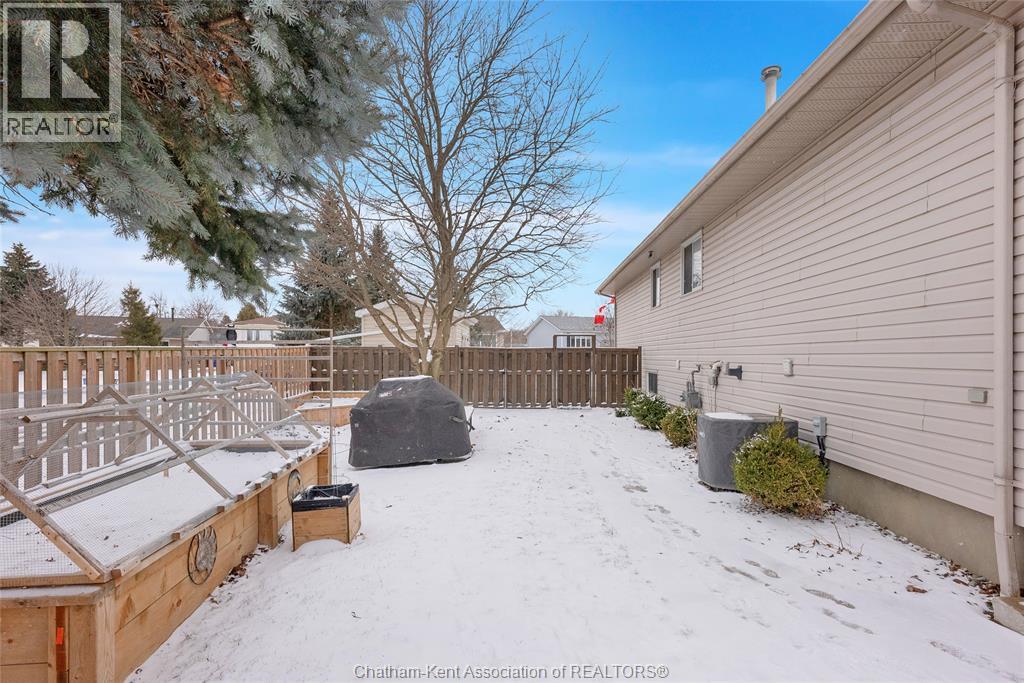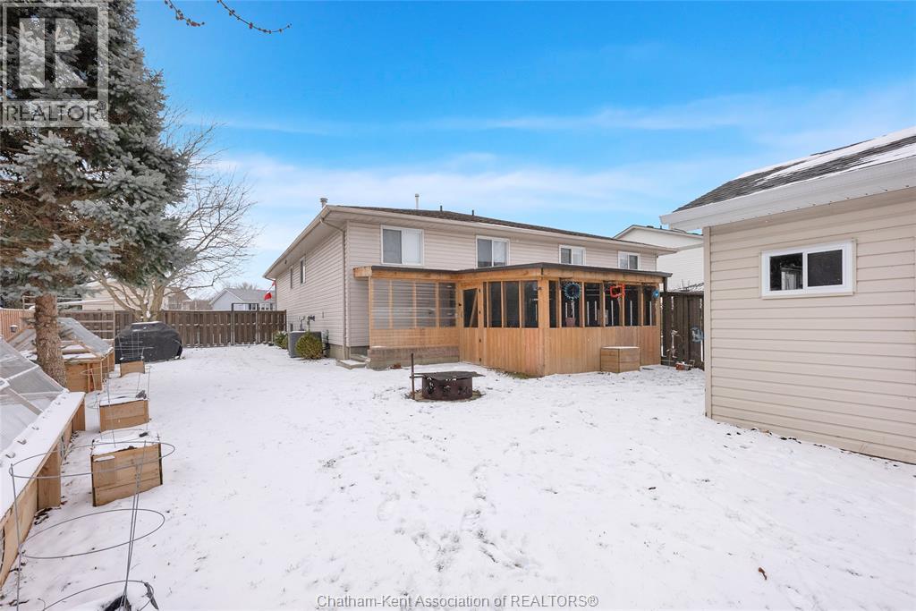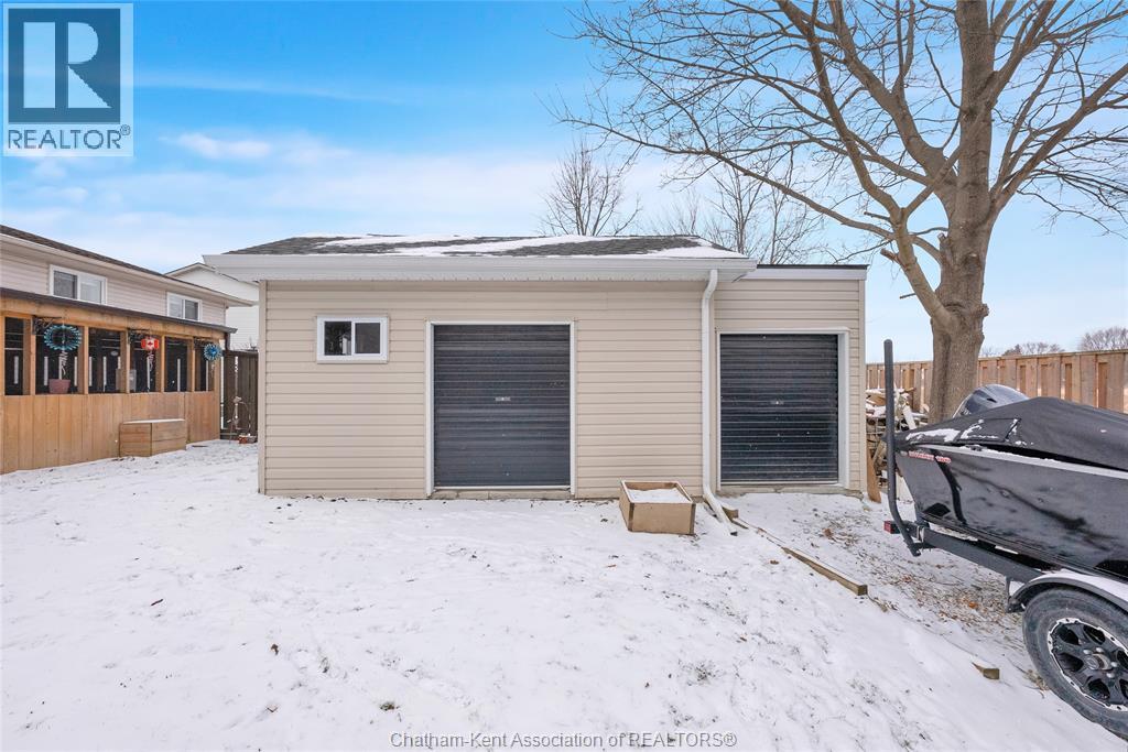 Hey House Hunter, welcome to this nicely updated 5 bedroom, 2 full bathroom, semi-detached gem in a desirable neighbourhood in Wallaceburg. This home is perfectly situated in a great location just a short walk from schools, parks, restaurants, and shopping. On the main level you’ll find a comfortable living room, nicely laid out kitchen with gas stove (could have electric stove instead), 3 good sized bedrooms and a full bathroom. On the lower level, there’s a spacious family room, 2 more bedrooms (one is currently outfitted for a hair salon), a full bathroom, and a great utility/storage area with a grade entrance out to the back yard. Speaking of the back yard, you’ll be happy to entertain in your easy-to-manage, fenced in yard which features raised garden beds, screened in gazebo with hot tub, and a 10×16 workshop with a 6×8 addition for your lawn care equipment. There’s plenty of parking in the neat and tidy concrete driveway (new in 2022) complete with large gate to pull through to the back if needed. There is also a large gate on the side of the property so getting your boat or trailer in the backyard is easily done. Updates include – flooring 2022, appliances 2020/21, furnace and a/c 2015, front windows, 2017, fence new in 2021, back shed new in 2022, owned hot water tank 2025. Roof was done in 2014. Don’t wait too long to book your appointment or this one will be SOLD! *gas fireplace in basement is not in working order and the current owners have never used it* (id:64974)