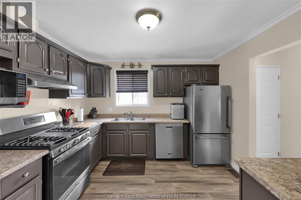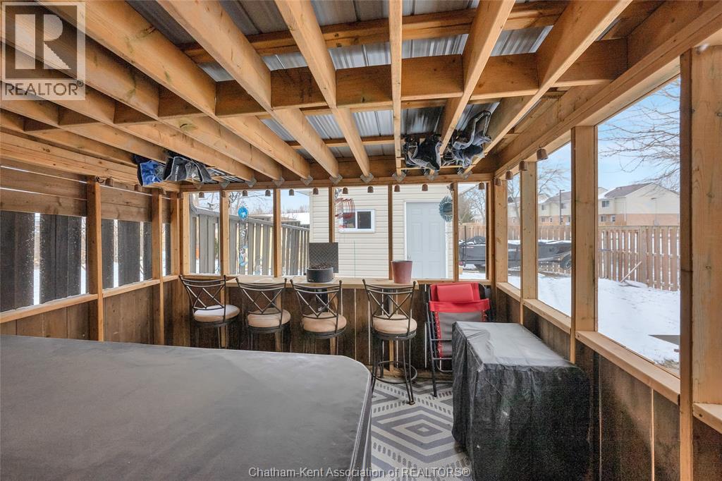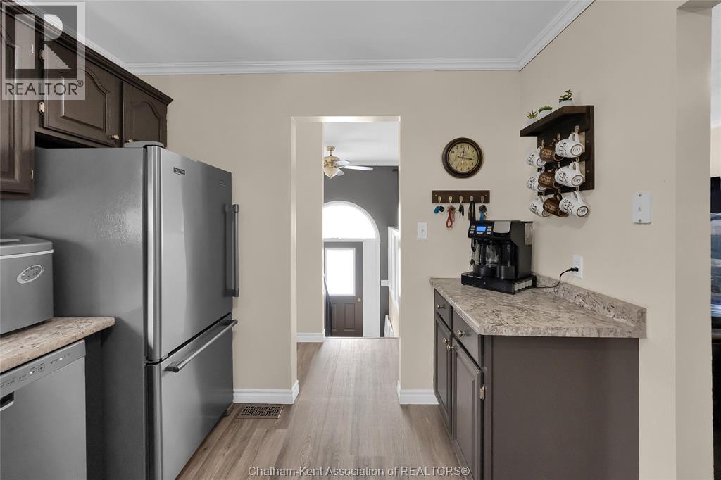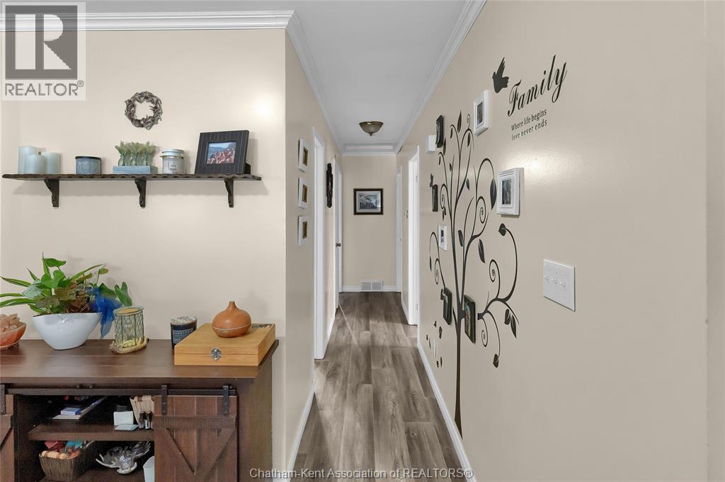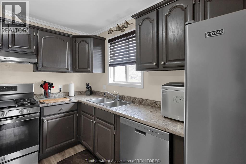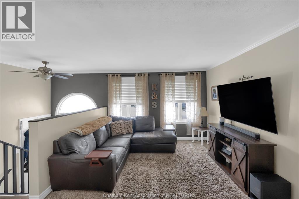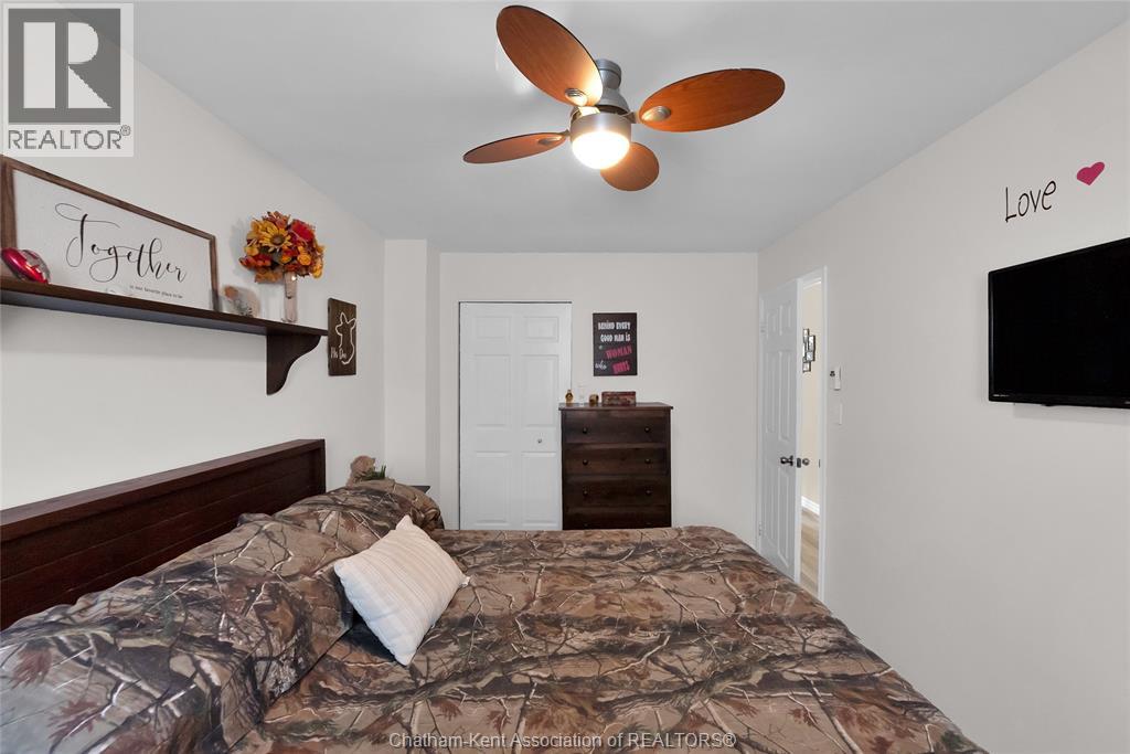 Hey House Hunter, welcome to this nicely updated 5 bedroom, 2 full bathroom, semi-detached gem in a desirable neighbourhood in Wallaceburg. This home is perfectly situated in a great location just a short walk from schools, parks, restaurants, and shopping. On the main level you’ll find a comfortable living room, nicely laid out kitchen with gas stove (could have electric stove instead), 3 good sized bedrooms and a full bathroom. On the lower level, there’s a spacious family room, 2 more bedrooms (one is currently outfitted for a hair salon), a full bathroom, and a great utility/storage area with a grade entrance out to the back yard. Speaking of the back yard, you’ll be happy to entertain in your easy-to-manage, fenced in yard which features raised garden beds, screened in gazebo with hot tub, and a 10×16 workshop with a 6×8 addition for your lawn care equipment. There’s plenty of parking in the neat and tidy concrete driveway (new in 2022) complete with large gate to pull through to the back if needed. There is also a large gate on the side of the property so getting your boat or trailer in the backyard is easily done. Updates include – flooring 2022, appliances 2020/21, furnace and a/c 2015, front windows, 2017, fence new in 2021, back shed new in 2022, owned hot water tank 2025. Roof was done in 2014. Don’t wait too long to book your appointment or this one will be SOLD! *gas fireplace in basement is not in working order and the current owners have never used it* (id:64974)