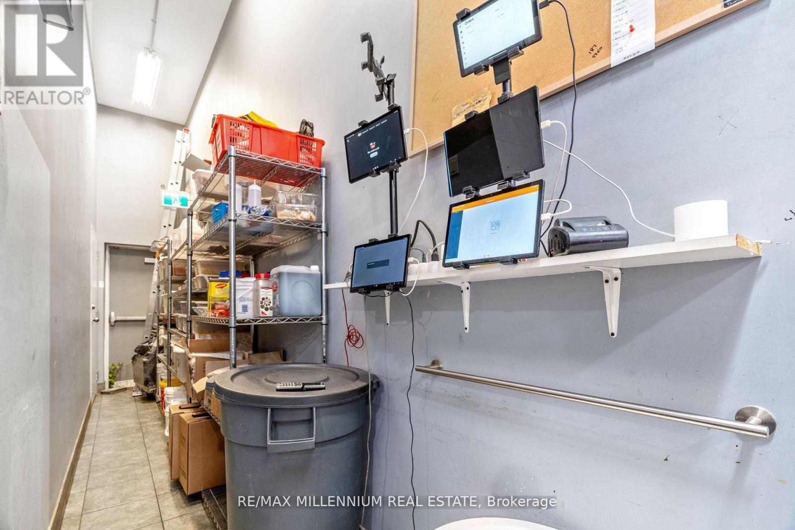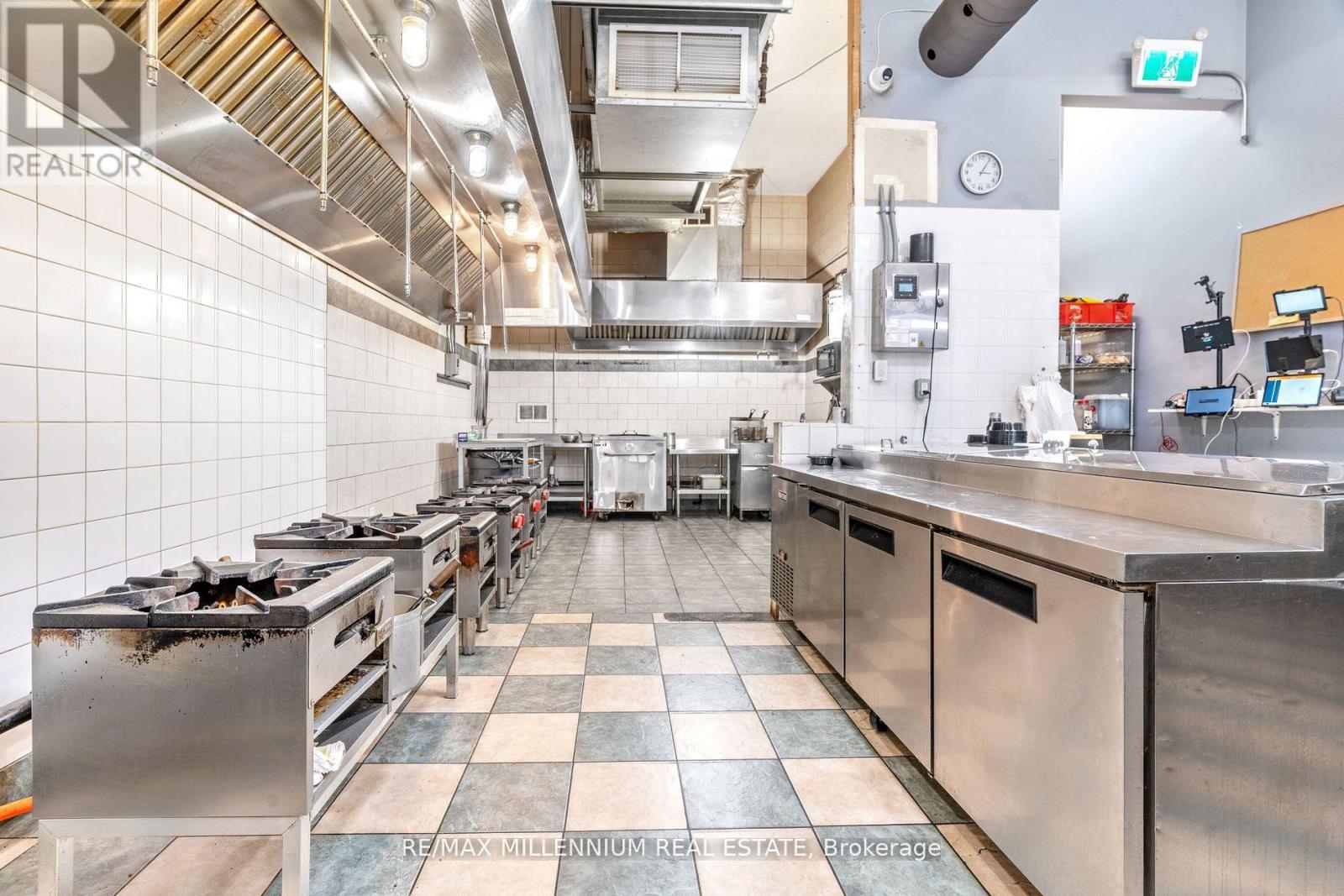Turnkey 1900 sq ft commercial kitchen available with lease secured to 2029. Outfitted withtop-grade equipment including fryer, dough mixer, fridge, multiple tandoors, freezer,dishwasher, prep tables, sinks, and more. Enhanced with 16-camera security, host desk, and 75"TV. Current rent $5,200 + HST (TMI $1,000). Perfect opportunity for caterers, restaurants, or food production businesses looking for a ready-to-go space. (id:64974)