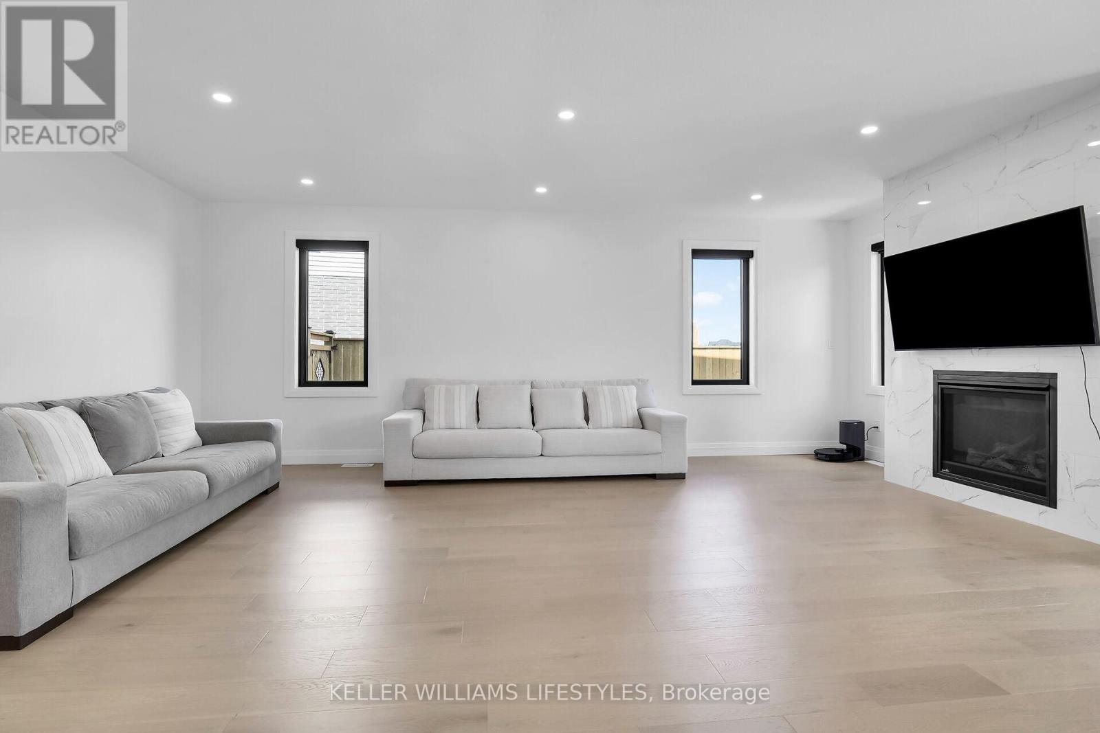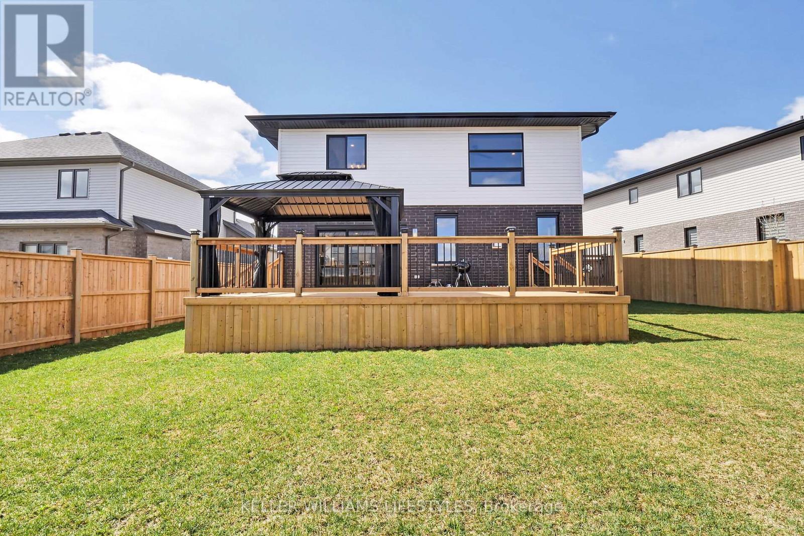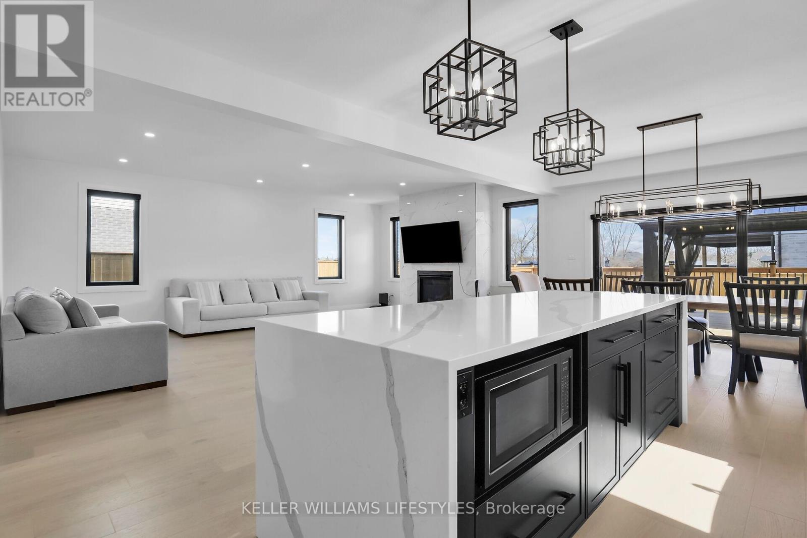 Introducing your ideal home in Kilworth, where luxury and comfort combine effortlessly. This stunning 4-bedroom, 3-bathroom property is packed with high-end upgrades, making it a dream come true for any homeowner. Step inside through the impressive double oak front doors and onto beautiful hardwood floors that stretch throughout the entire home. The spacious living areas are flooded with natural light, complemented by modern window frames. The 8' waterfall kitchen island, adorned with elegant quartz countertops, and a wall mounted pot filler faucet provides ample space for culinary creations and best convenient cooking experience. Equipped with top-of-the-line Kitchenaid appliances, every meal becomes a culinary masterpiece. The ensuite bathroom features heated flooring, ensuring your comfort even on the coldest of days. Louvolite Motorized Shades offer privacy and convenience at the touch of a button, and you can control the entrance, lights, and temperature. Outside, the allure continues with a fully finished fence and a large deck, providing the perfect setting for outdoor gatherings and relaxation. A concrete driveway leads to a spacious 2-car garage, offering ample parking and storage space for vehicles and belongings. With water softener and reverse osmosis systems already installed, convenience and quality are assured in every aspect of daily life. Located in a growing and family-friendly neighborhood, a newly constructed Catholic elementary school with a childcare centre is just a 2-minute walk away, and No Frills supermarket is also being developed nearby, adding even more convenience to the area. (id:64974)