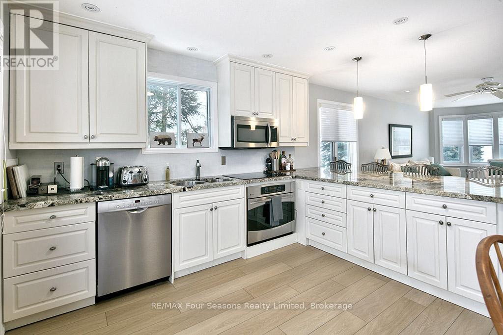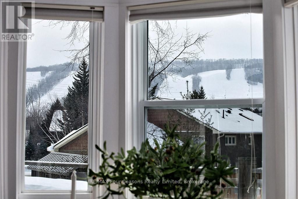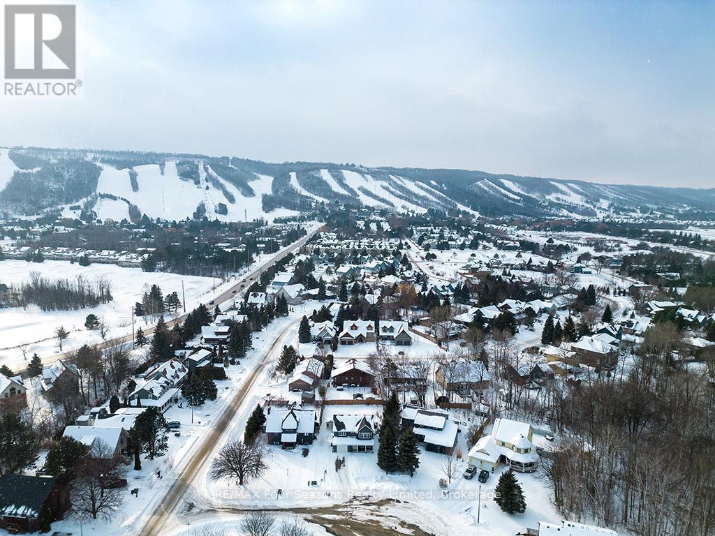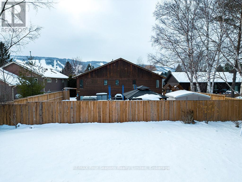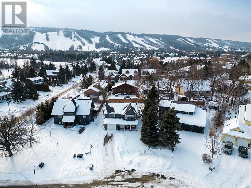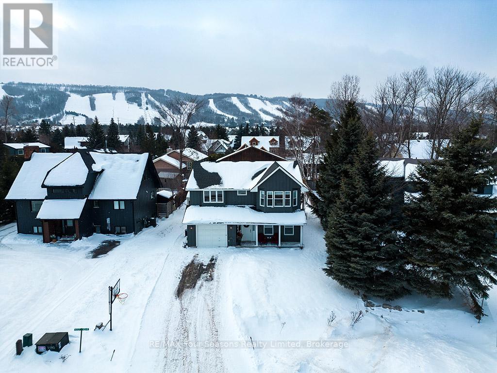 Recently renovated! This bright and inviting 4-bedroom, 3-bathroom home is tucked away on a quiet cul-de-sac, just steps from Blue Mountain Village and only minutes to ski clubs, beaches, golf, and trails, perfect for year-round living and recreation. Upstairs, the open-concept kitchen, dining, and living area is filled with natural light and mountain views. Designed with a reverse floor plan to capture the best mountain views, this home has brand new engineered white oak flooring throughout the entire upper level and offers space, comfort, and convenience for today's active lifestyle. The newly redesigned kitchen has tons of space for hosting large family gatherings, boasts granite countertops, new microcement backsplash, new windows and direct access to the upper deck for effortless BBQs and dining al fresco while enjoying sunsets over the slopes. The living room's abundance of windows creates a warm and welcoming gathering space. The upper level also hosts the primary suite with a sleek, renovated 3-piece ensuite, plus a second bedroom and an additional 4-piece bathroom. The main level features a spacious recreation room with a cozy gas fireplace, two bedrooms, a full 4-piece bath, and a laundry room with a walkout to the backyard and patio, ideal for indoor-outdoor living in every season. Outdoor enthusiasts will appreciate the proximity to hiking, cycling, tennis, and golf, along with the nearby beaches of Georgian Bay. Just 10 minutes to Collingwood, 15 to Thornbury, or a short stroll to Blue Mountain Village for dining, shopping, and entertainment, this property offers the perfect blend of lifestyle and location. (id:64974)