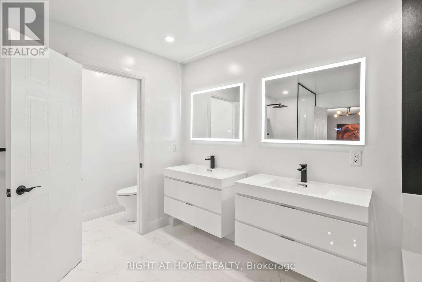Attention Buyers! Fully Renovated 2454 Sq ft. home in the highly sought after Northglen neighbourhood. Whitby/Oshawa border! Breakfast eat-in with walkout to patio with a private backyard. Large Living Room with a gas fireplace and loads of natural light. Modern Kitchen with quartz waterfall countertop. Seperate formal dining room and living room. Convenient main floor laundry room with access to garage. Two piece washroom on main level. Second floor features 4 large bedrooms and 2 modern bathrooms, the master bedroom is very big, it has a walk in closet and the ensuite is massive with led mirrors/heated mirrors, floating vanitys, curbless shower and a soaker tub! Move in ready completly renovated with engineered hardwood floors throughout the main level and new hardwood staircase 2023. New carpet upstairs in 2022. New Kitchen in 2023. Upstairs bathroom fully renovated in 2023. Ensuite bathroom fully renovated in 2024. Basement is partially finished with 1 bedroom complete. ***Close to two brand new parks, splash pad and the brand new Rose Valley park , bmx bike park and golf course, schools and shopping (id:64974)