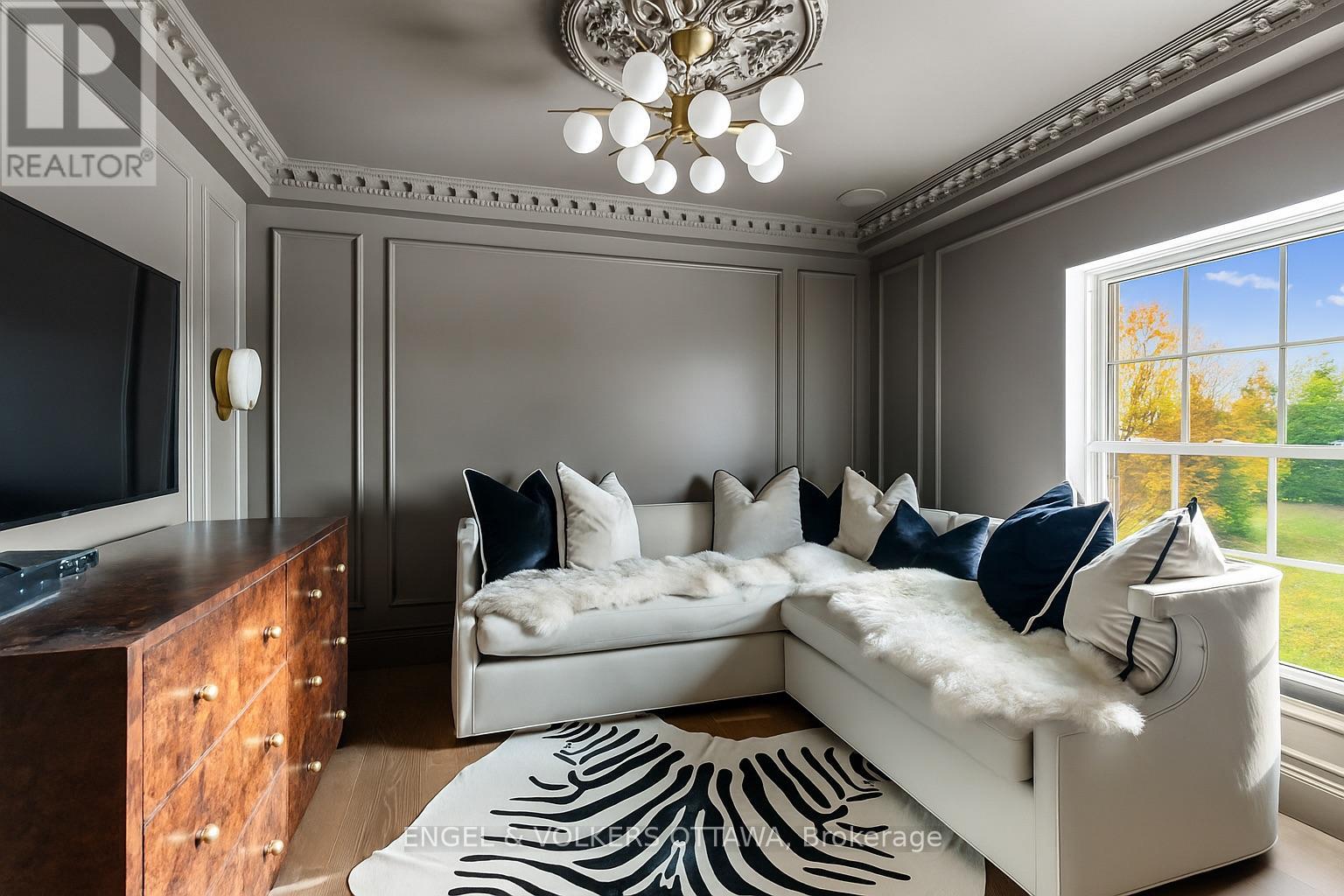 Nestled in a serene neighbourhood lies a fully renovated colonial-style home. This sophisticated home boasts of ornate crown & wall mouldings, carefully positioned lighting & imported Italian marble which create a sense of luxurious charm. The Parisian wallpaper & intricate design elements lend to the classic elegance. Tucked away in a quiet cul-de-sac, yet a mere 10-minute stroll from the quaint village of Manotick. Enjoy privacy while having easy access to all essential amenities, schools & river. The interior of this magnificent home is a perfect fusion of old-world charm & contemporary style. From the imported French Lacanche range to the Stv HE wood-burning fireplace from Belgium, every aspect speaks of European quality & sophistication. Featuring a spacious office, a charming sitting room & a Parisian-style dining area, this home was cleverly designed with ample open spaces that evoke a sense of warmth. This is a must-see property, that can only be fully appreciated in person. (id:64974)