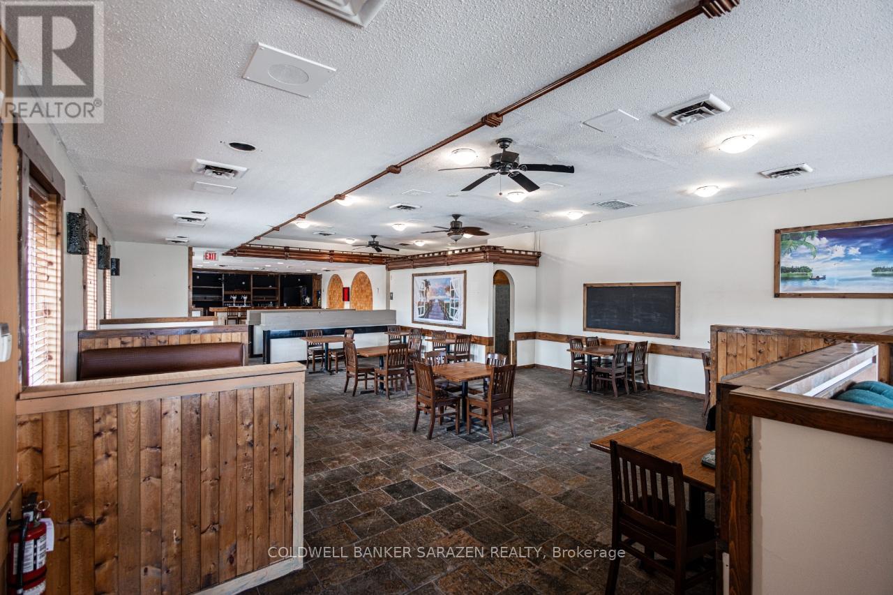 Restaurant/Bar on Highway 7, Carleton Place. This is an exceptional opportunity to own a fully equipped and licensed restaurant and bar offering maximum visibility on busy Highway 7 in the fast-growing town of Carleton Place. Situated on a high-traffic corridor and directly connected to a successful 23-room motel, this property benefits from steady customer flow and high daily exposure, making it ideal for any food and beverage concept. The restaurant spans approximately 4200 square feet with a flawless and functional layout. It is licensed for 150 indoor seats plus an additional 60-seat outdoor patio. Inside, the space features a spacious dining area, a dedicated bar, two washrooms for patrons, and a private office. The commercial kitchen is fully equipped and ready for immediate operation. A large pylon sign along the highway ensures excellent visibility for branding, while the expansive on-site parking lot easily accommodates guests and staff alike. Zoned Highway Commercial, there are no restrictions on the type of restaurant or menu, offering ultimate flexibility for operators. Whether you envision a banquet hall, family restaurant, sports bar, fine dining venue, or multicultural eatery, the location and infrastructure are ready to support your vision. The close connection with the adjacent motel creates additional opportunities for breakfast service, room service, catering, and event hosting, making this a multi-revenue stream business. This is a rare turnkey offering in one of Eastern Ontario's most rapidly developing communities. (id:64974)