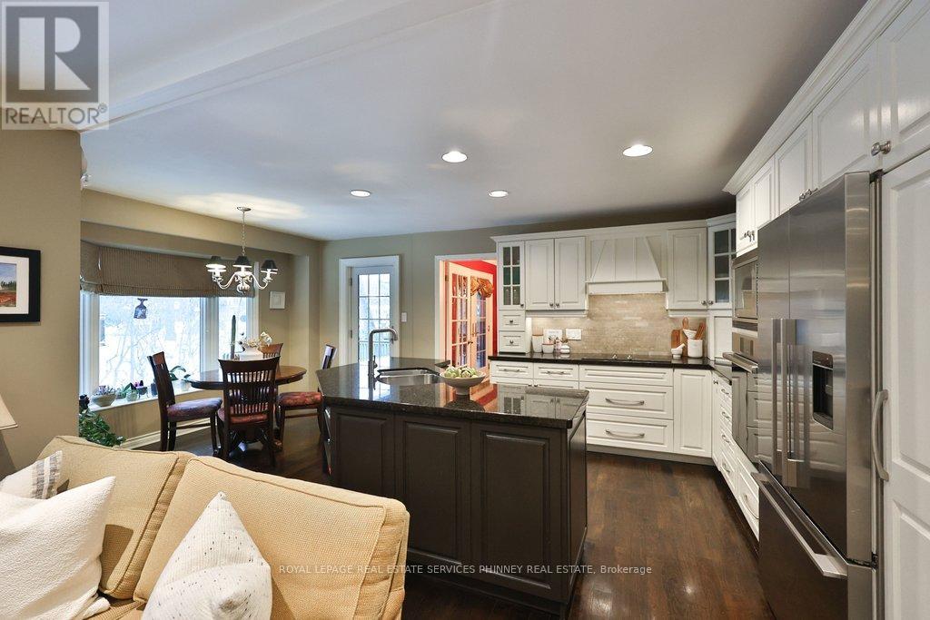 Tucked away on a quiet, rarely offered court and backing onto a breathtaking ravine, this two-storey family home offers a unique opportunity to create your dream space in an exceptional natural setting. Surrounded by mature trees, lush greenery, and wildlife, the property provides a rare sense of privacy and tranquility while still being close to everyday amenities.A grand foyer with a winding staircase welcomes you inside, leading to a spacious family room with large windows that frame serene ravine views. The kitchen offers a generous layout with a large island, eat-in area, and walkout to the expansive backyard patio-perfect for entertaining or enjoying peaceful mornings immersed in nature.The backyard is truly special, offering a private retreat with a beautiful natural backdrop-ideal for relaxing, hosting, or simply taking in the surroundings. A separate living and dining room provide additional space for gatherings, while a main floor office allows for comfortable work-from-home living.Upstairs, the primary suite is a private escape featuring space for a sitting area, a balcony overlooking the ravine, and a five-piece ensuite. Two additional bedrooms, a full bathroom, and convenient upper-level laundry complete the space for family living.The finished lower level adds versatility with an additional bedroom, a three-piece bath, and a large recreation room with a wet bar, fireplace, and walkout to the yard-perfect for entertaining or extended family. Ample storage throughout adds everyday practicality.Located in a sought-after school district and just minutes to the GO station, shopping, and the waterfront at Jack Darling Memorial Park, this home combines convenience with nature.A rare offering on a coveted court, this property is ready for your personal touch-an incredible opportunity to make it your own in a setting that seldom becomes available. (id:64974)