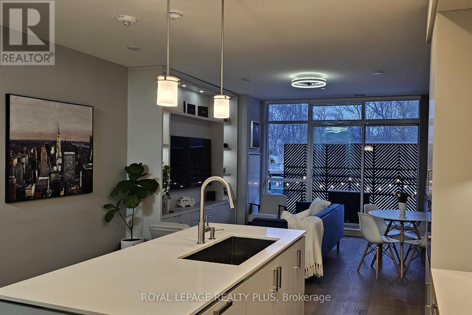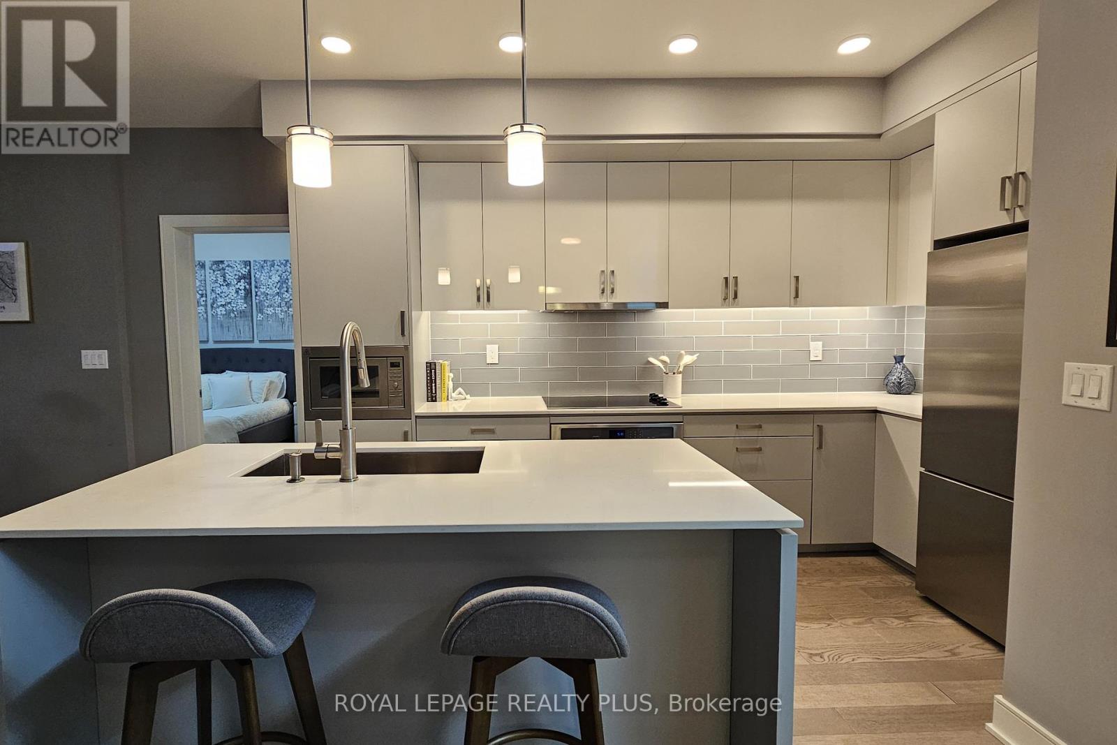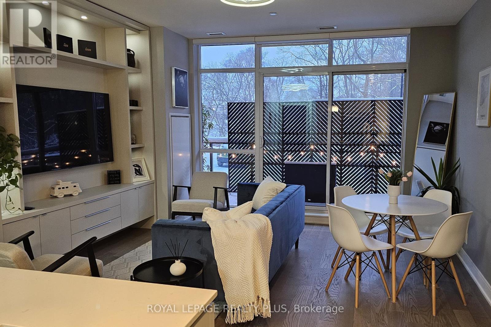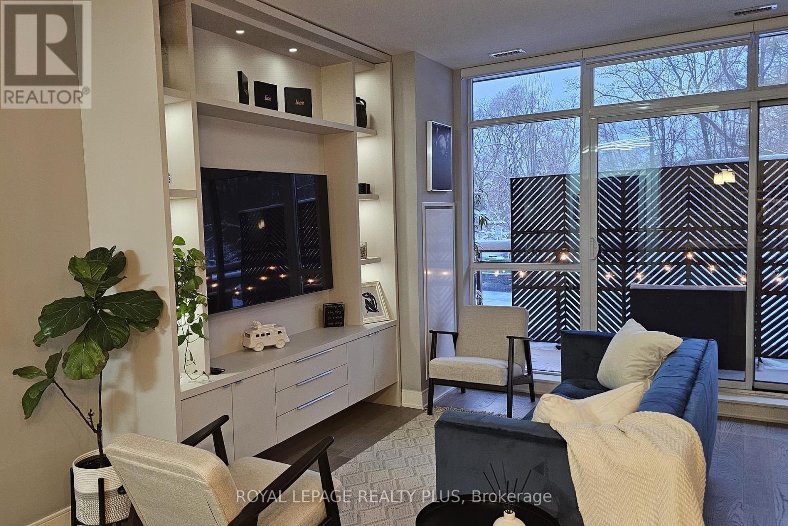 Situated in one of South Mississauga's most desirable communities, this sunny west-facing suite has unobstructed views of parkland and offers a rare blend of privacy and convenience - located just steps to the lobby, building amenities and the elevator to your two oversized parking spots. Inside, 5-inch engineered hardwood floors and open sightlines create a seamless flow from foyer to balcony. Expansive windows flood the suite with natural light, while motorized blinds offer privacy and shade at the touch of a button. The open living area has plenty of room for both living and dining, plus a custom media unit with integrated display lighting anchors the space - an upscale focal point that also maximizes storage. The sleek kitchen features two-tone cabinetry, built-in appliances and a large island - perfect for casual dining or entertaining. Two large bedrooms sit on opposite sides of the suite, with the primary retreat offering a walk-in closet, balcony access and a spa-like ensuite with two sinks and a glass shower stall featuring Kohler fixtures. Beyond the front door lies The Craftsman - a landmark for the city thanks to its Frank Lloyd Wright-inspired design and forested setting of Birchwood Park. This luxurious complex has many useful amenities and elegant common spaces but what makes it truly unique is the sense of community among its residents, with neighbours frequently gathering for events and celebrations thanks to a vibrant social club. Step outside to discover Clarkson Village with its boutique shops, cafés, and some of Mississauga's finest dining. Within minutes you'll reach Jack Darling Park, Rattray Marsh and countless trails, plus nearby MiWay transit stops, GO stations, and major routes like Lakeshore, Southdown and the QEW make commuting a breeze. With its refined finishes, thoughtful upgrades, and prime location, Suite 105 at The Craftsman offers affordable luxury living in the heart of Clarkson. (id:64974)