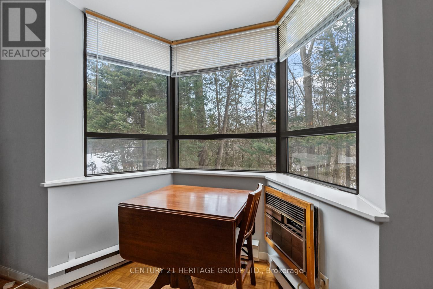 This rare opportunity features a ground-floor suite with a private walk-out to a yard backing onto a serene greenspace and forest. Located on a quiet dead-end street surrounded by nature, this unit offers two bedrooms, one bathroom, and an open-concept living area. Large windows throughout provide abundant natural light and stunning forest views. Additional features include ensuite laundry, a storage locker, and exclusive surface parking conveniently located near the front entrance. Residents can also enjoy building amenities such as a party room, workshop, and exercise room. The property is ideally situated close to the library, public transit, and 400-series highways, and is just minutes away from Newmarket. Some photos have been virtually staged (id:64974)